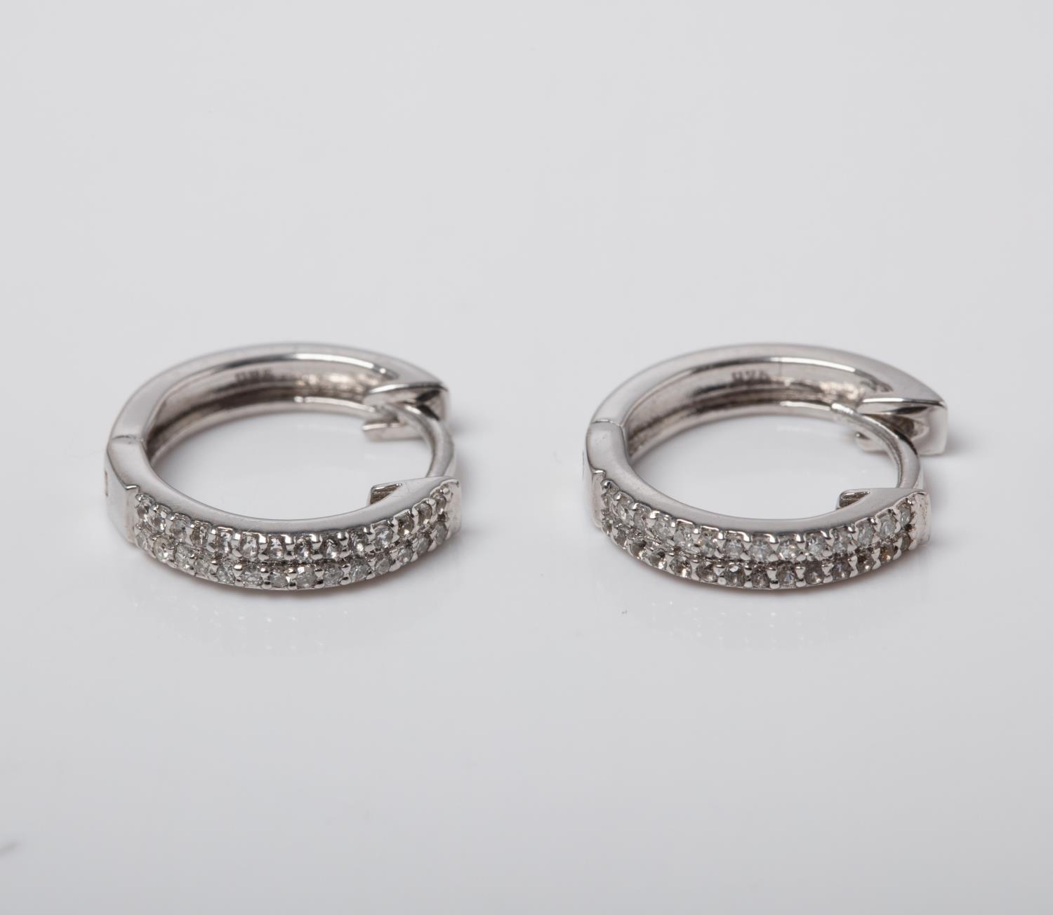 SILVER WHITE SAPPHIRE AND DIAMOND HOOP EARRINGS Crafted in Sterling Silver set with 28 Round Diamonds weighing 0.11ct, 28 Created White Sapphires