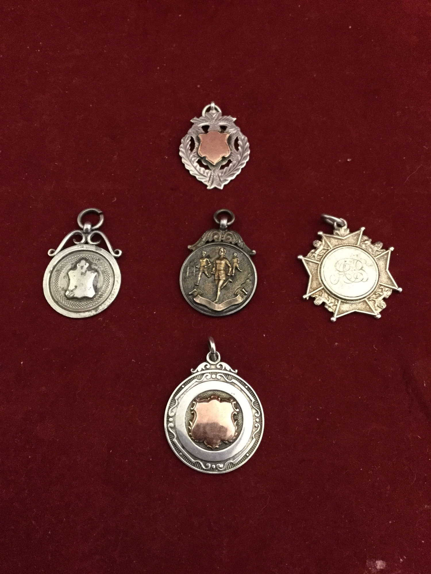 Five silver medals, various dates and makers, including military interest -