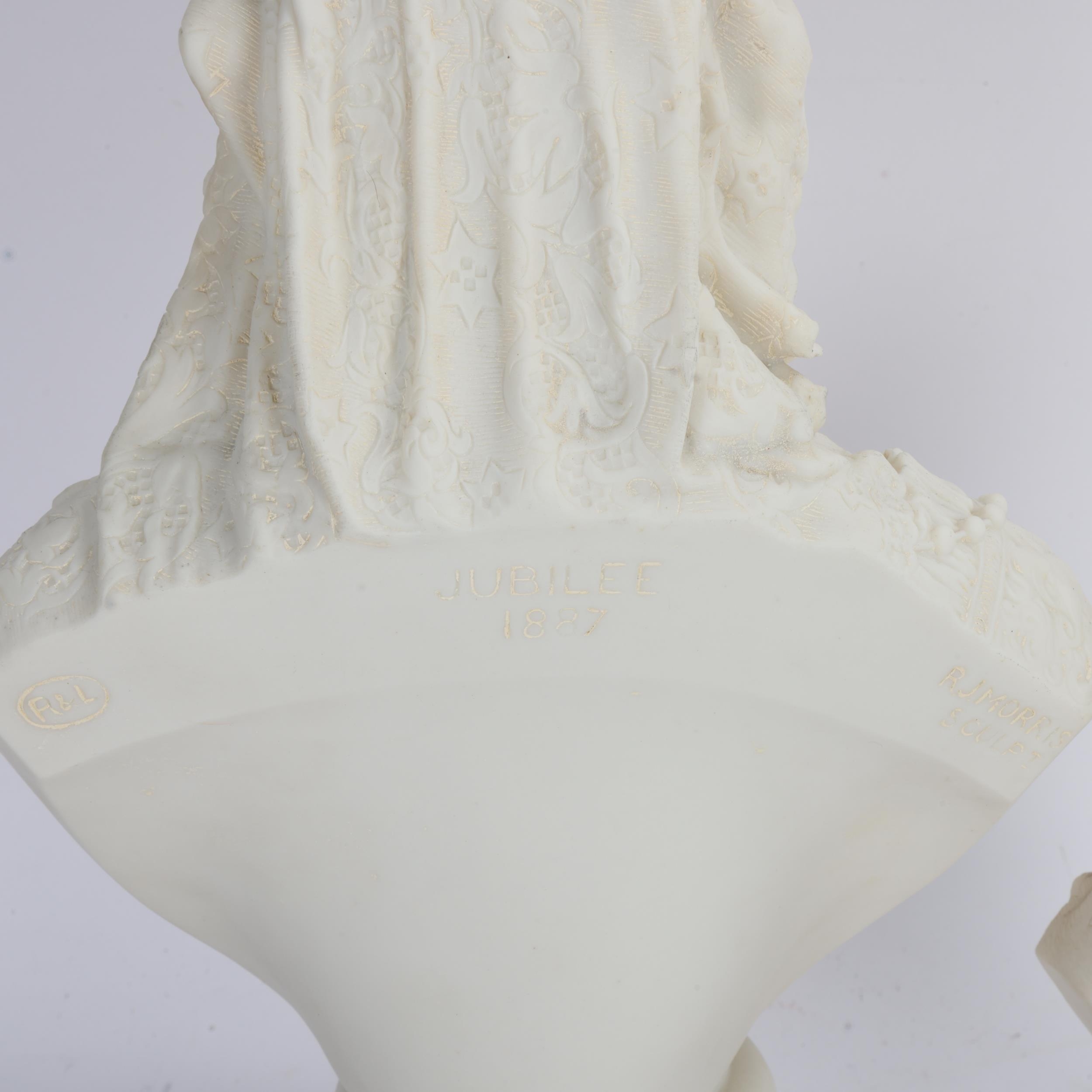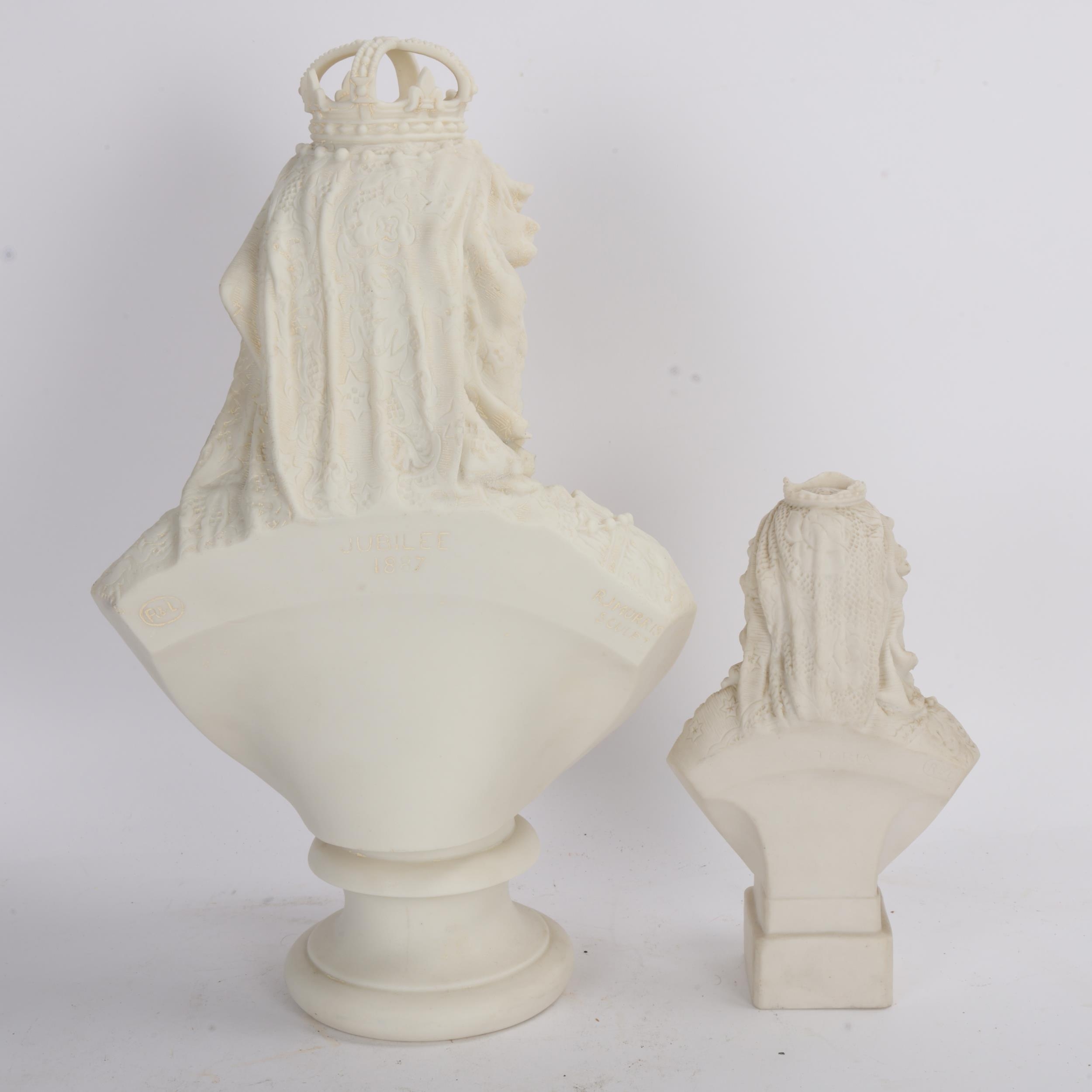 2 Robinson & Leadbeater Parian Jubilee busts of Queen Victoria, height 35cm, and 19.5cm (2)