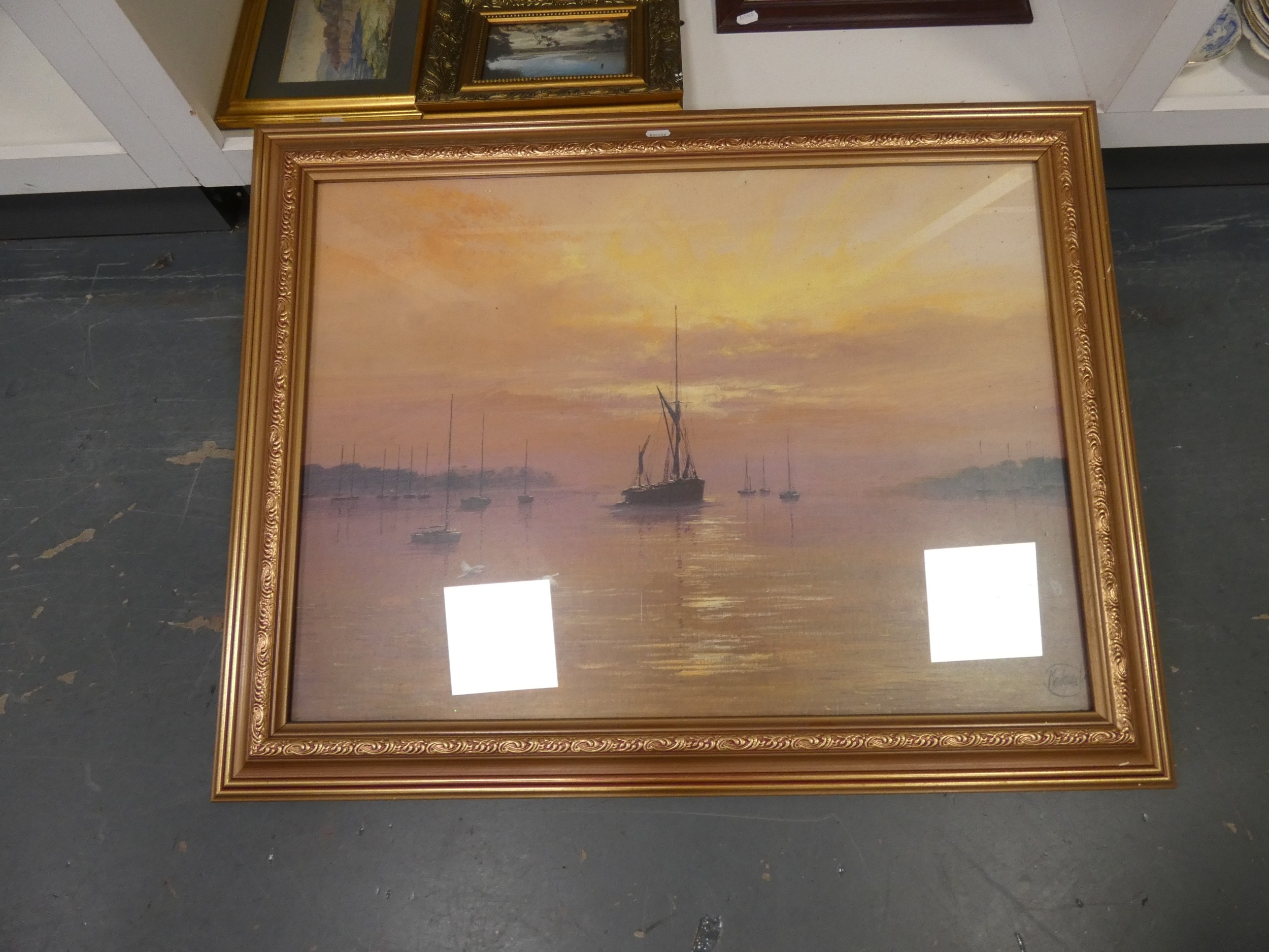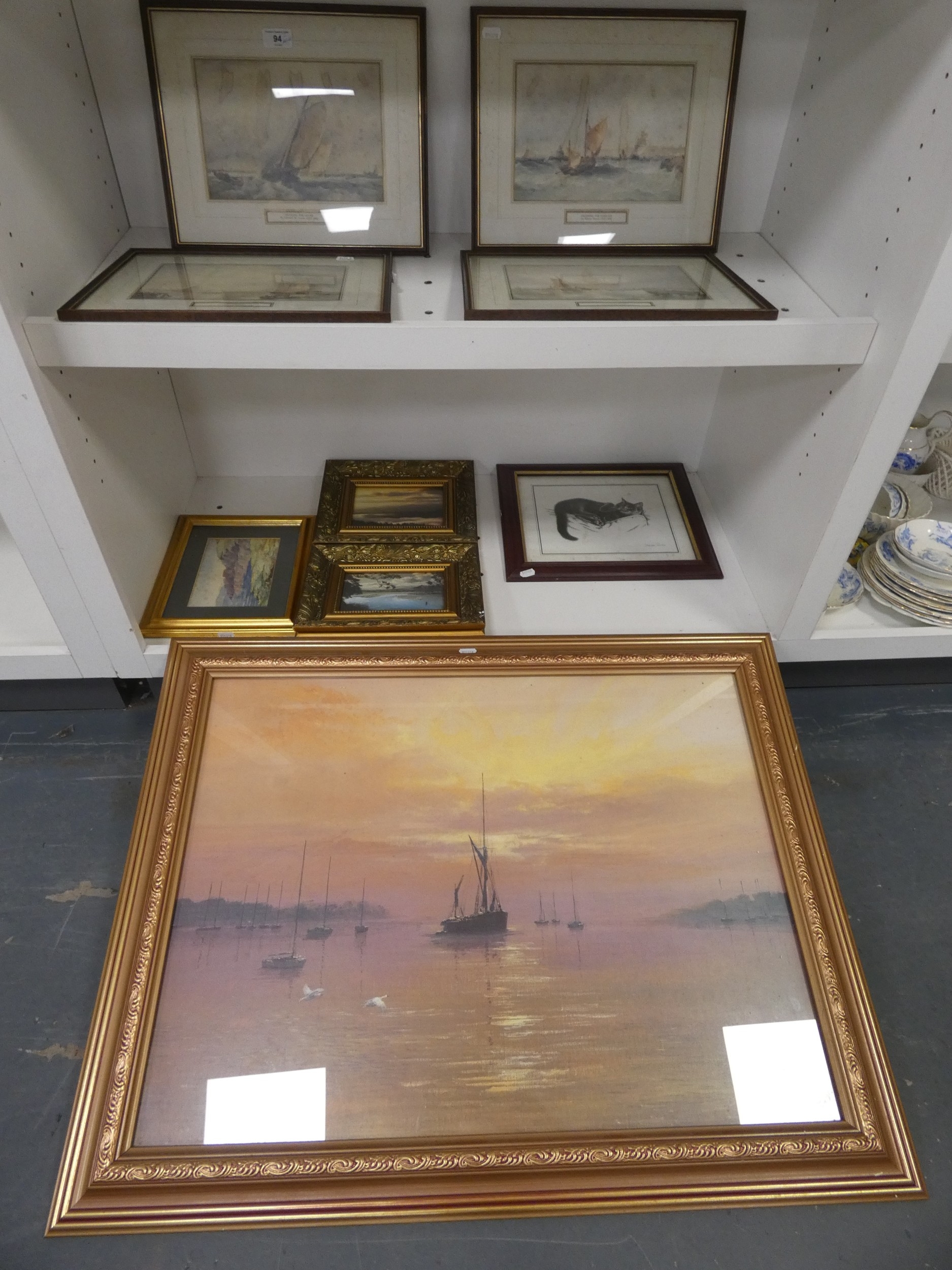 Entering the Harbour, and other prints to include an example after Madgewick (two shelves).
