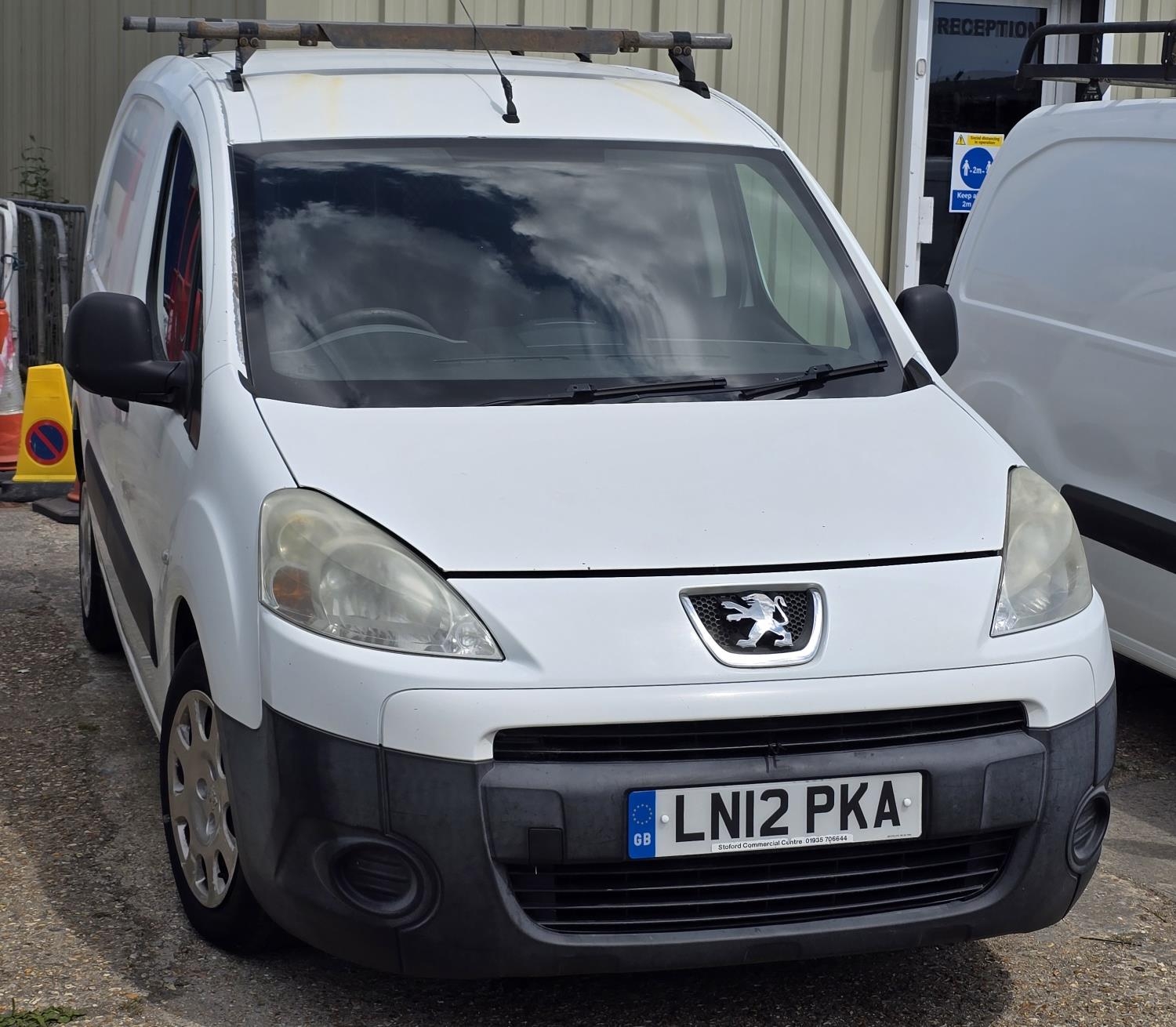 Vehicle: White Peugeot Partner Profession L1 HDI van. First registered 09/03/2012. Registration LN12 PKA. Current Mileage: 210,074. Engine size 1560cc. Comes with V5C Logbook and MOT Pass Certificate dated 06/02/2025 but currently SORN.20% VAT applies and buyers premium 5% + VAT.