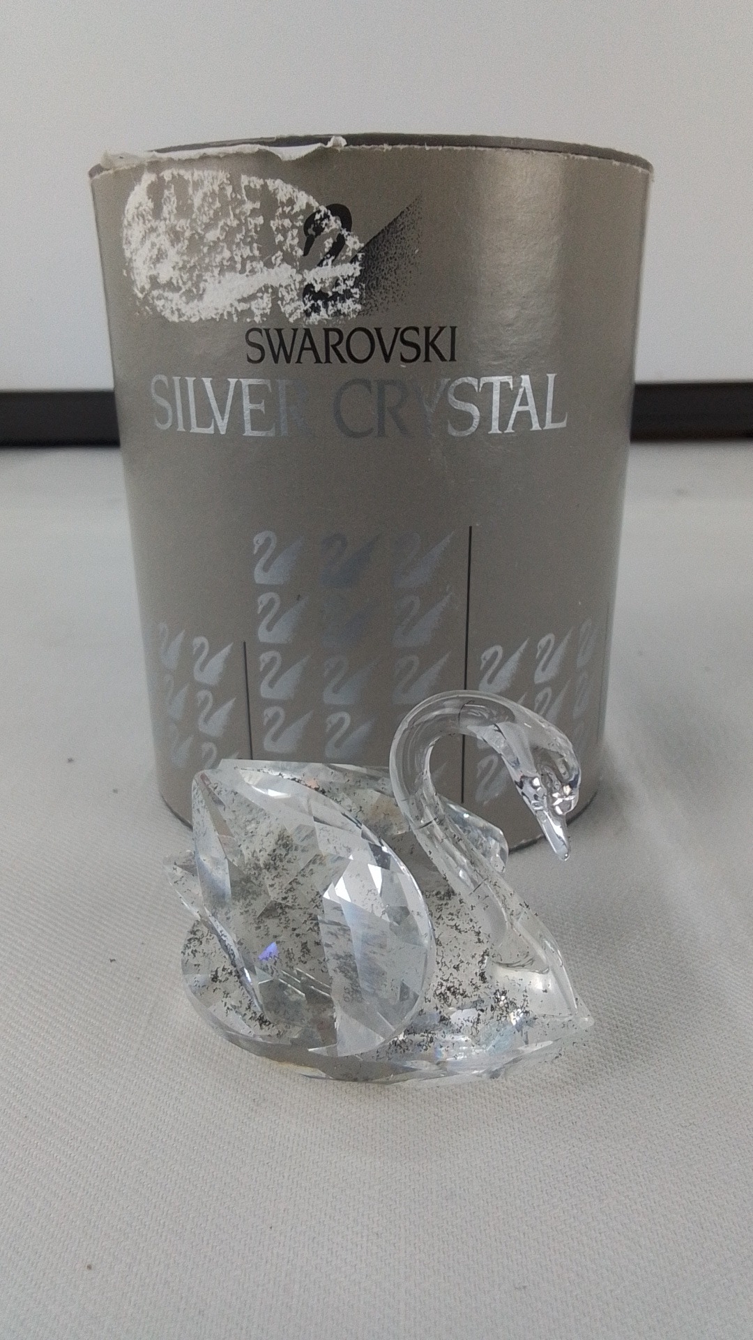 A boxed Swarovski Silver Crystal model of a swan.