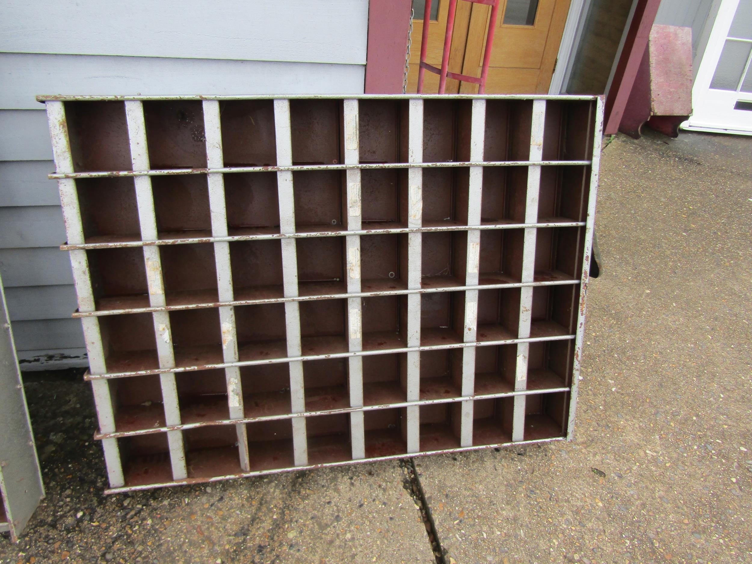 A workshop pigeon hole cabinet
