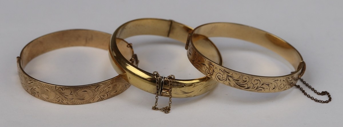 2 rolled gold and 1/5 9ct gold bangles
