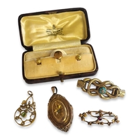 Both London, 1905, silver mounted ladies’ vanity mirror, Birmingham, 1919, a circular silver mounted perfume bottle, London, 1900, two small silver mounted jars and covers, Birmingham, 1920 and 1924 and another silver mounted jar.