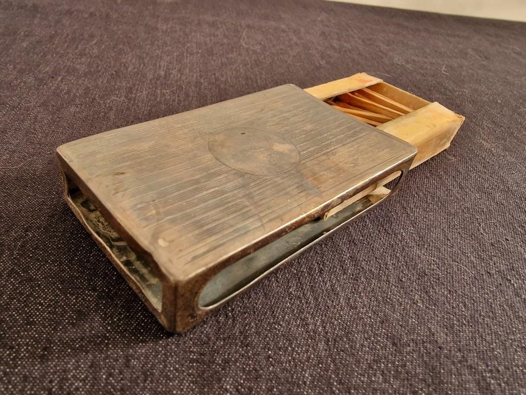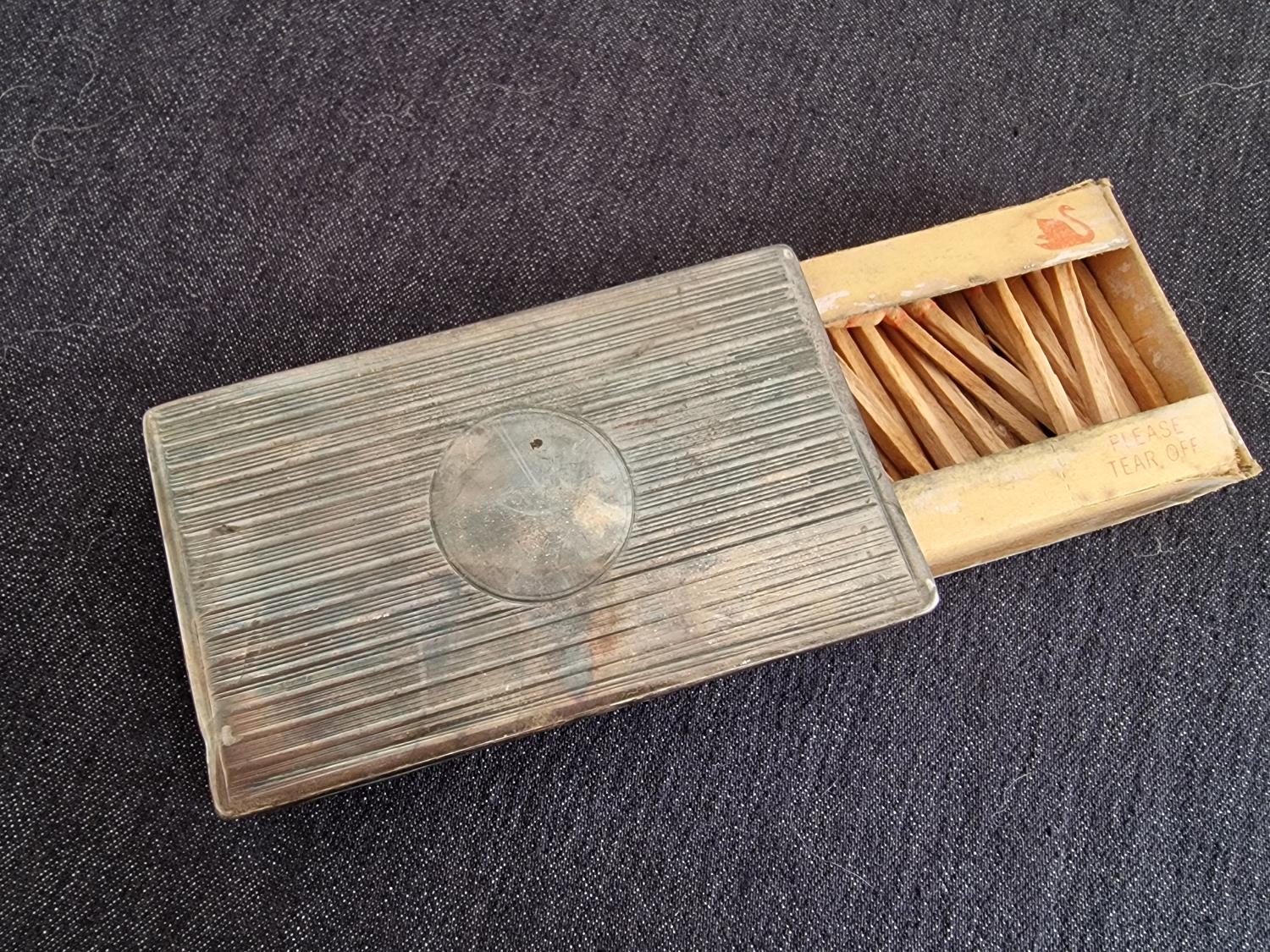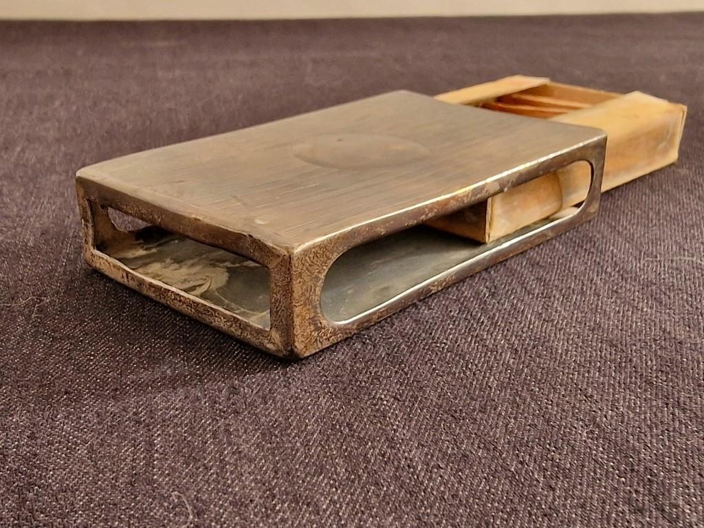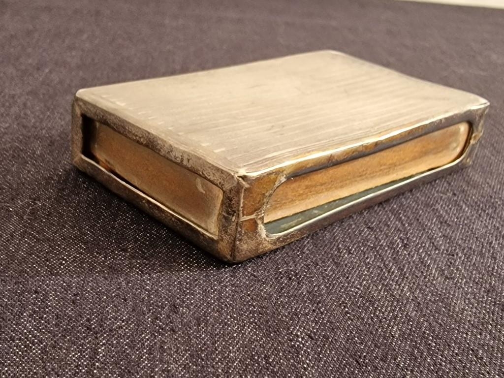 Antique Sterling Silver Vesta / Match Box Case, Art Deco Style with Open Sides, Birmingham Hallmark, (Approx. 43g without matches, 8 x 5 x 1.5cm)