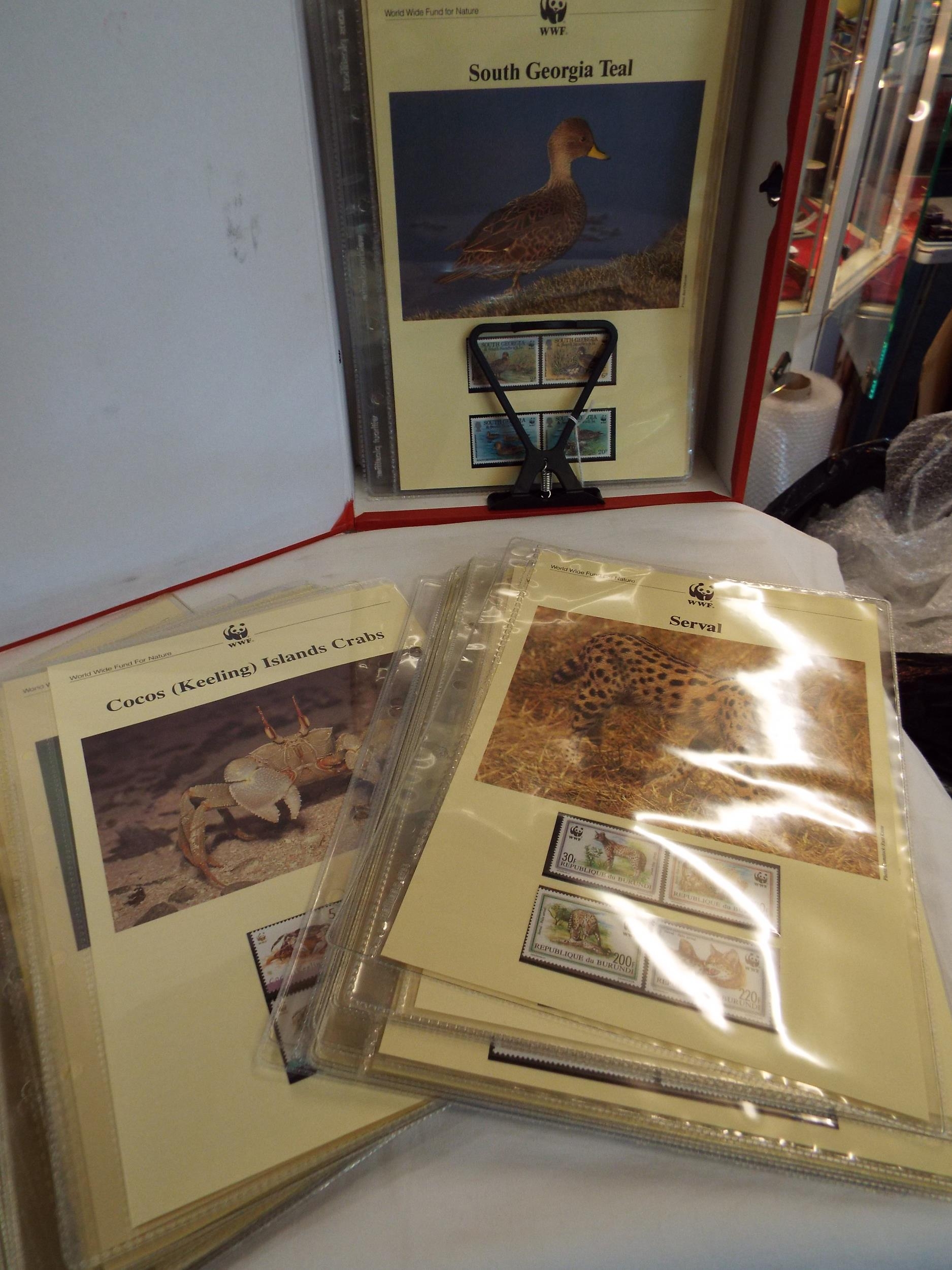 A box of seventy three animal sets of four un-mounted mint stamps on display sheets