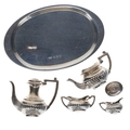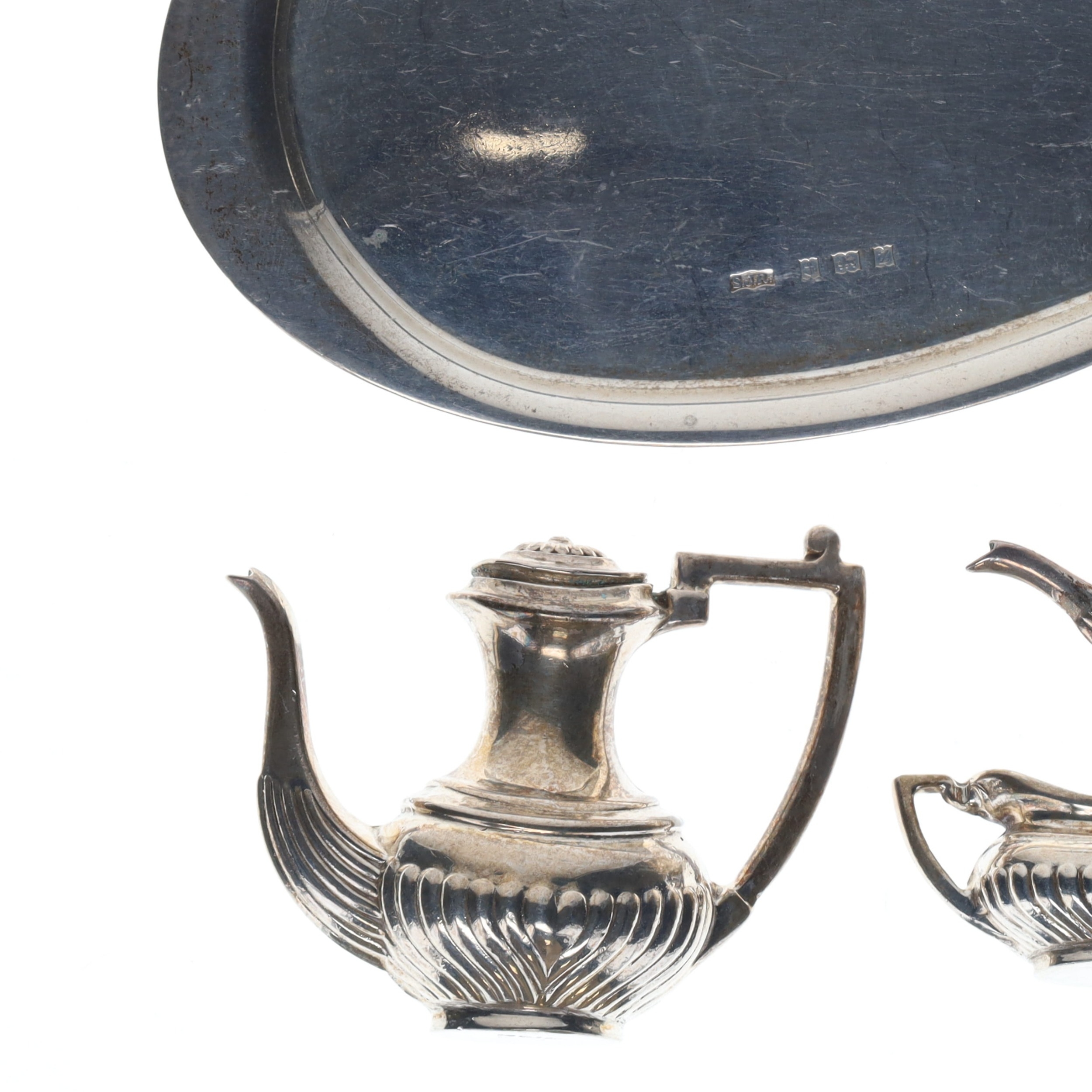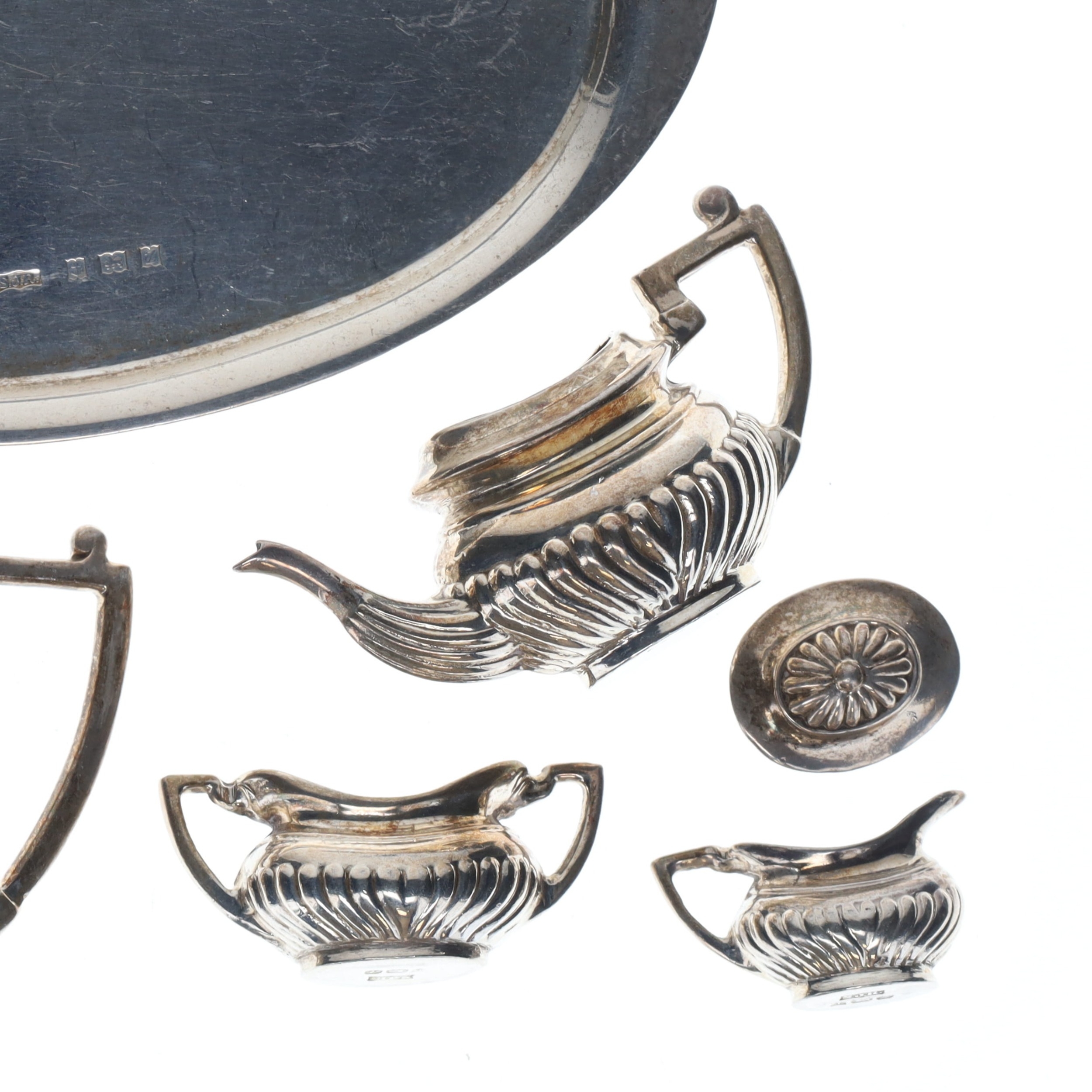 5 Piece Vintage Sterling Silver Miniature Doll's House Teaset, 61g, the tray has a different date mark to rest of the set,