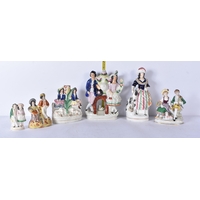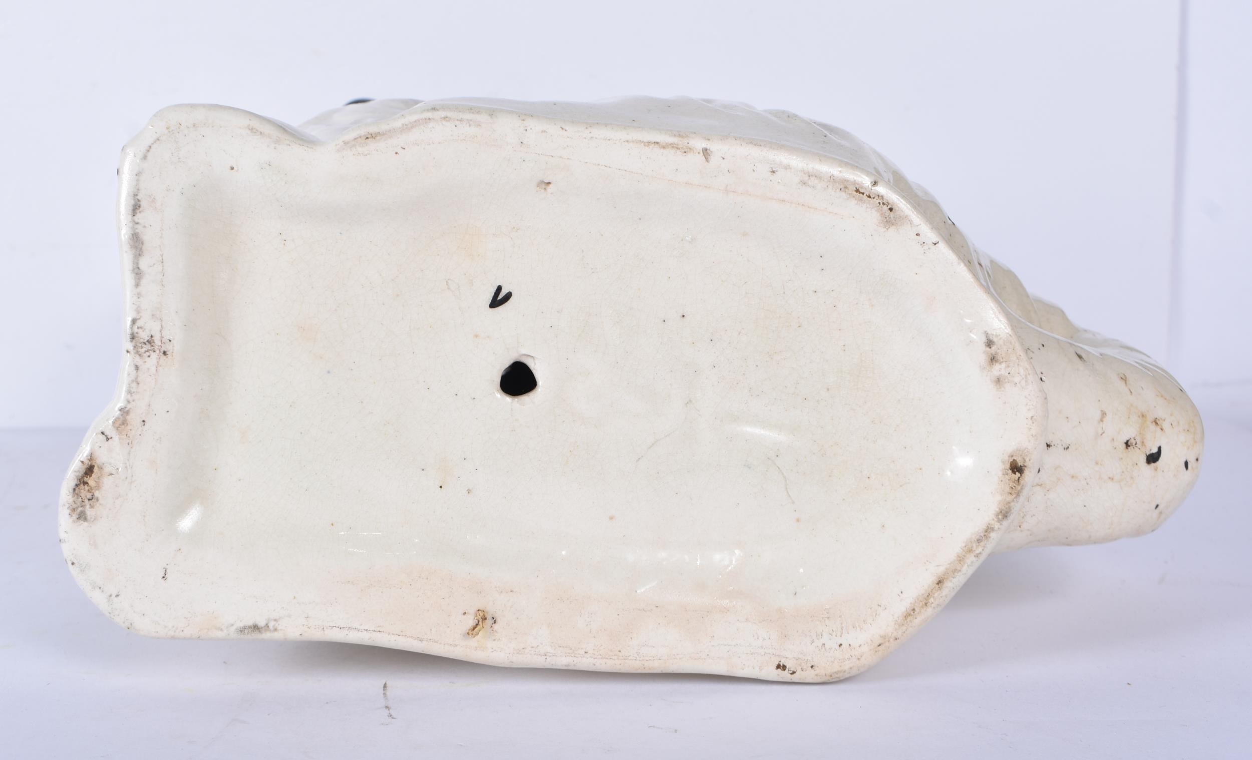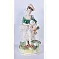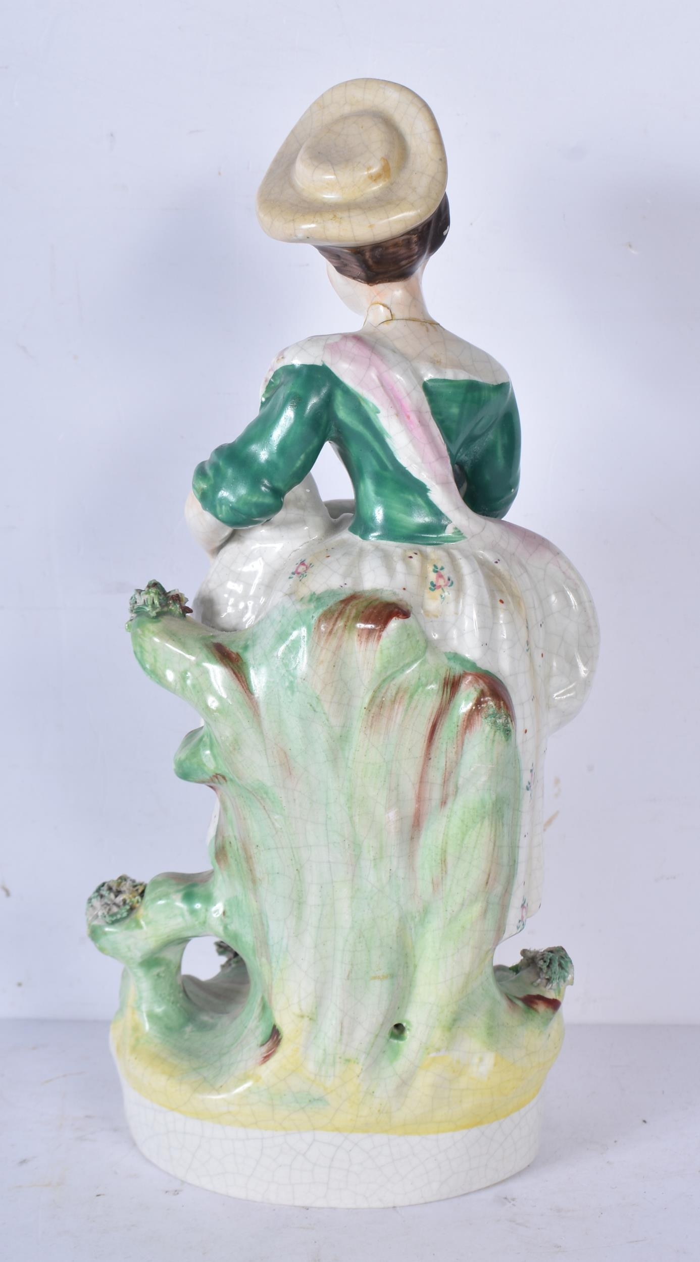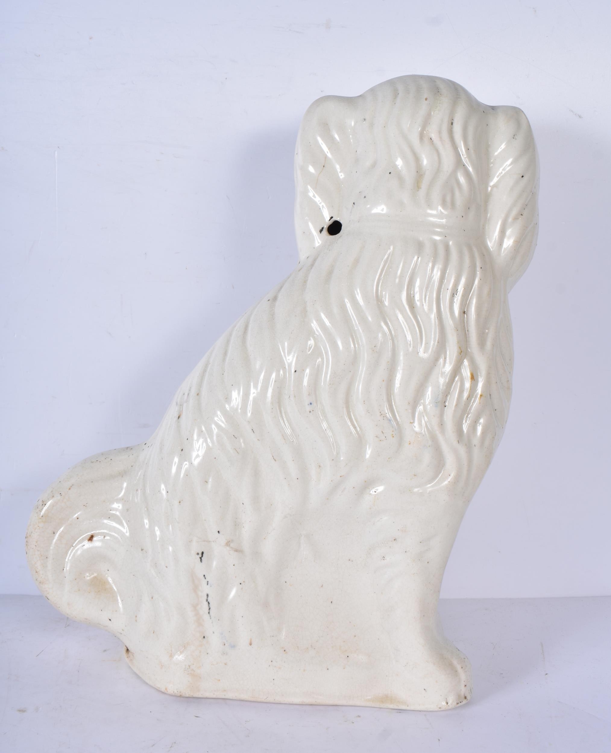 A large 19th Century Staffordshire porcelain Dog together with another dog and a shepherdess 35cm ,