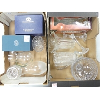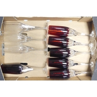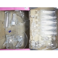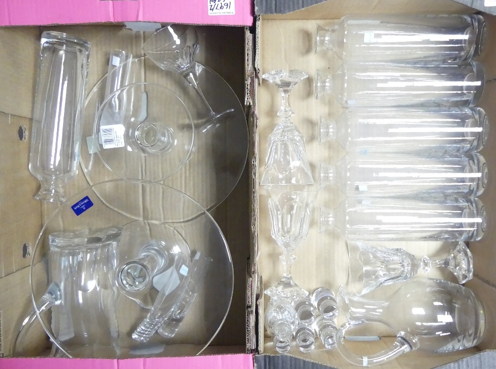 De Lamerie, clear Crystal glass to include wine goblets, Cristal Sevres bottles (some with stoppers), pitchers and Villeroy & Boch cake stands. Used as blanks for the production of De Lamerie luxury giltware. (2 Trays)