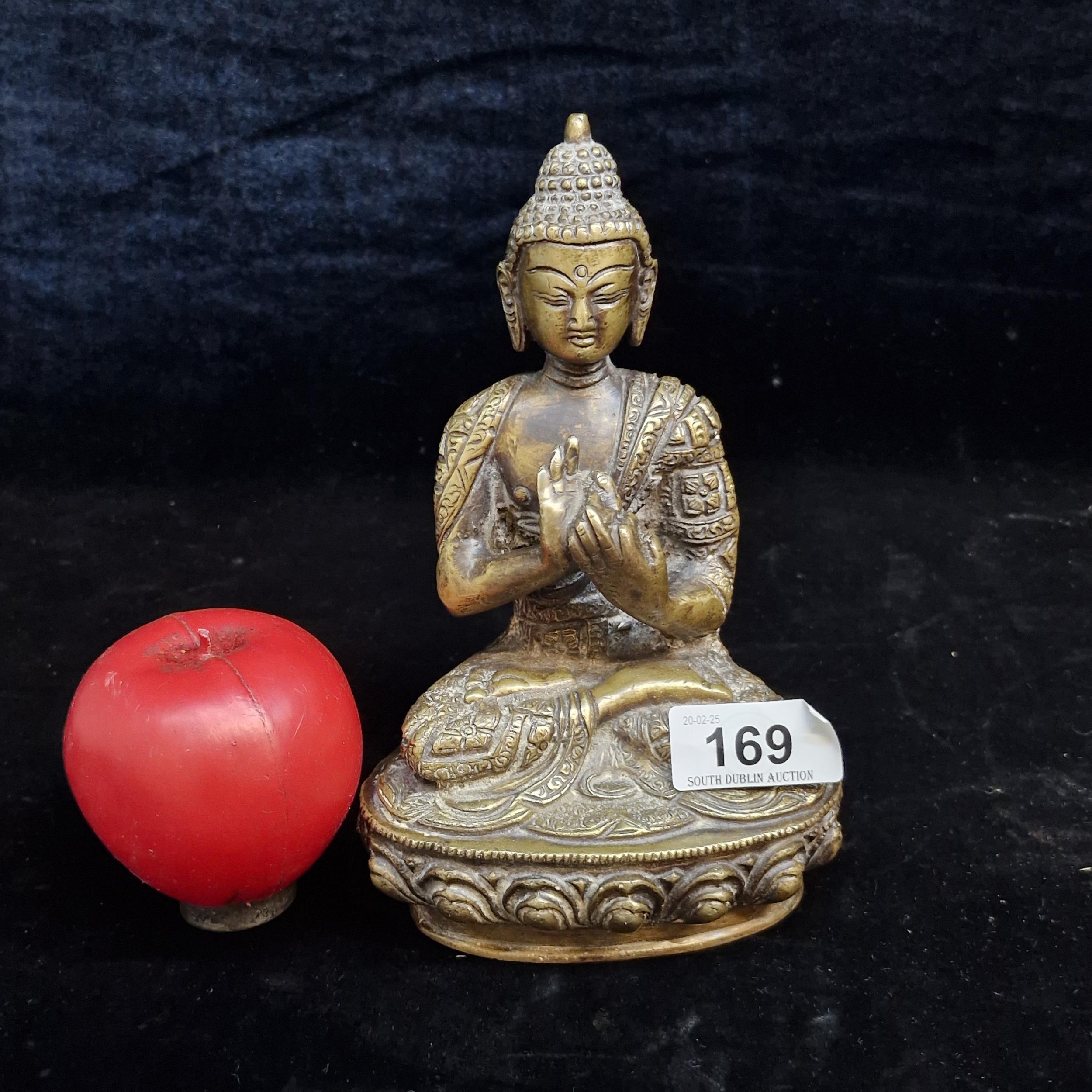 A wonderful heavy bronze seated Buddha statue with intricate design in the casting.Approx 20cm height.