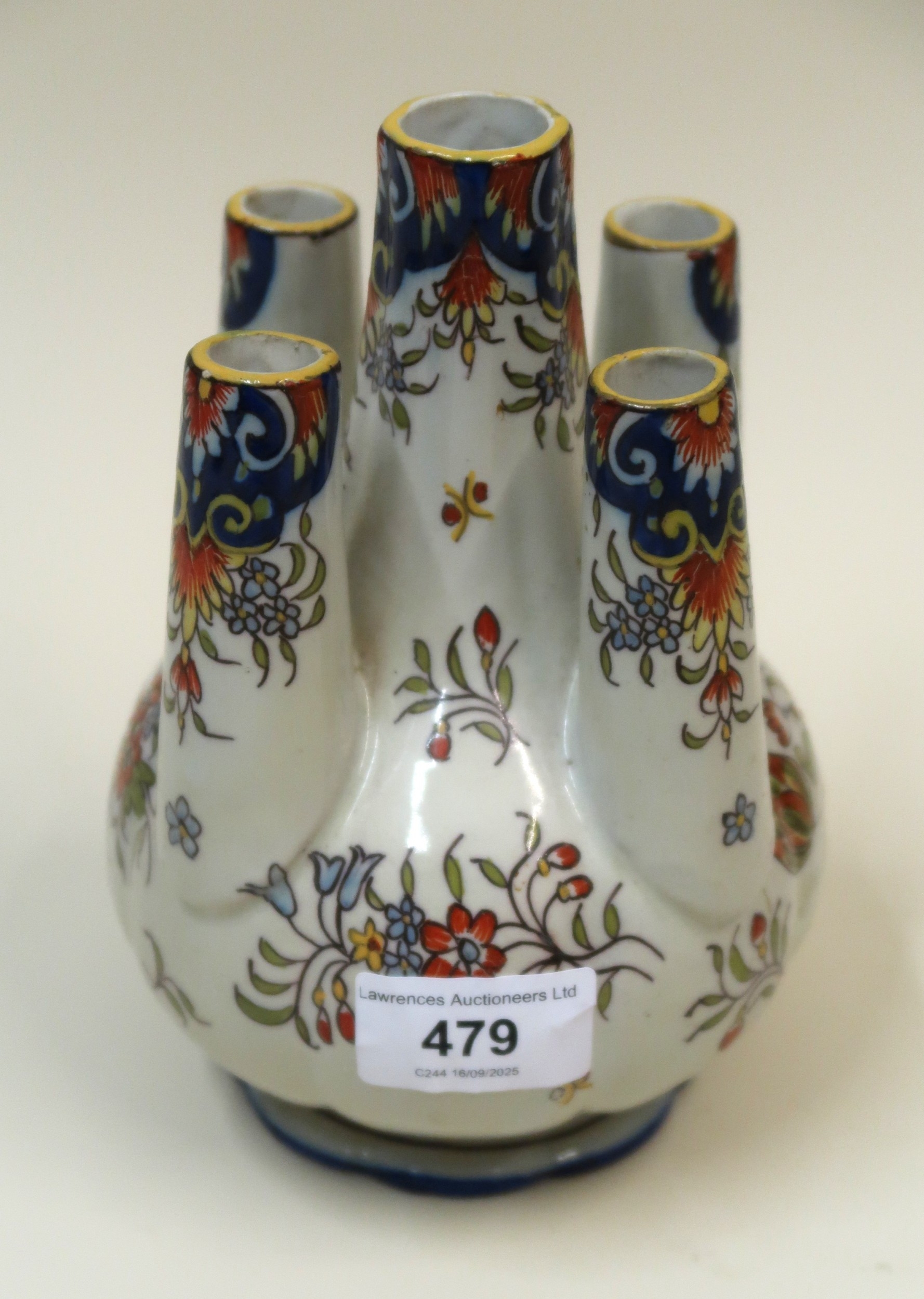 French Faience five stem tulip vase with painted floral decoration, 18cm high