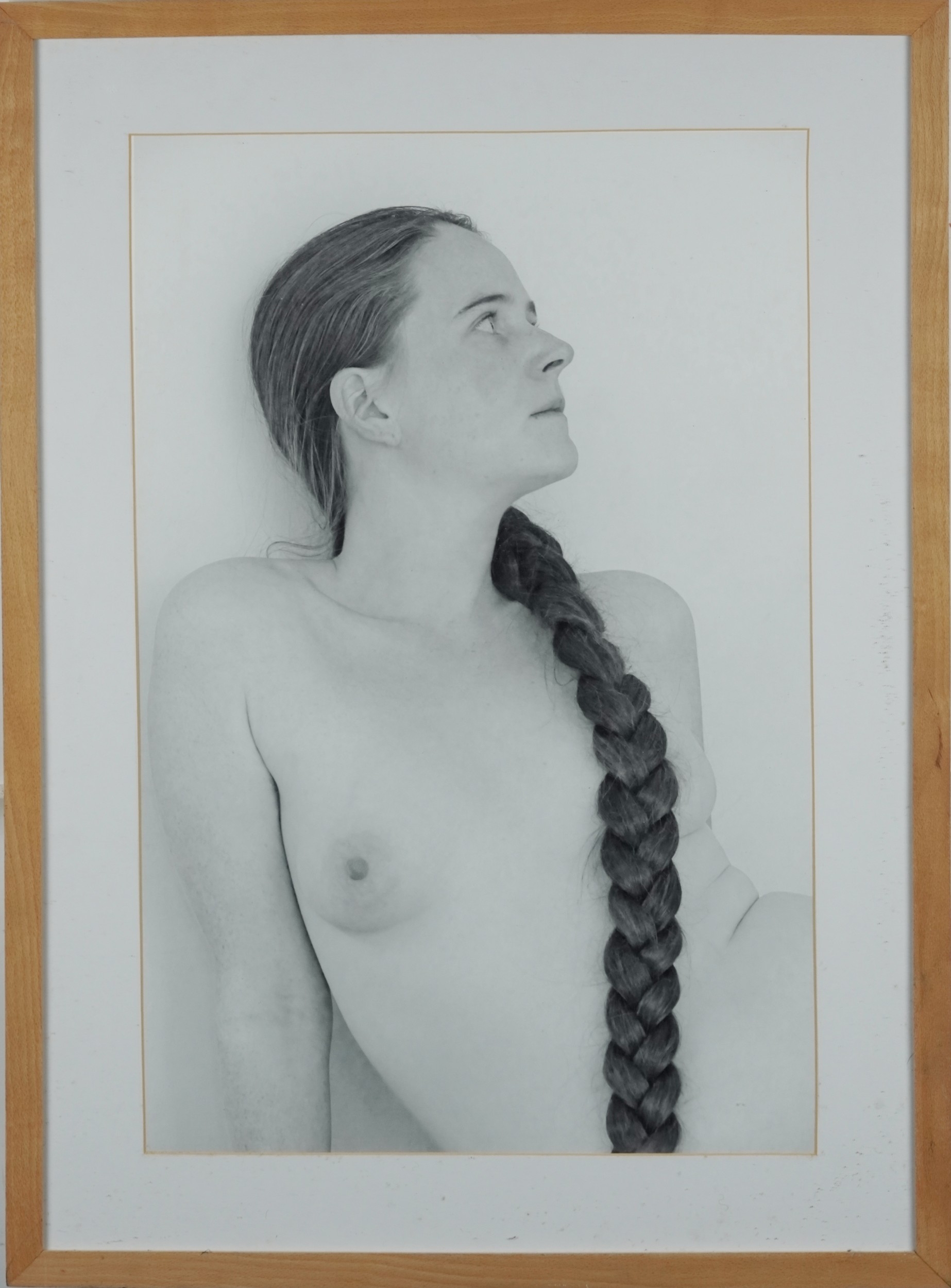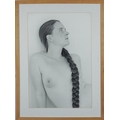 Half length portrait of a nude female, photograph on card, mounted, framed and glazed, 60cm x 39.5cm.