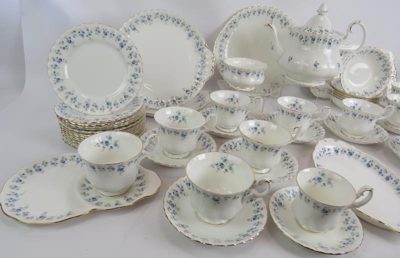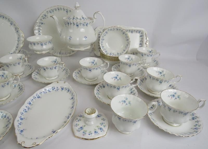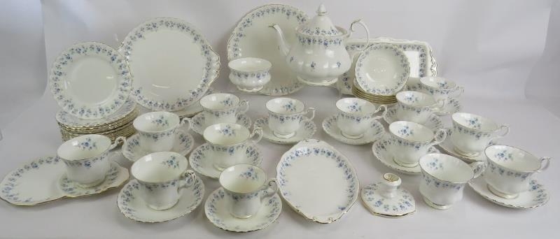 A 54 piece Royal Albert Memory Lane tea set including teapot, side plates, sugar bowl, cups and saucers and sandwich plates. (54).