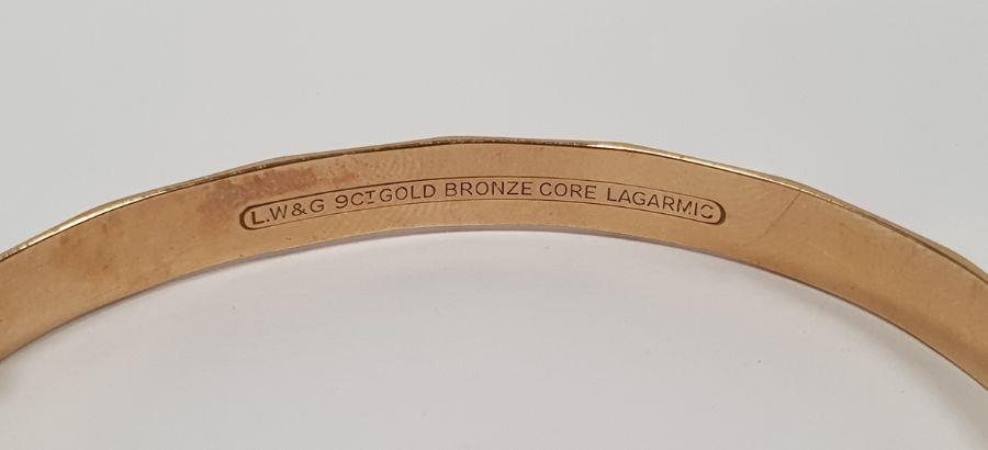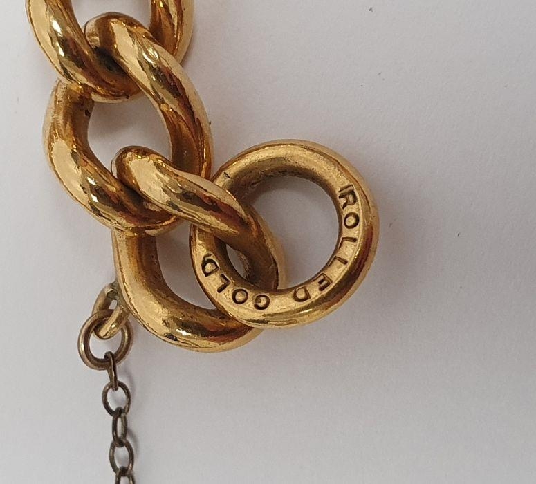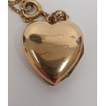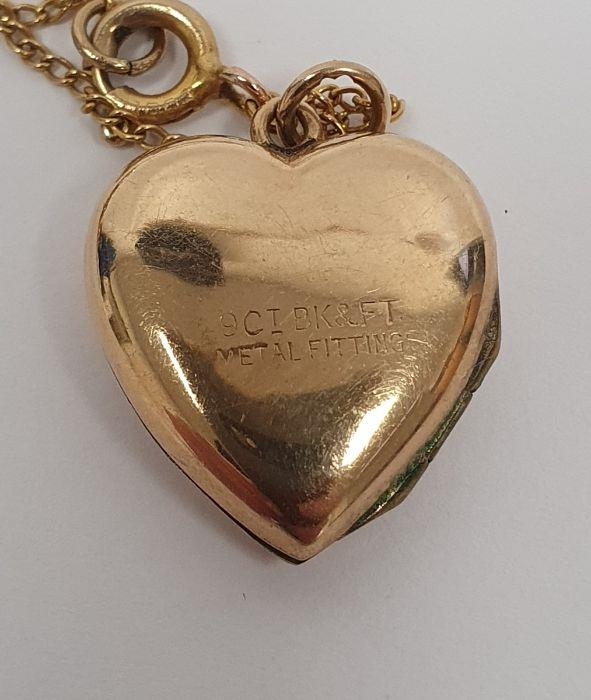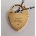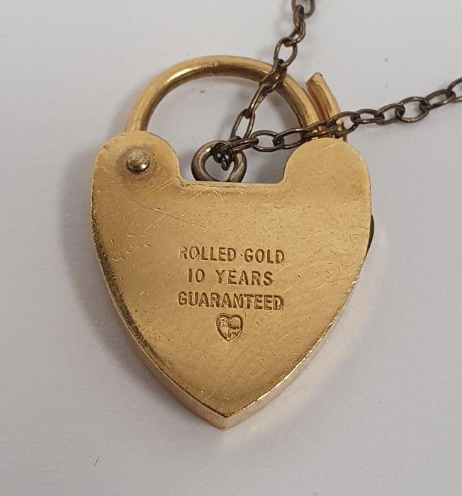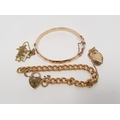 9ct gold bronze core bangle, a rolled gold chain bracelet with padlock clasp, a 9ct gold and metal filled heart-shaped padlock on chain and a gold-coloured cross pendant on chain (4)