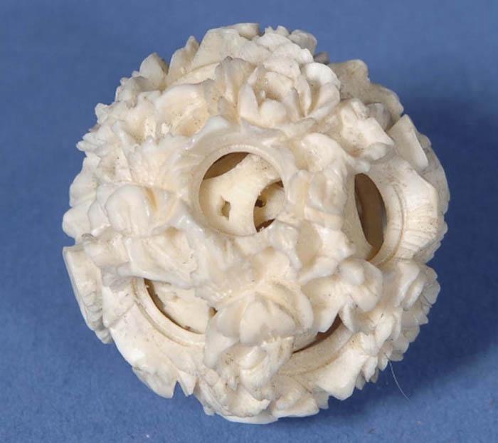 Carved ivory puzzle ball (H3cm)