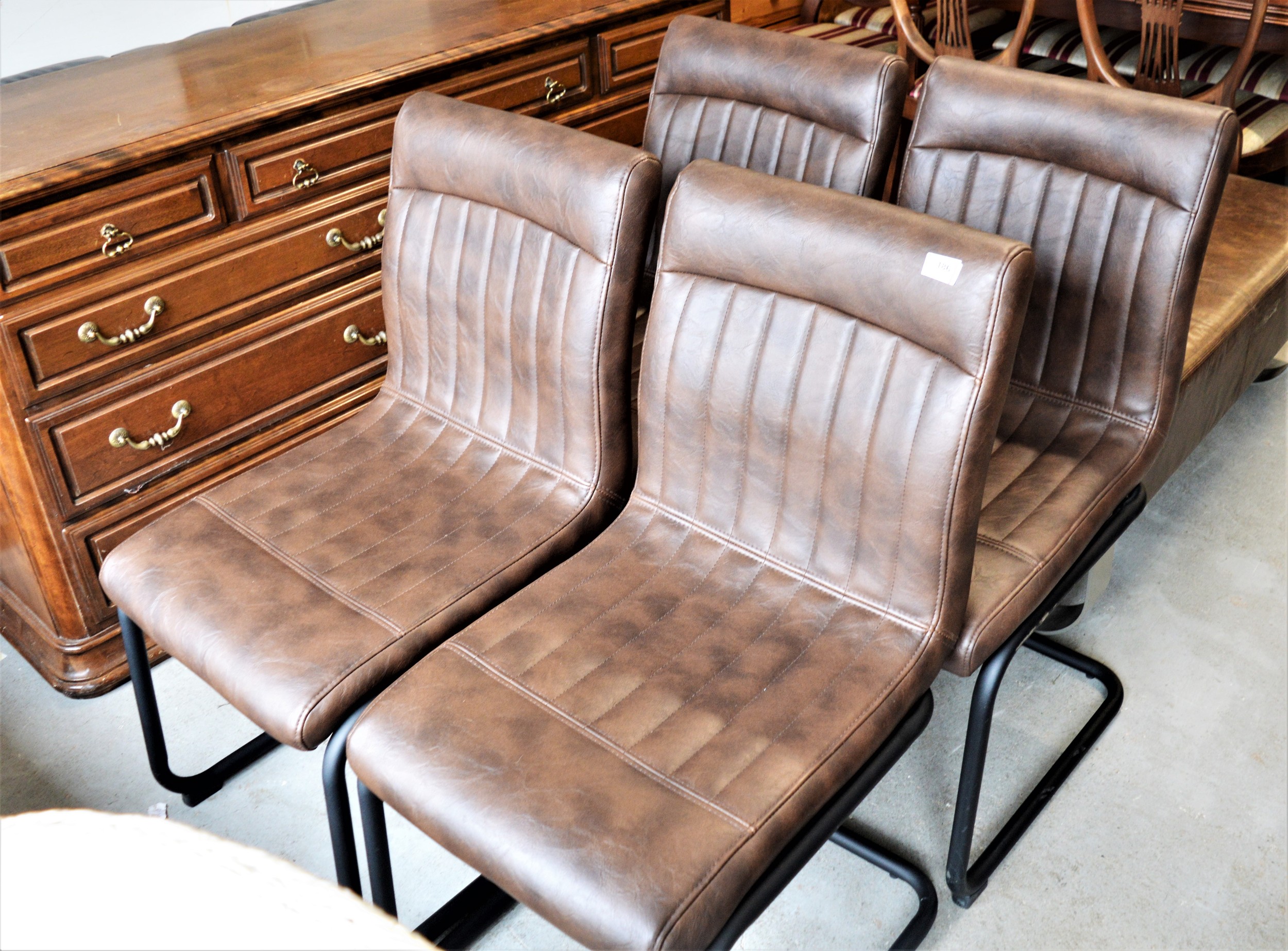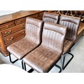 Four "Antique Brown Leather" Effect Dining Chairs having Tubular Steel Legs by Dunelm