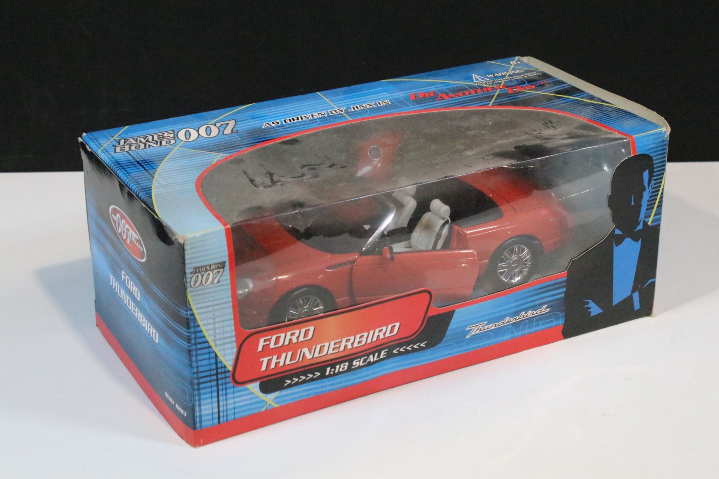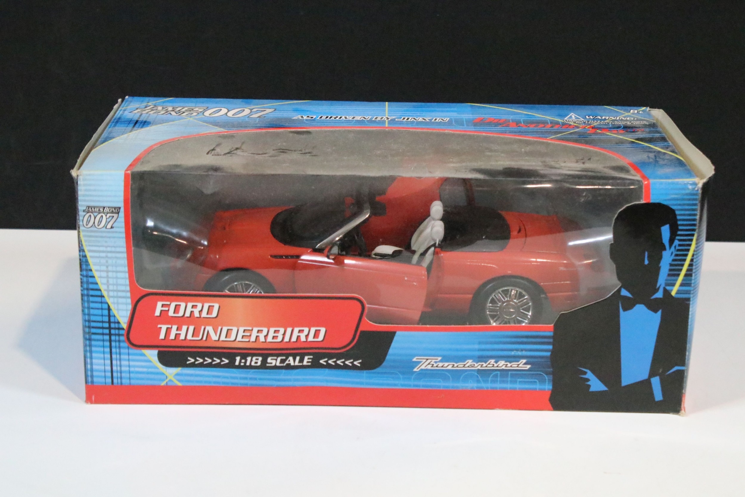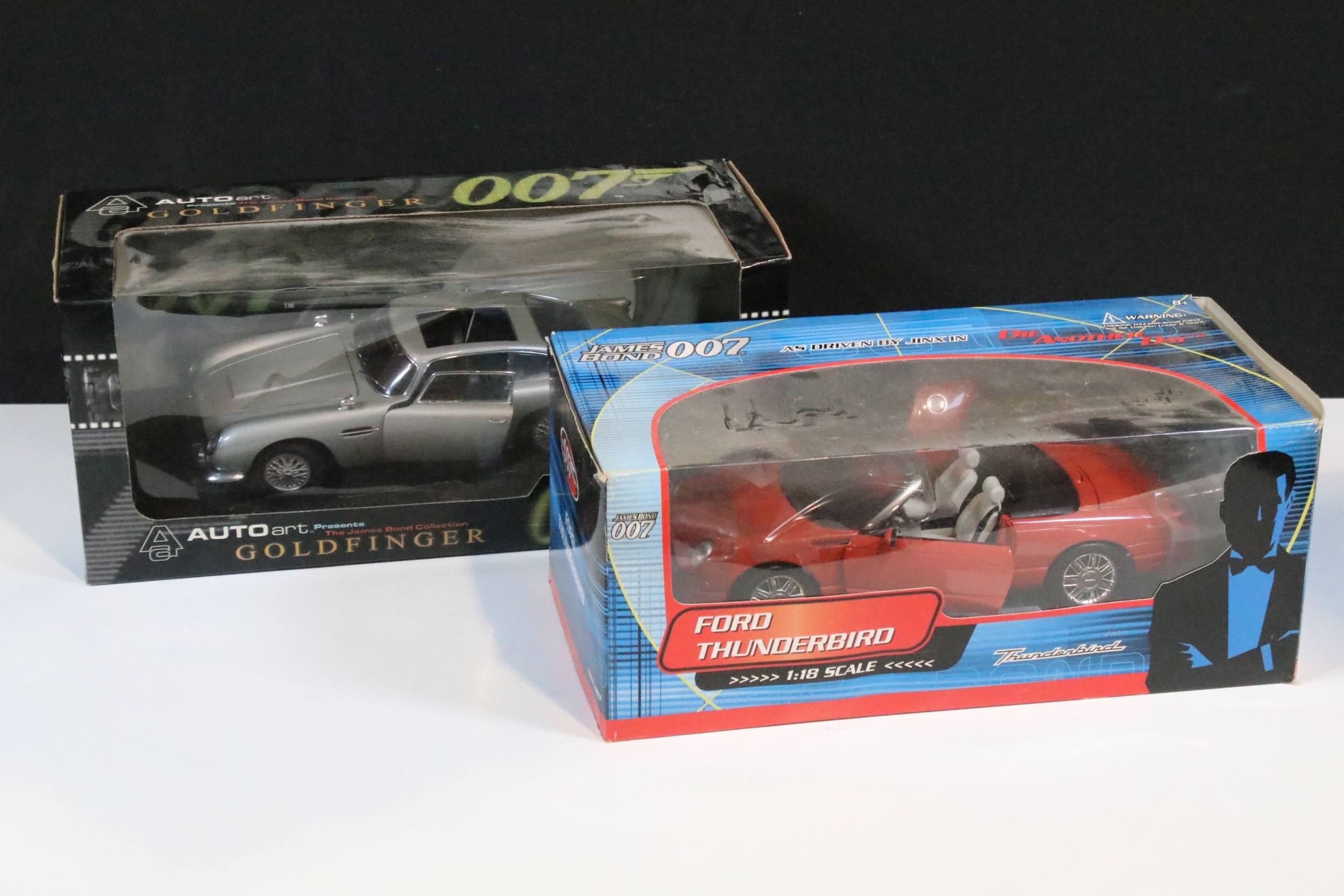 Two boxed 1/18 scale James Bond related diecast models to include AutoArt 70021 James Bond 007 Goldfinger Aston Martin DB5 and Paul's Model Art James Bond 007 Die Another Day Ford Thunderbird, diecast ex, boxes showing dustiness to plastic window and one window in need of re-gluing, but otherwise vg overall