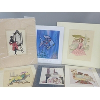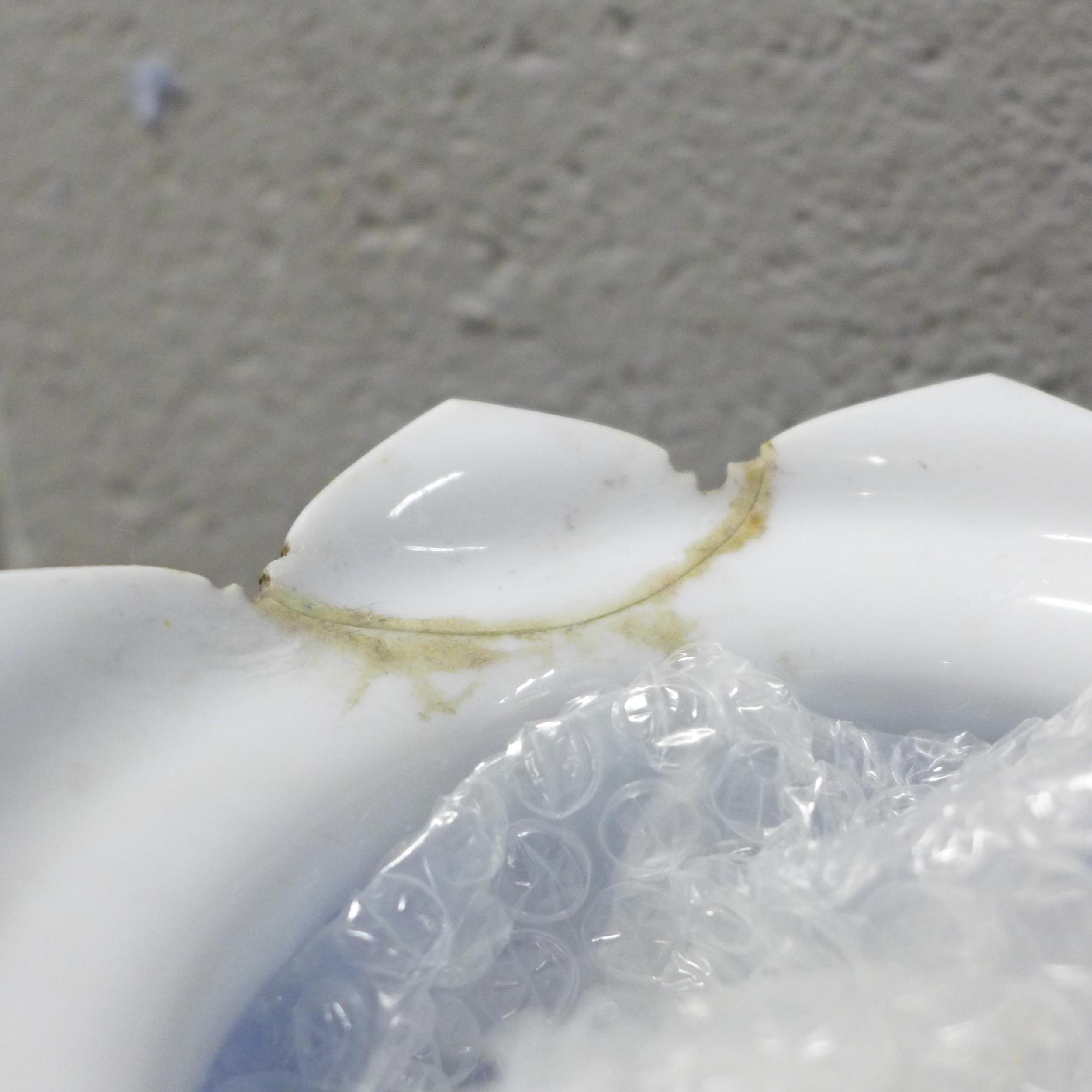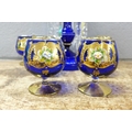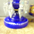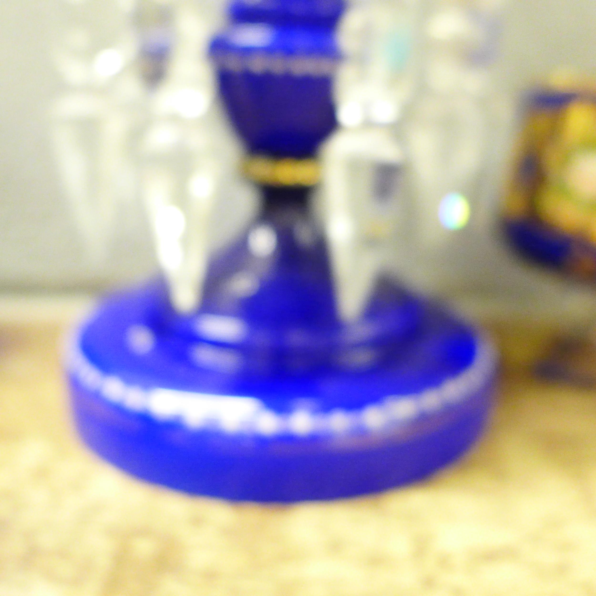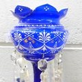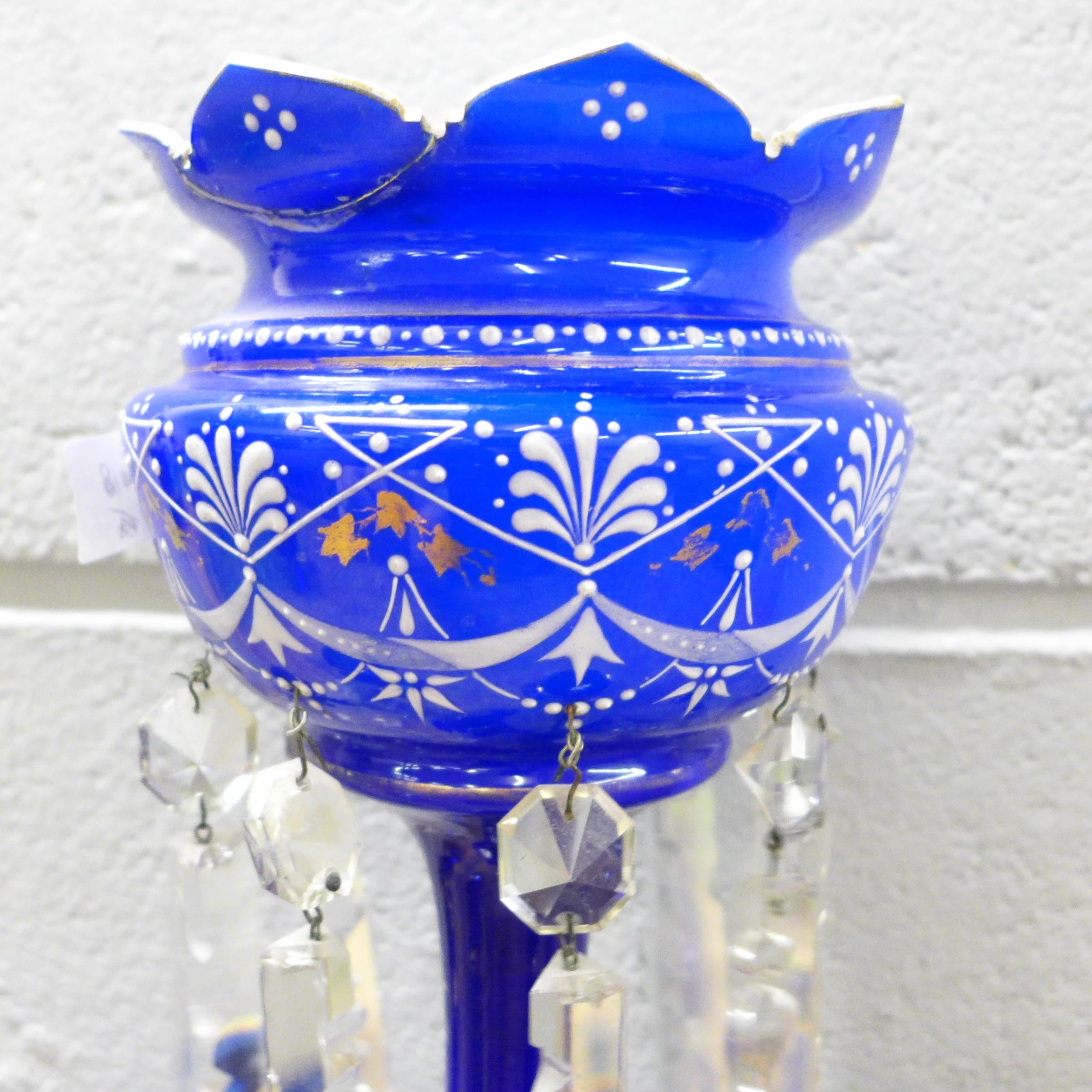 A glass lustre, a/f, and six blue glass liquer glasses