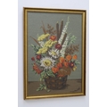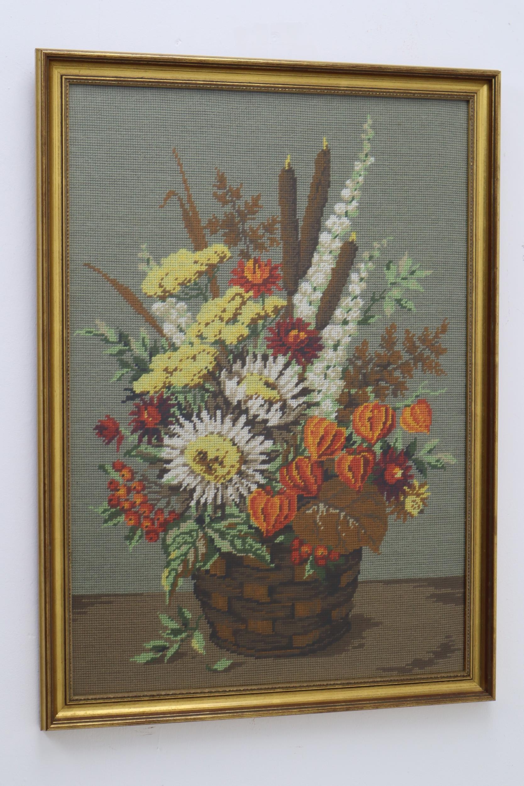 Framed and Glazed Embroidered Flowers in Vase approx 28" in Height x approx 20" in Width