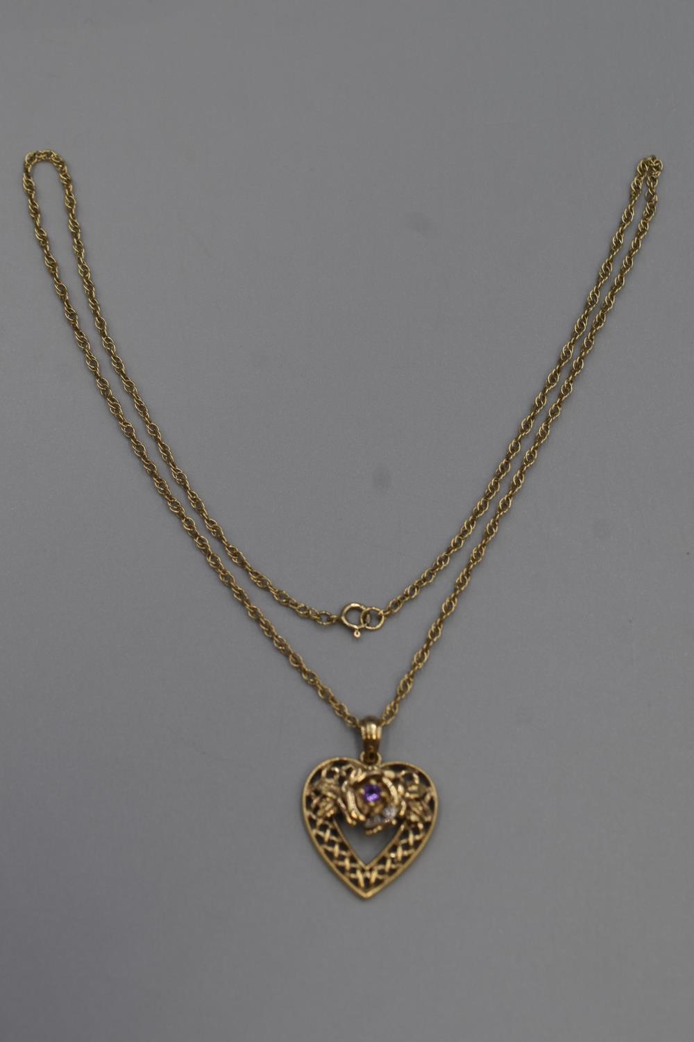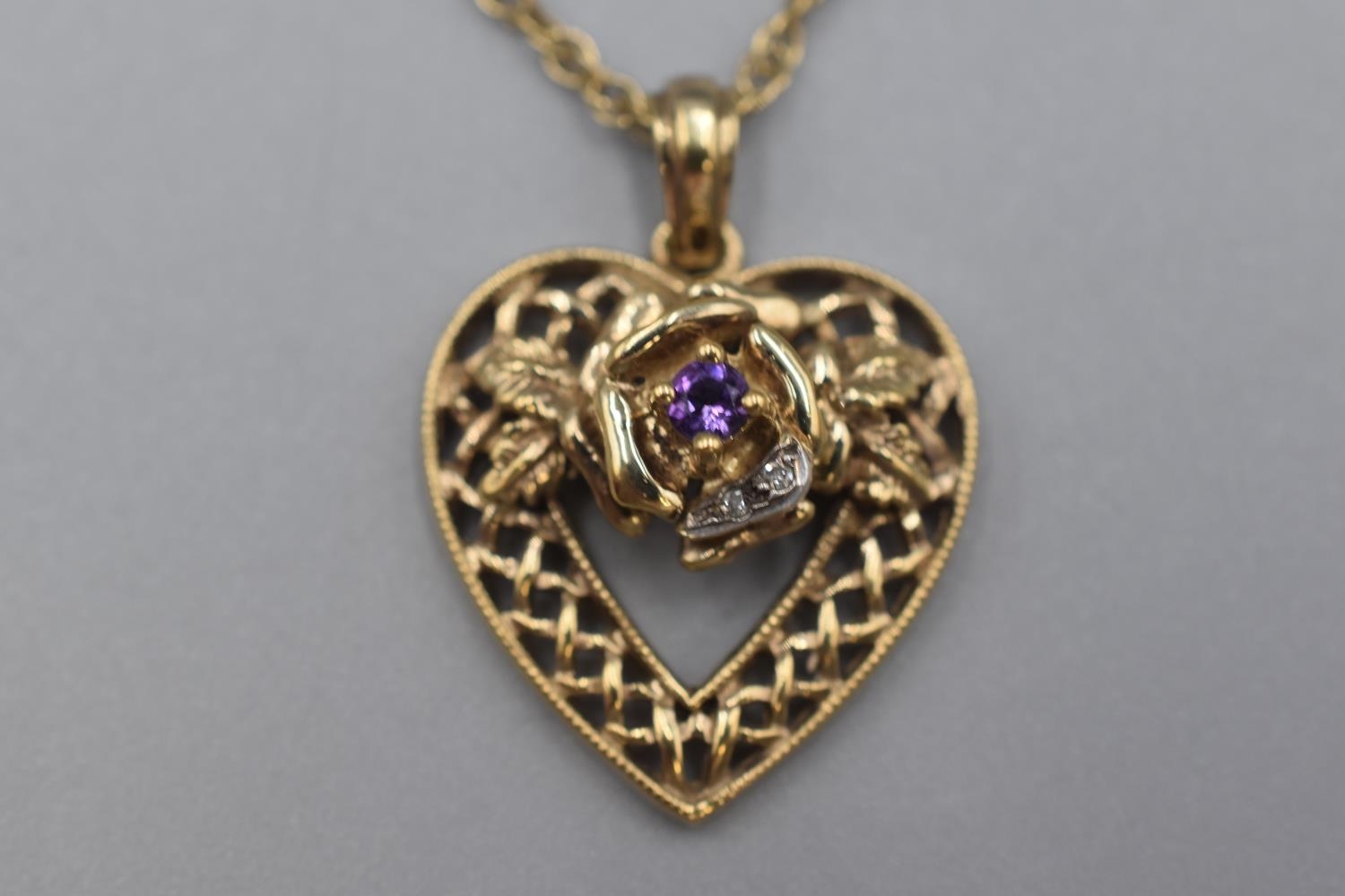 Brooks & Bentley Silver 925 Diamond and Amethyst Heart Pendant and Chain Complete with Presentation Box