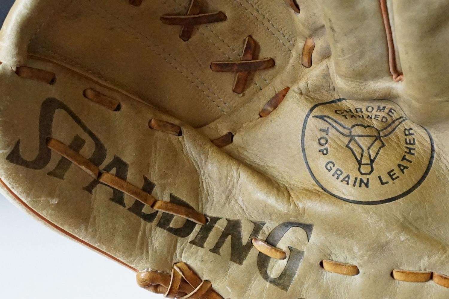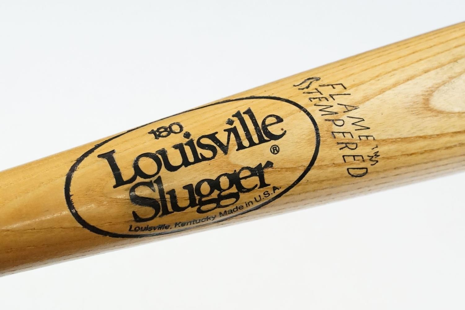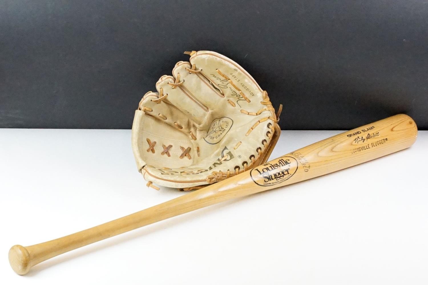 180 Louisville Slugger flame tempered baseball bat, Spalding top grain leather baseball mitt and four baseballs (6)