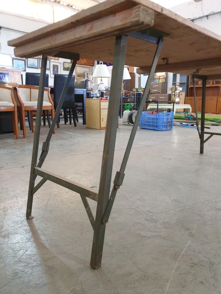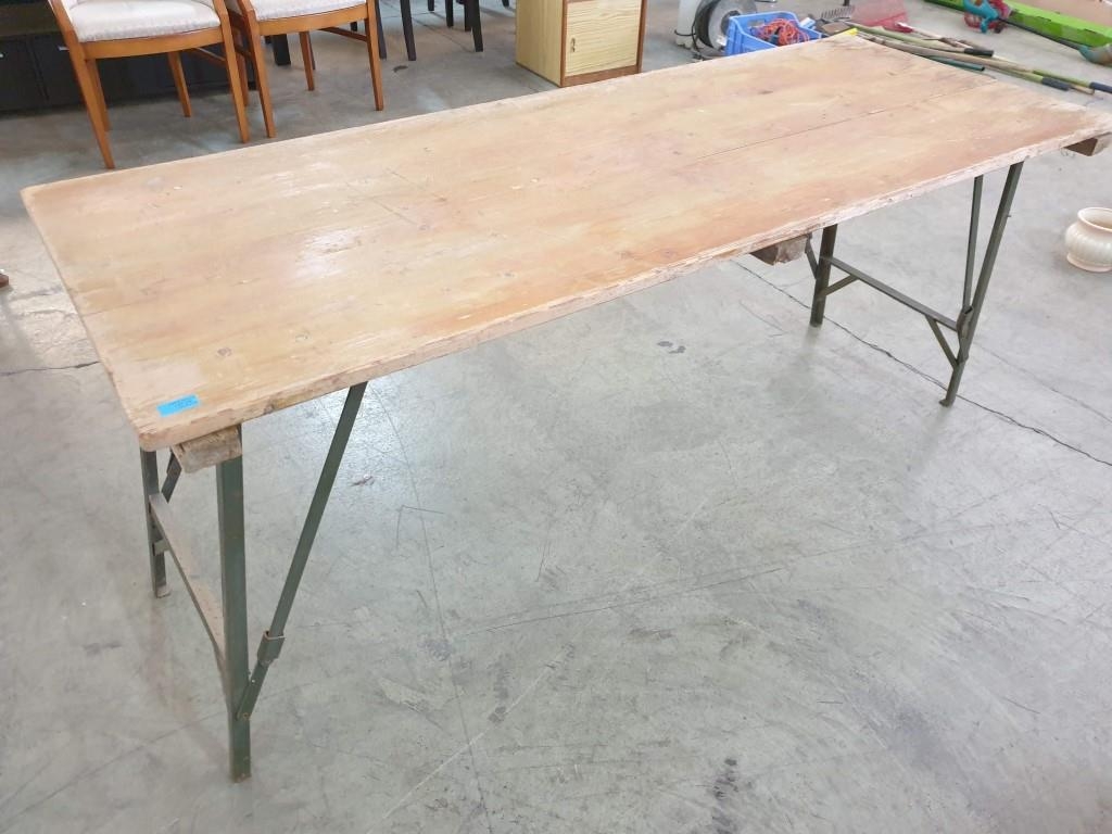Vintage Tressil / Folding Table with Solid Wood Top and Metal Legs (179cm x 67cm x 76cm)