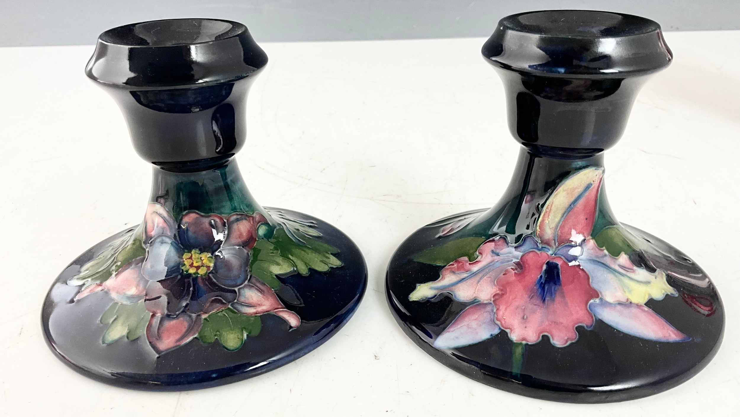 2 MOORCROFT BLUE GROUND CHAMBER STICKS 10cm DIAMETER