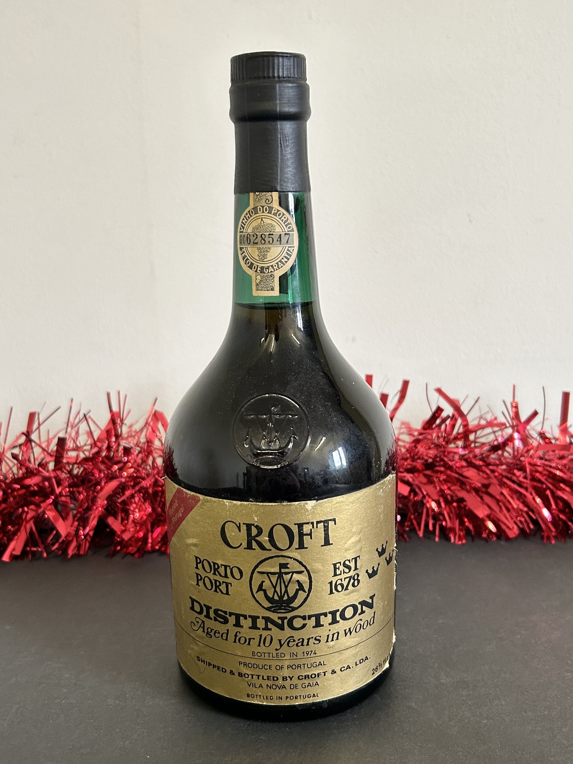 A 1974 bottle of Croft Port Distinction, Aged for 10 Years in Wood, 26 2/3 fl oz