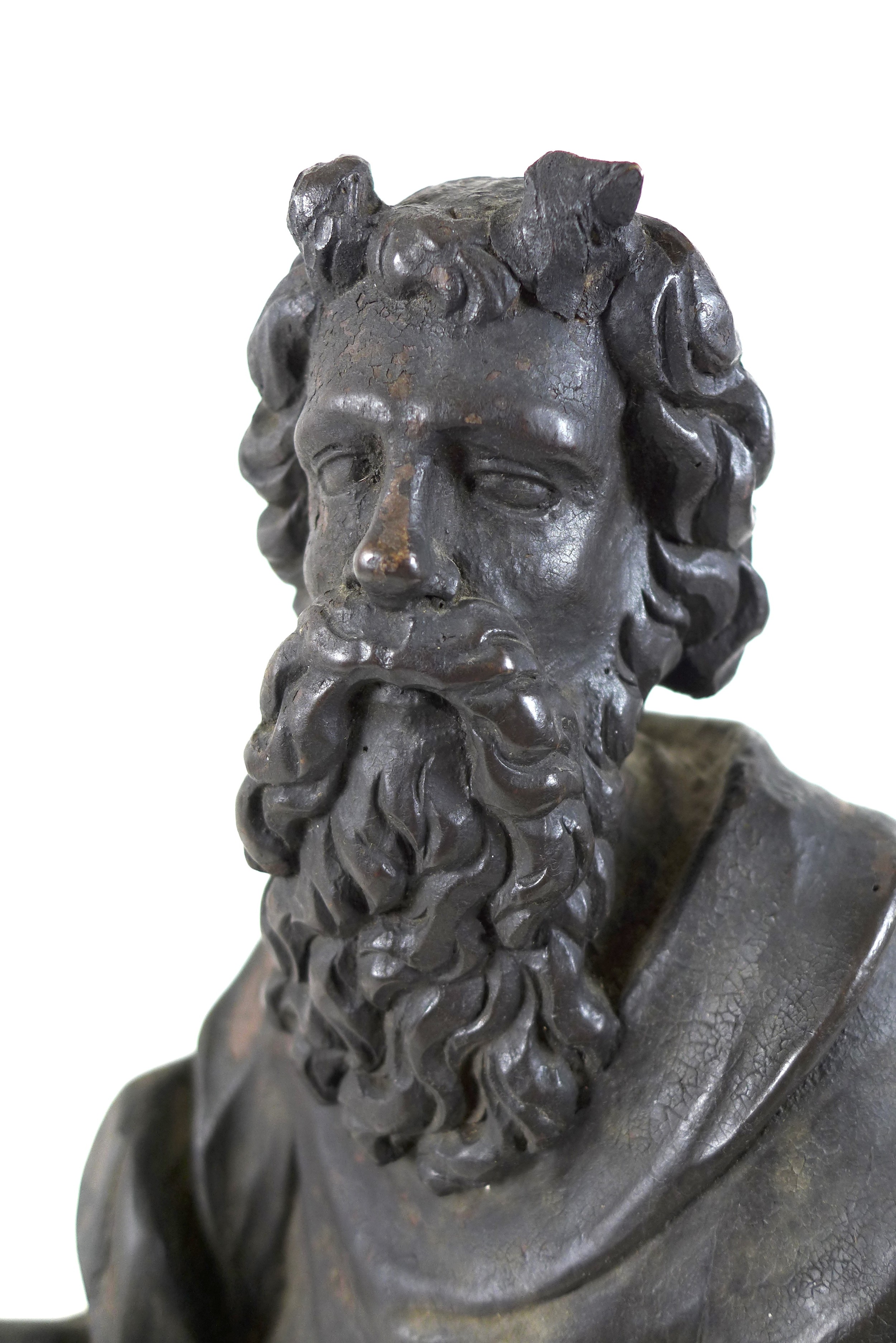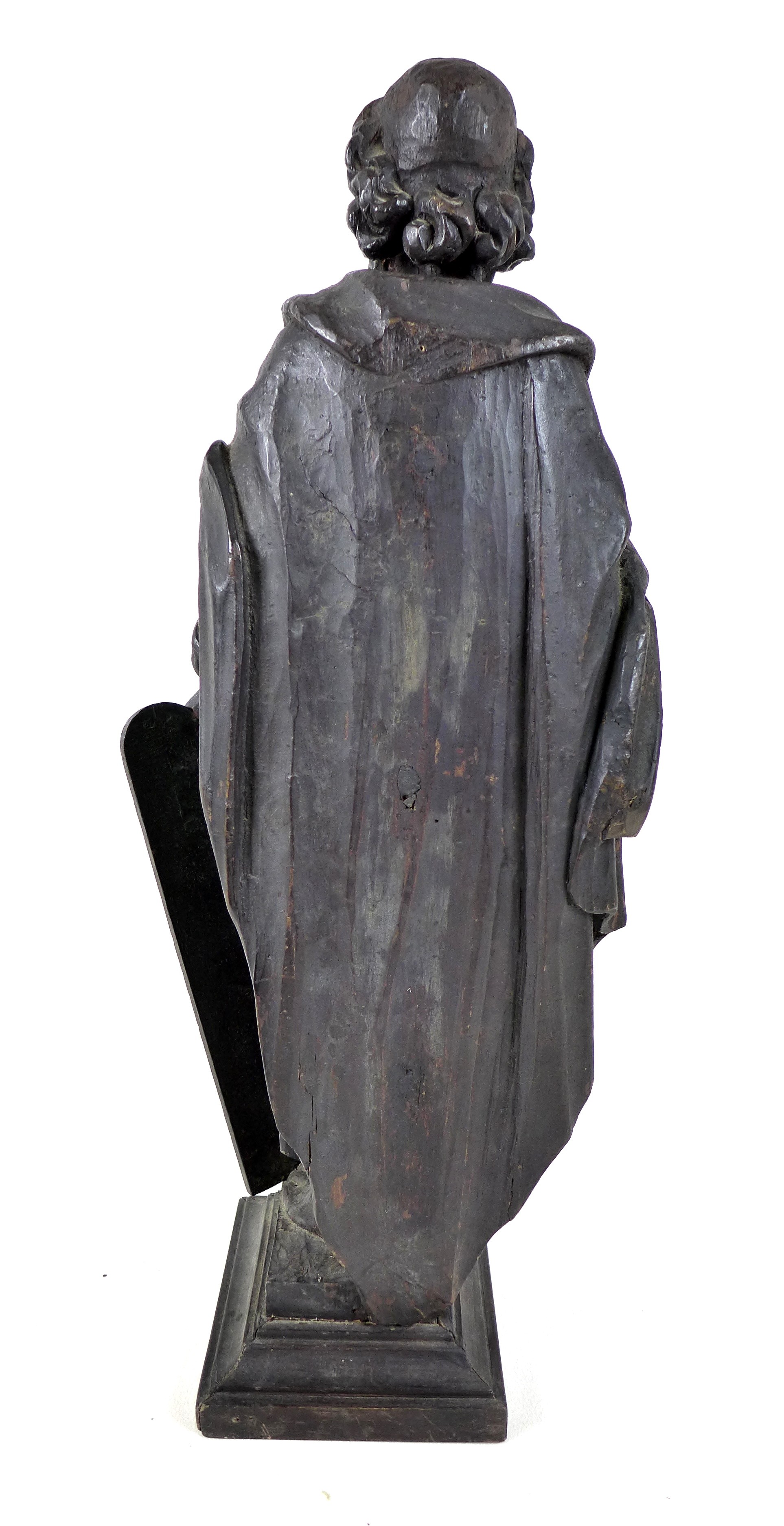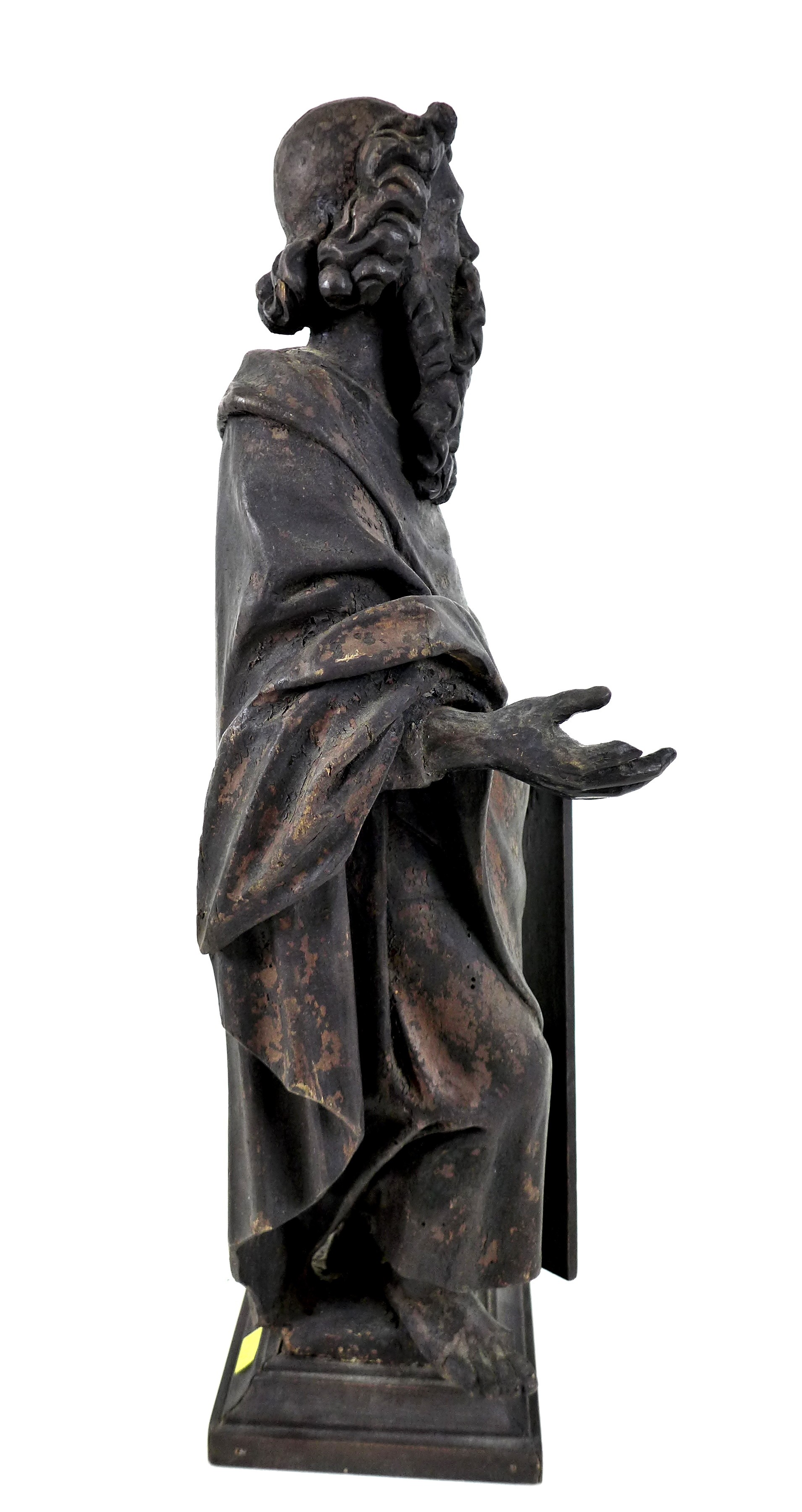 An 18th century carved wooden sculpture of Moses and the Ten Commandments, raised on square plinth, 53cm high.