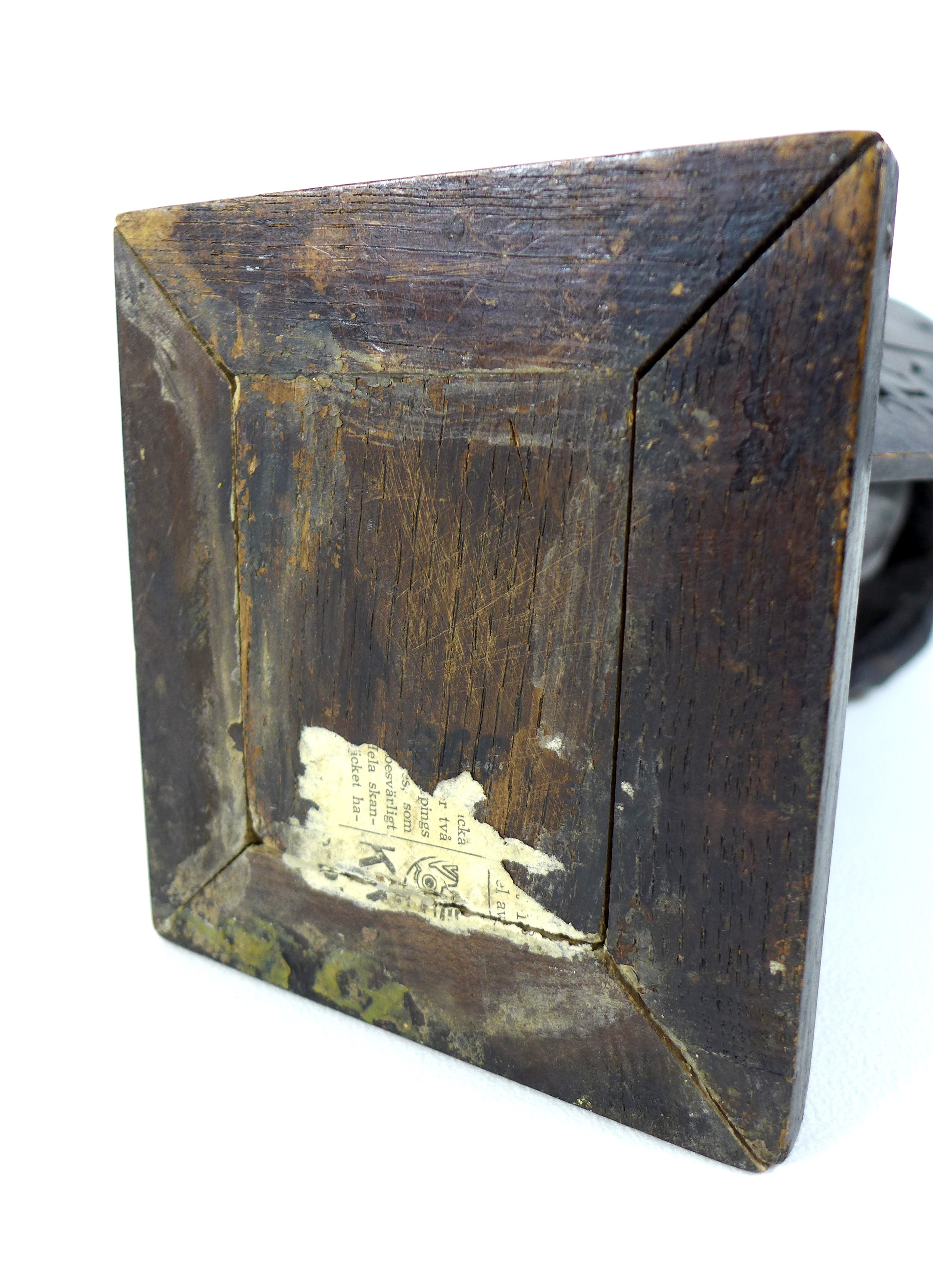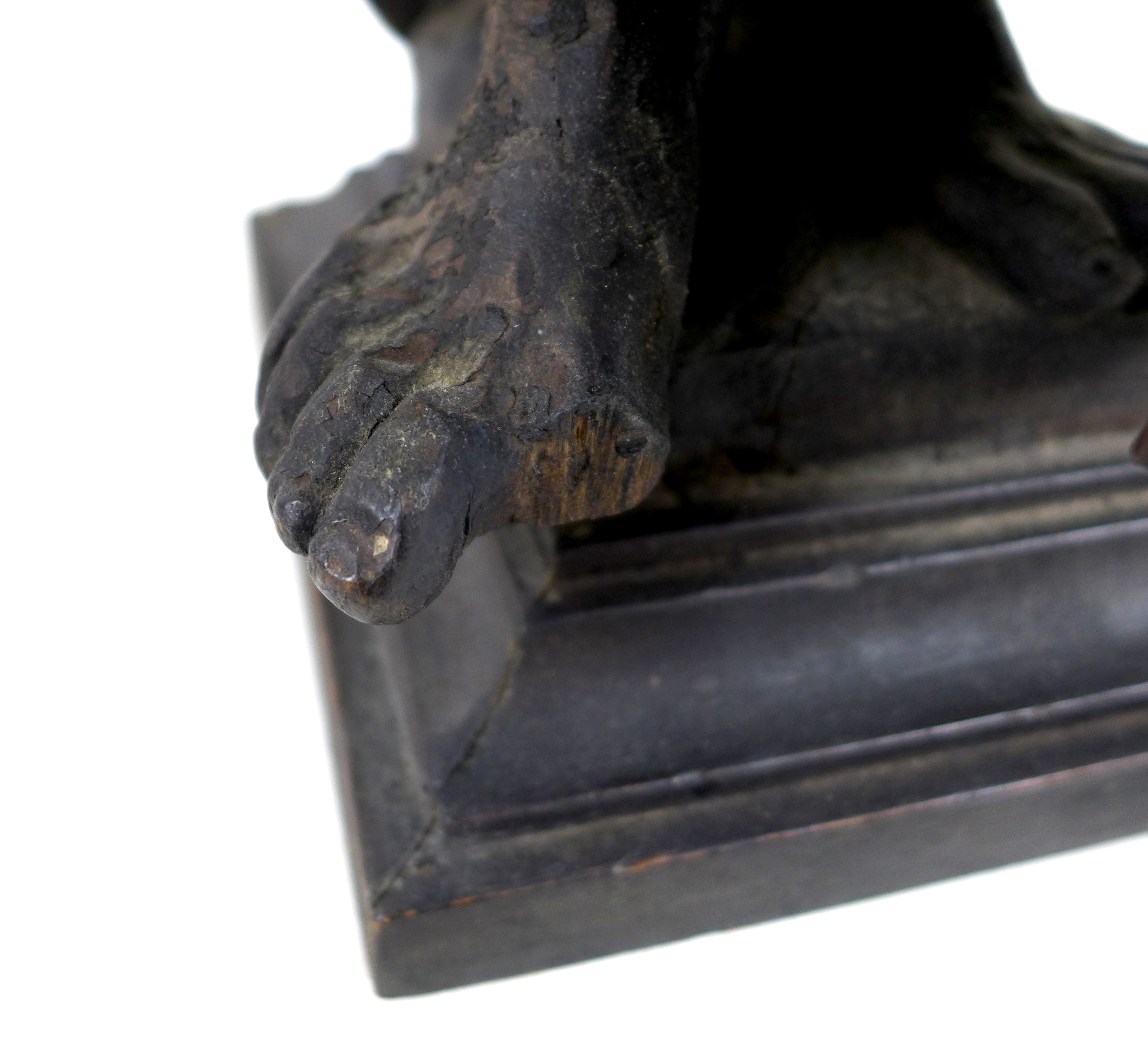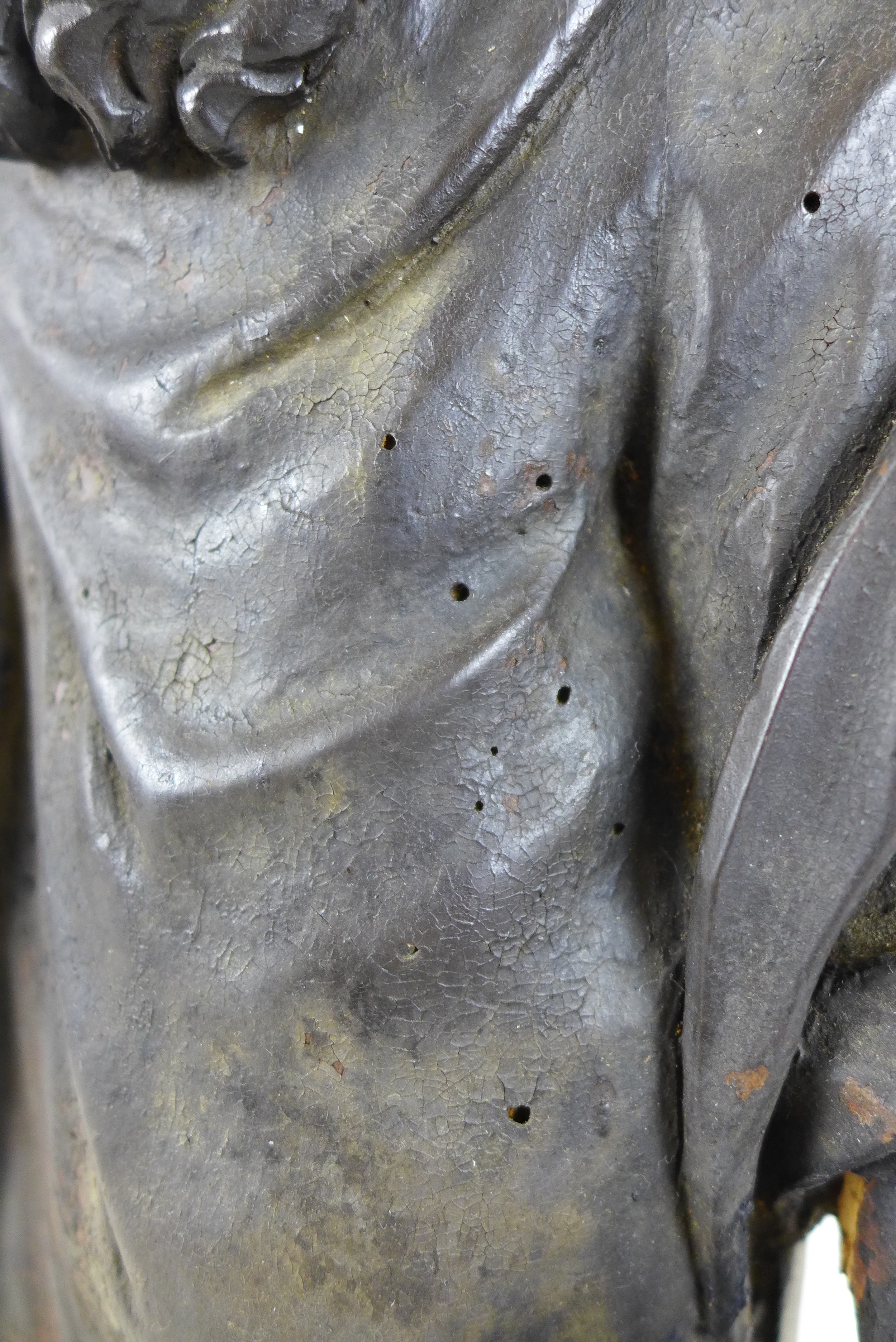 Slight damage to one of the hands and evidence of old woodworm.