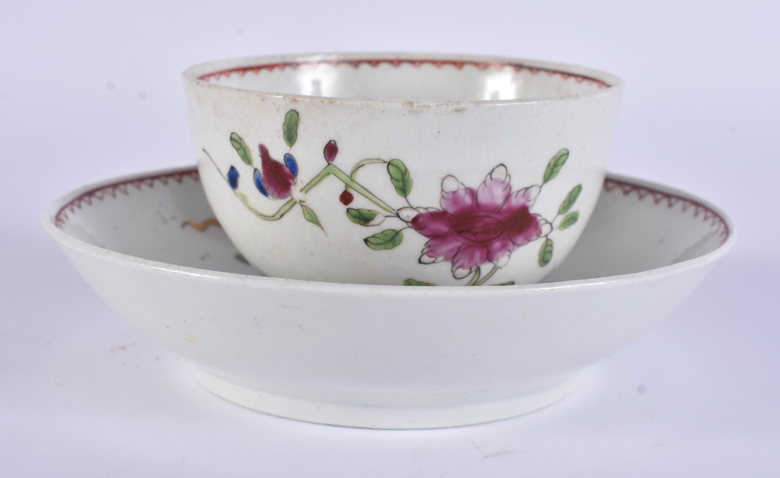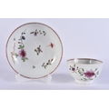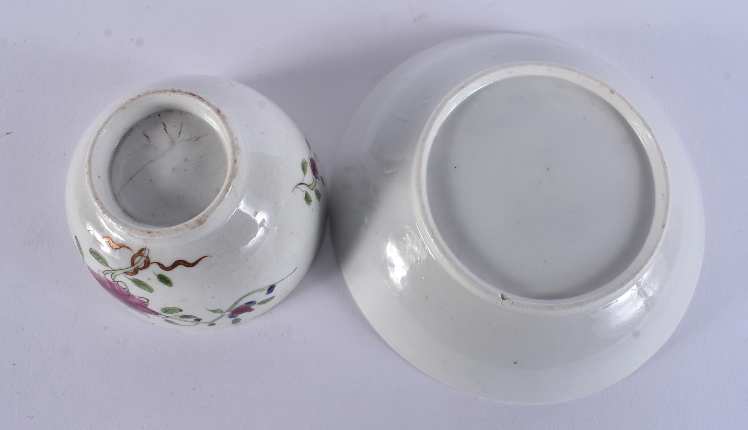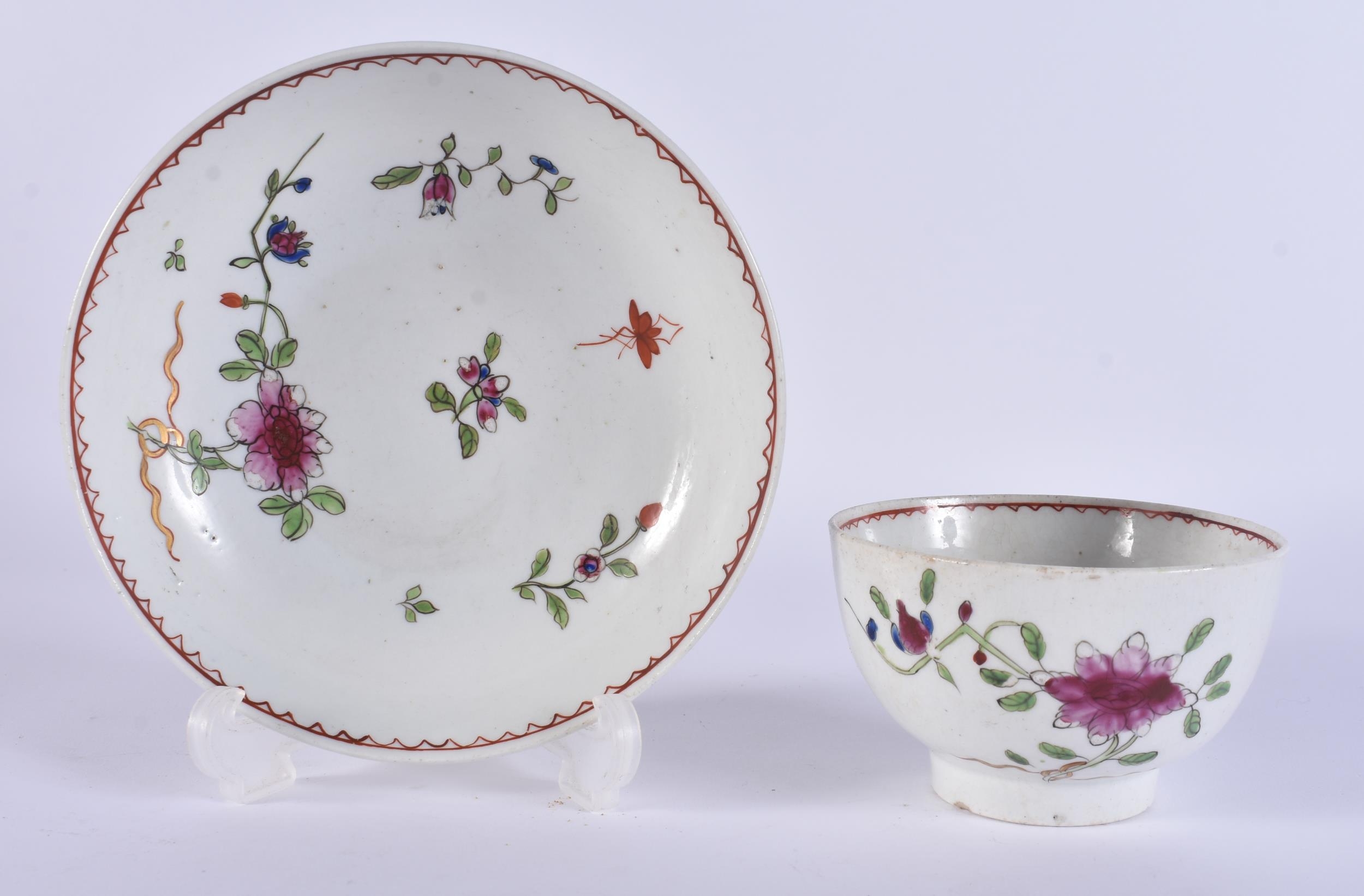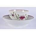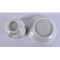 AN 18TH CENTURY ENGLISH PORCELAIN TEABOWL AND SAUCER painted in the Chinese Export style. 12 cm wide. (2)