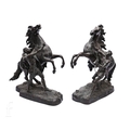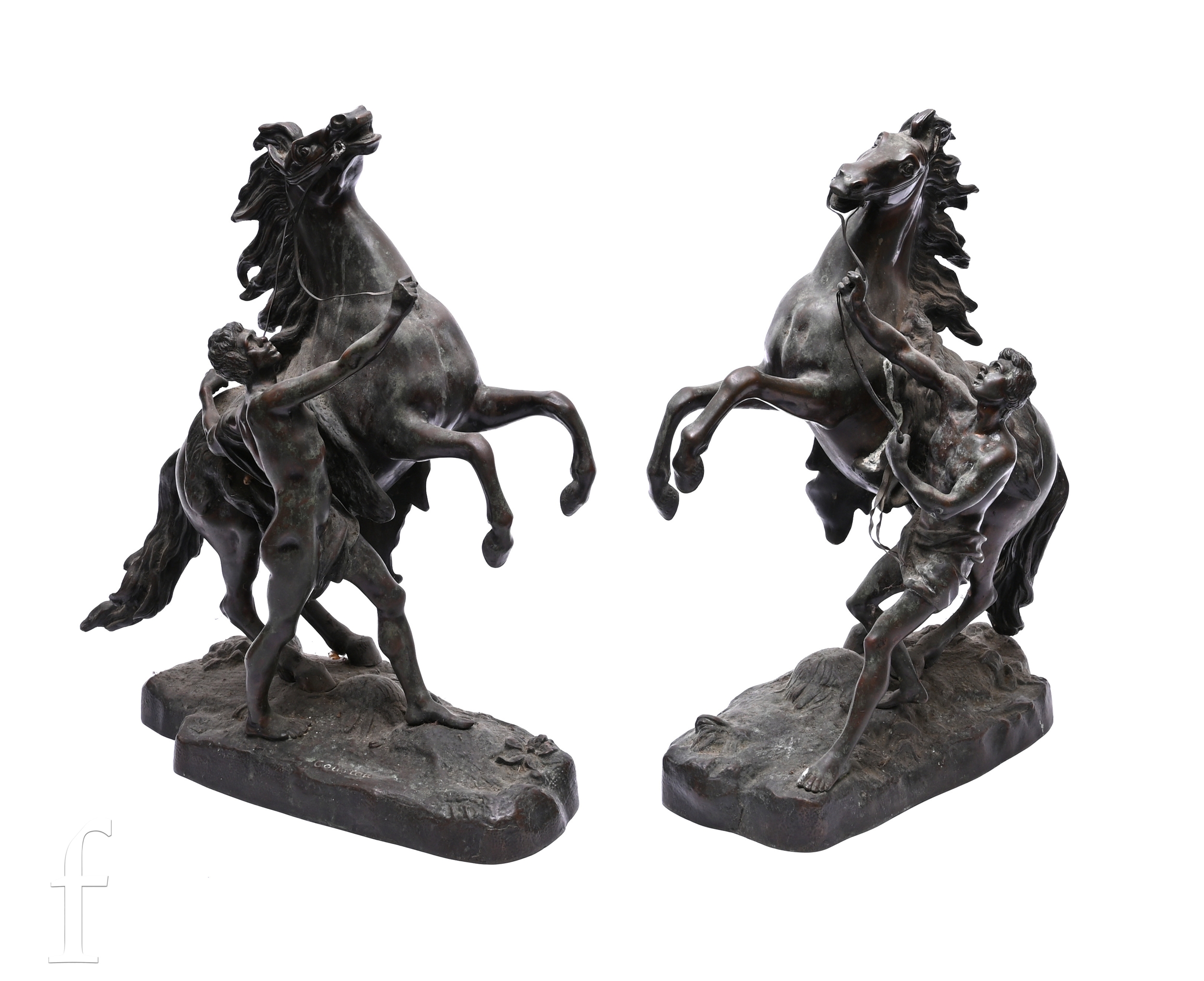 After Cousteau - A pair of late 19th Century bronze Marley horses with attendants each holding a reign, signed to base, height 46cm. (2)