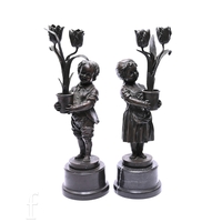 After Cousteau - A pair of late 19th Century bronze Marley horses with attendants each holding a reign, signed to base, height 46cm. (2)