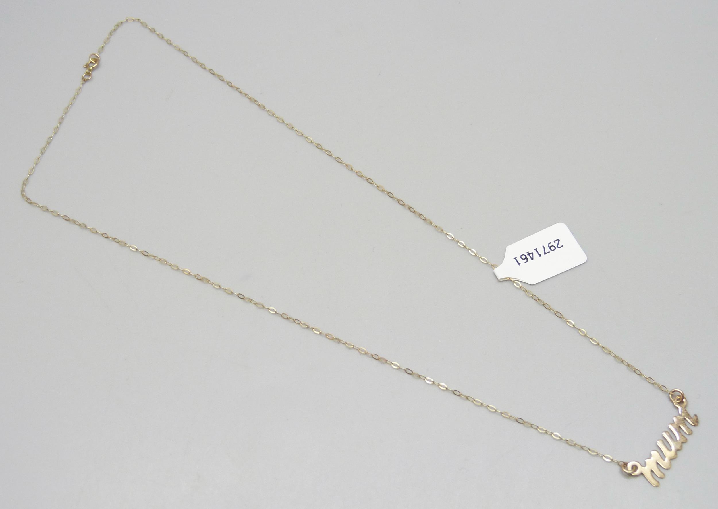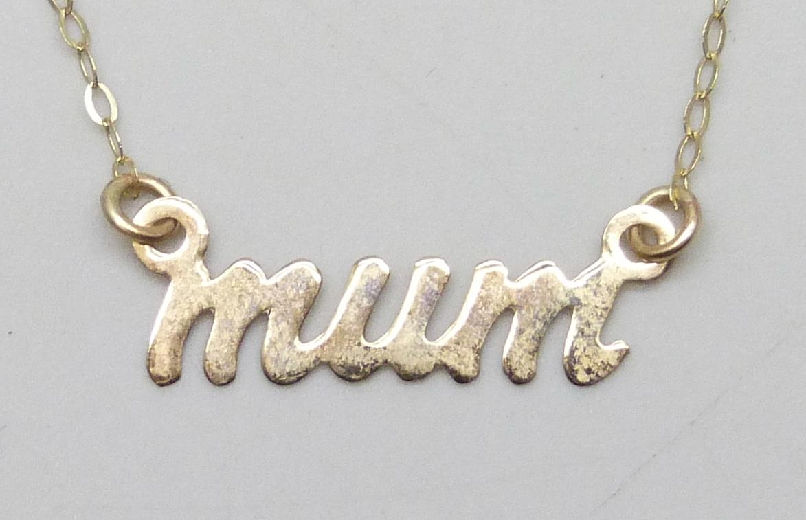 A 9ct gold 'MUM' necklace, 0.4g