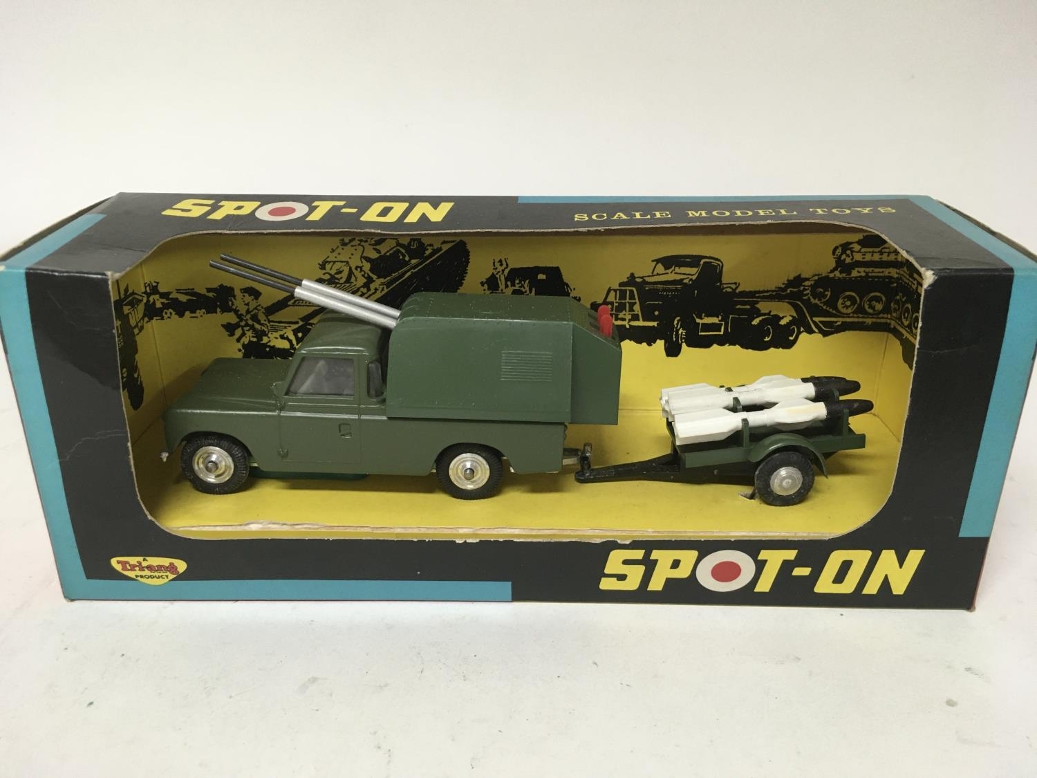 Triang Spot on, 1:42 scale, #419 Army Land Rover rocket launcher, boxed, missing window