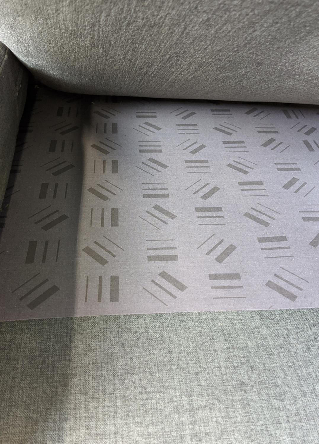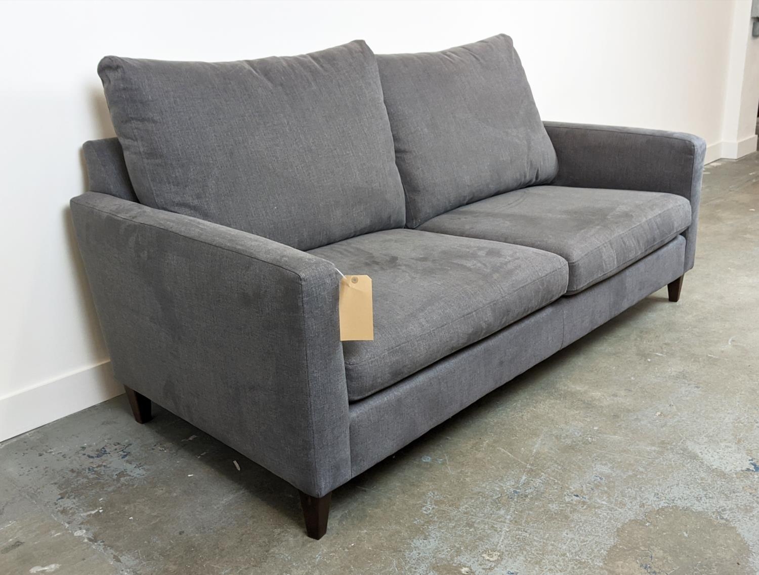 SOFA, grey upholstery, 78cm H x 188cm W.