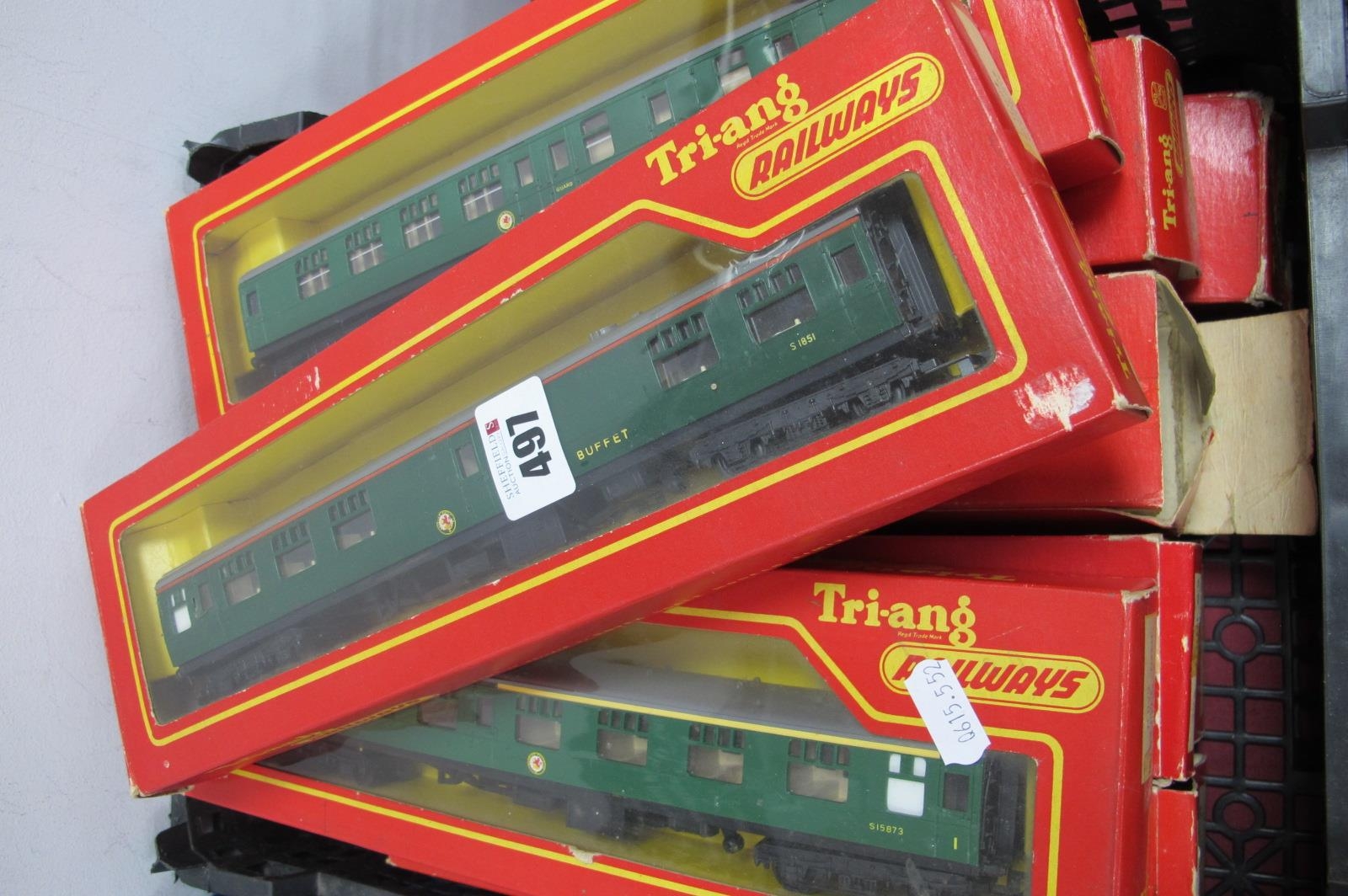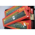 Thirteen Tri-ang "OO" Gauge/4mm Boxed Coaches, four W.R including Ref R332 Clerestory and nine BR green/SR: includes Ref No's R622/623/624 (all good - boxes fair to good).
