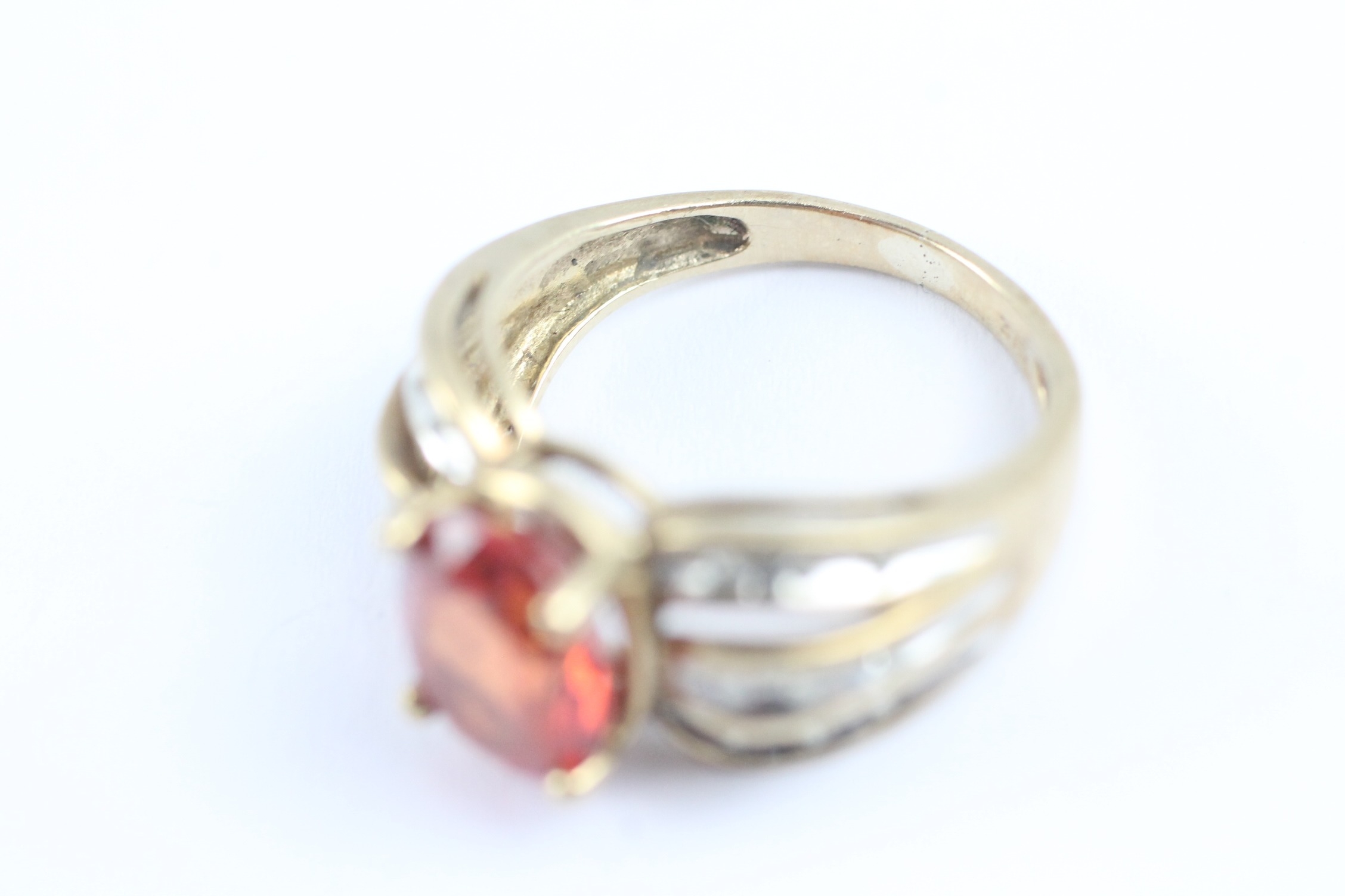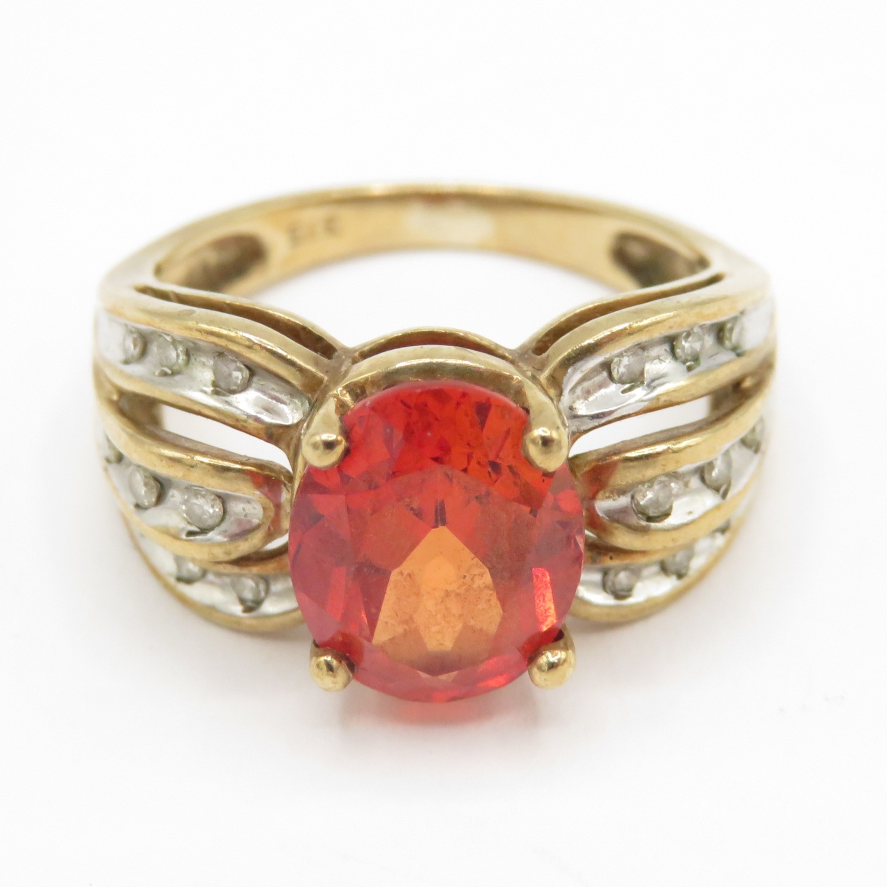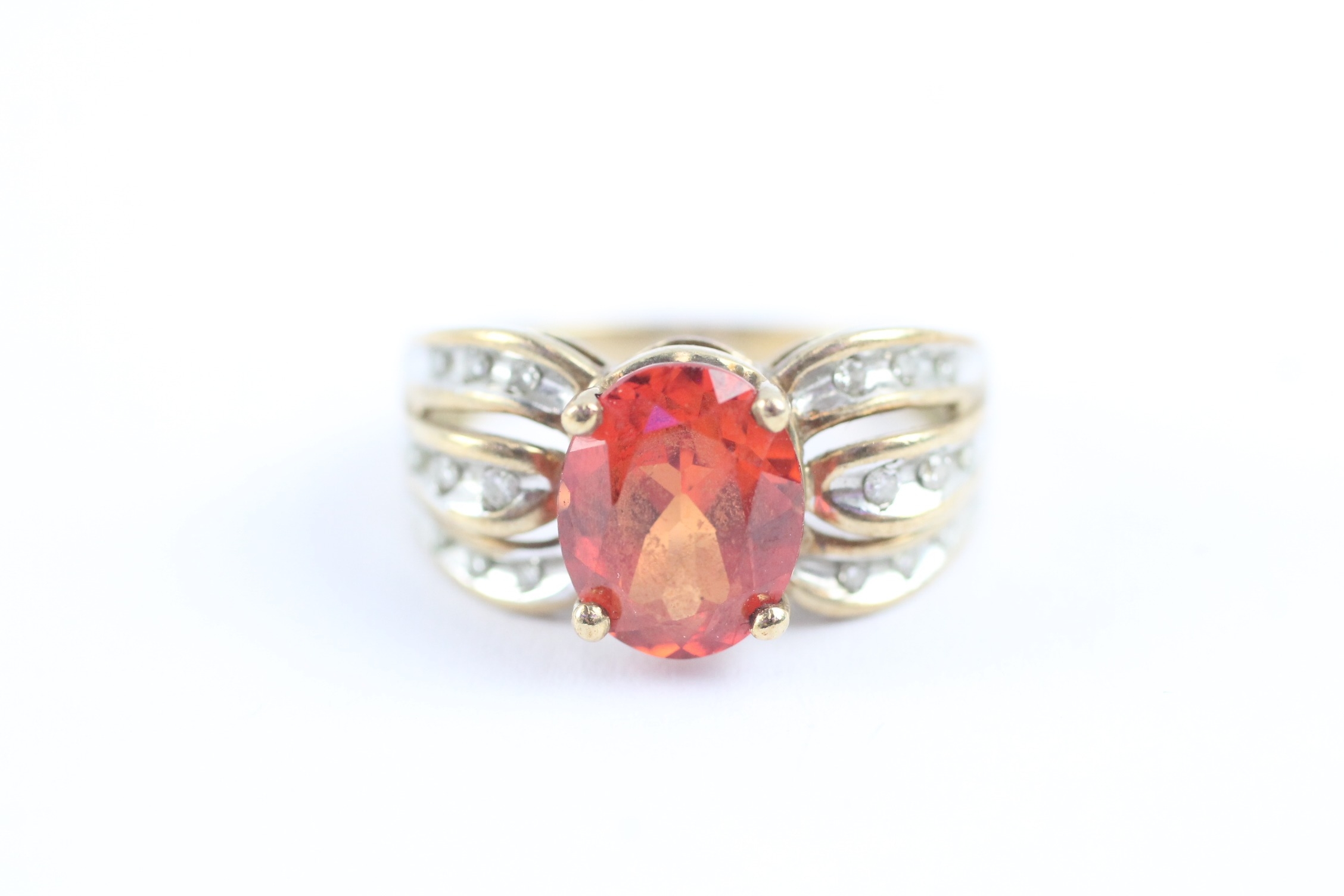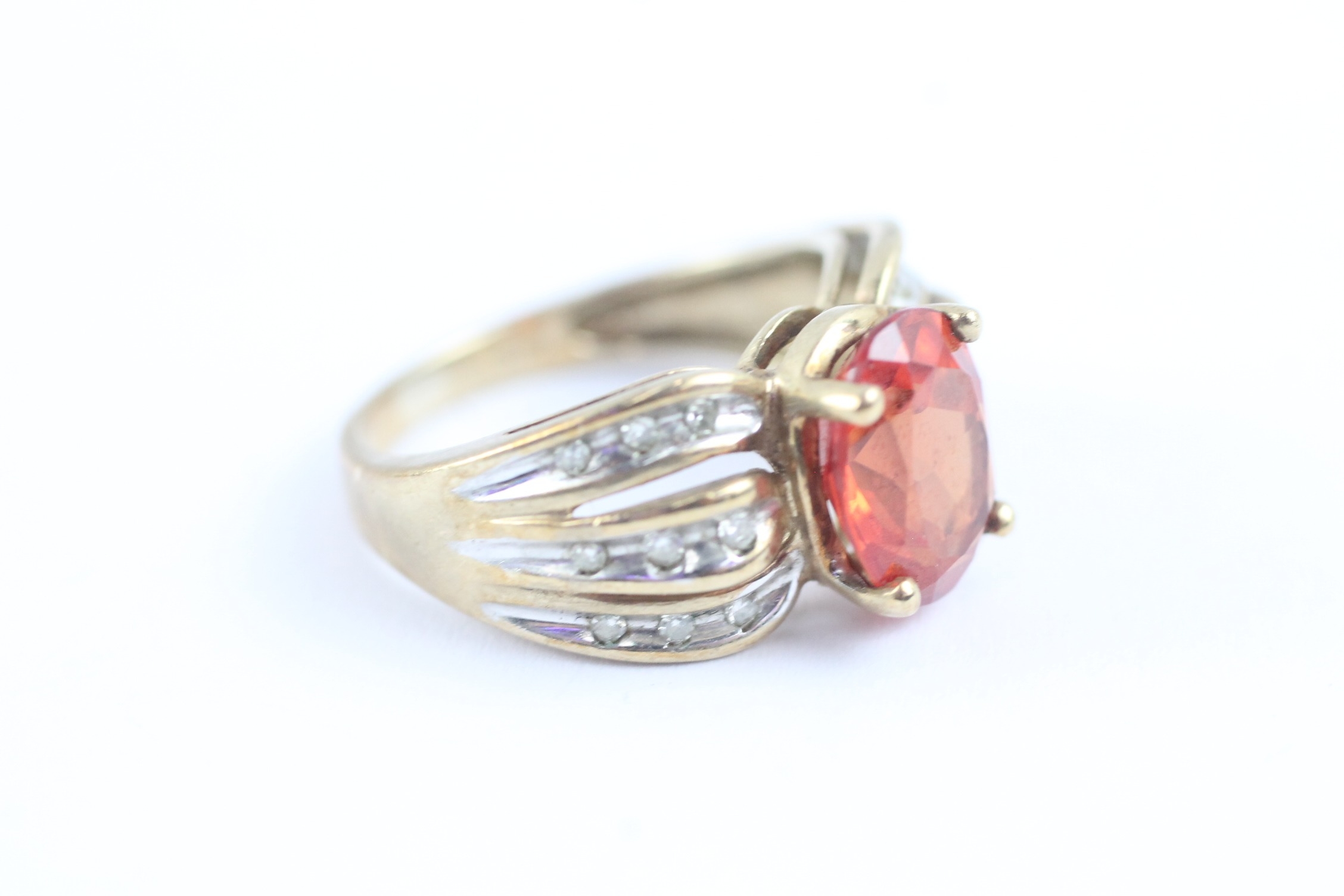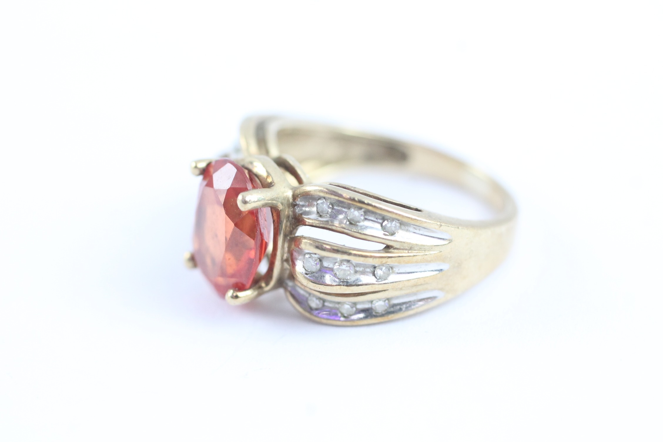 9ct gold citrine & diamond dress ring (4.1g) Size L