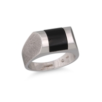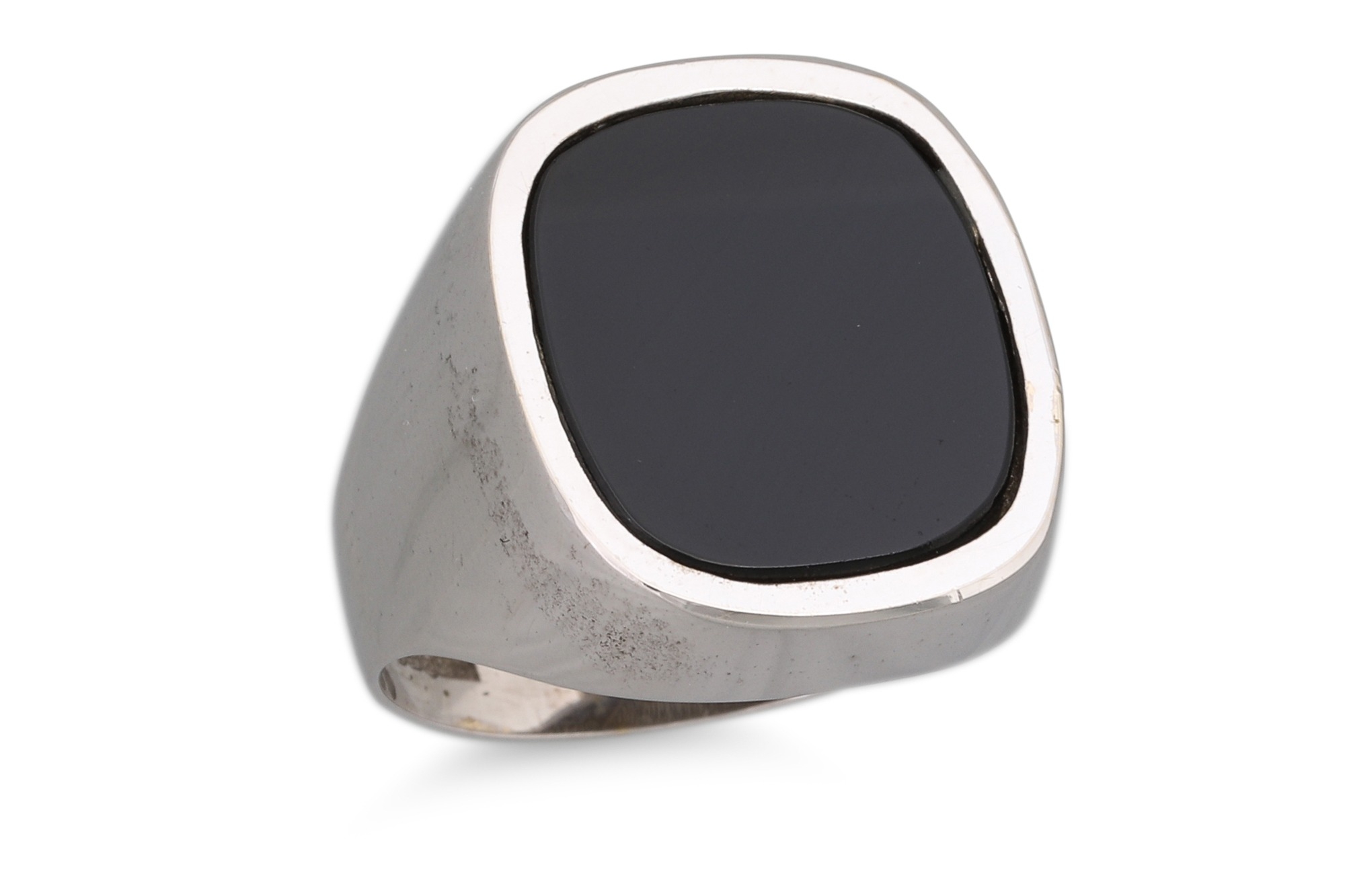 A 1970'S ONYX SIGNET RING, mounted in 14ct white gold, size U-V, 10 g.