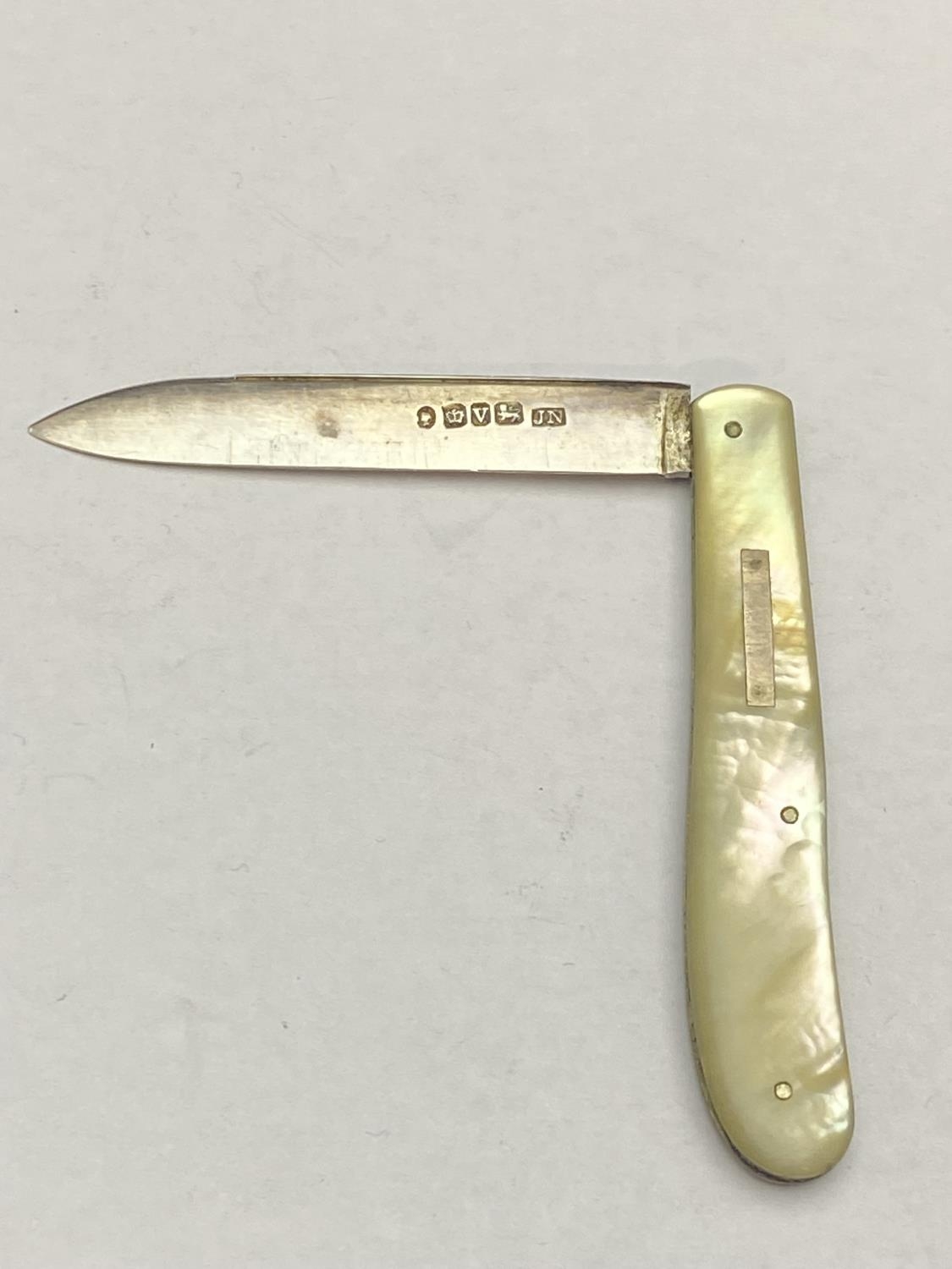 A hallmarked silver and M.O.P fruit knife