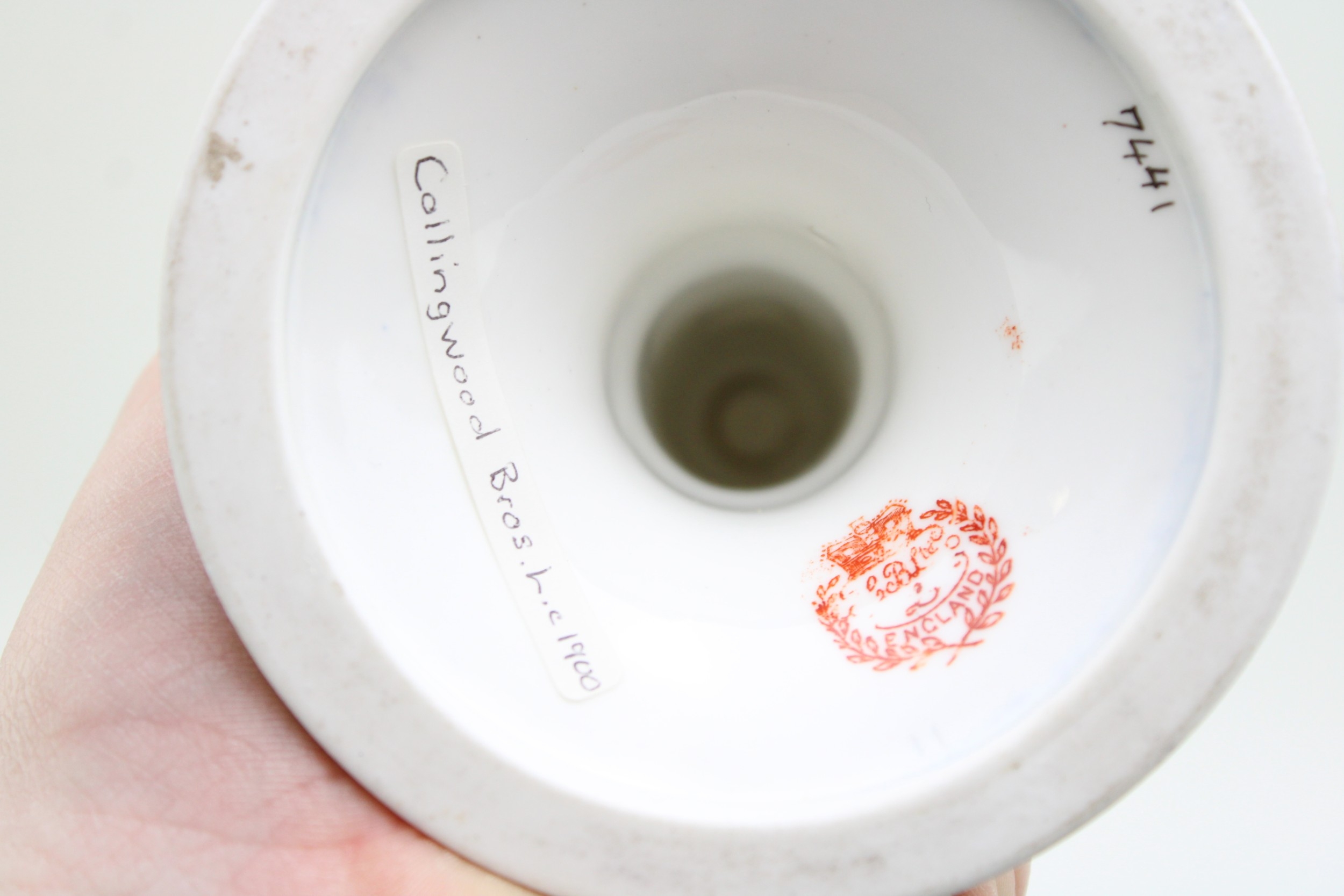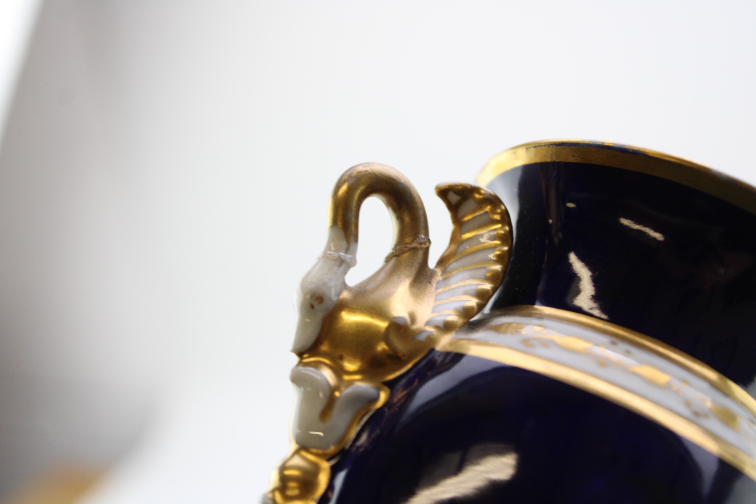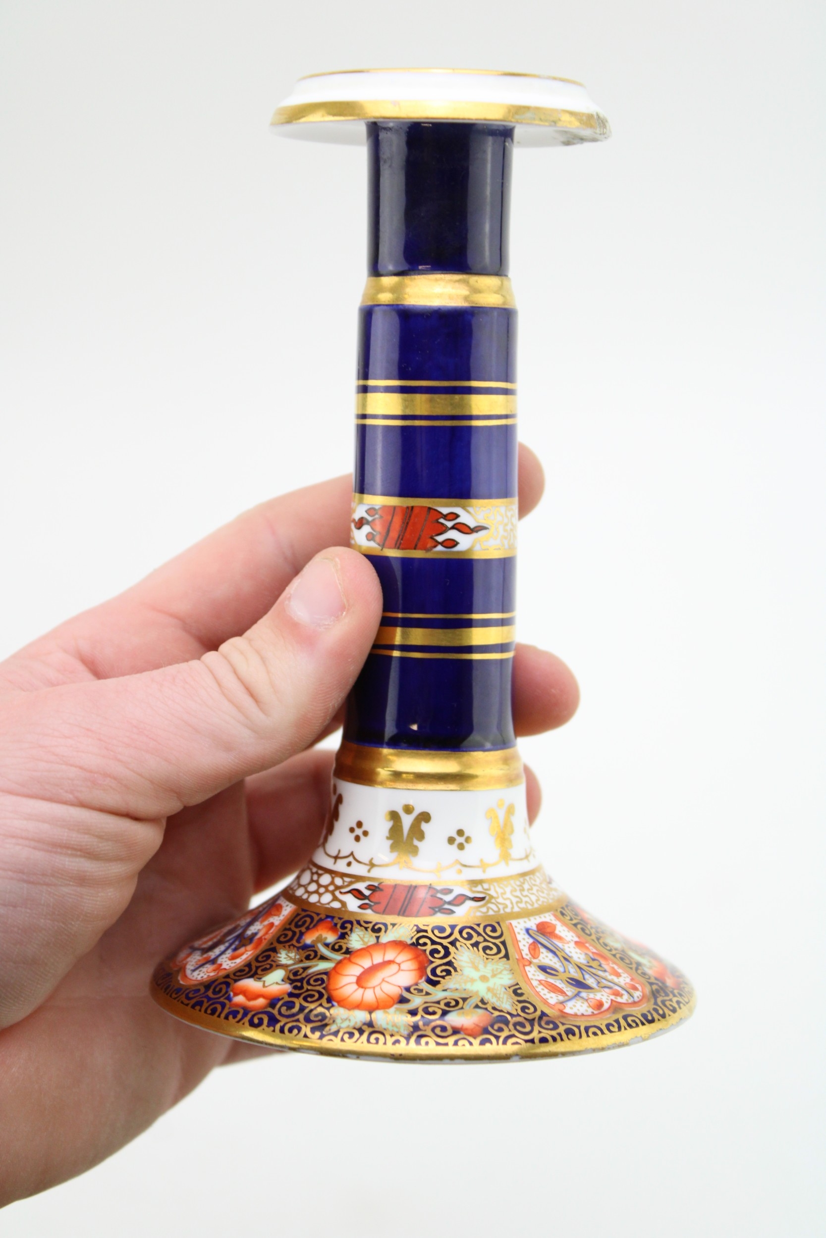 A collection of early ceramics to include Coalport two handled landscape vase, Collingwood Bros pair of candlesticks, together with a two handle vase, cobalt blue ground with gilt decoration c19th century, 20cm tall, (4).