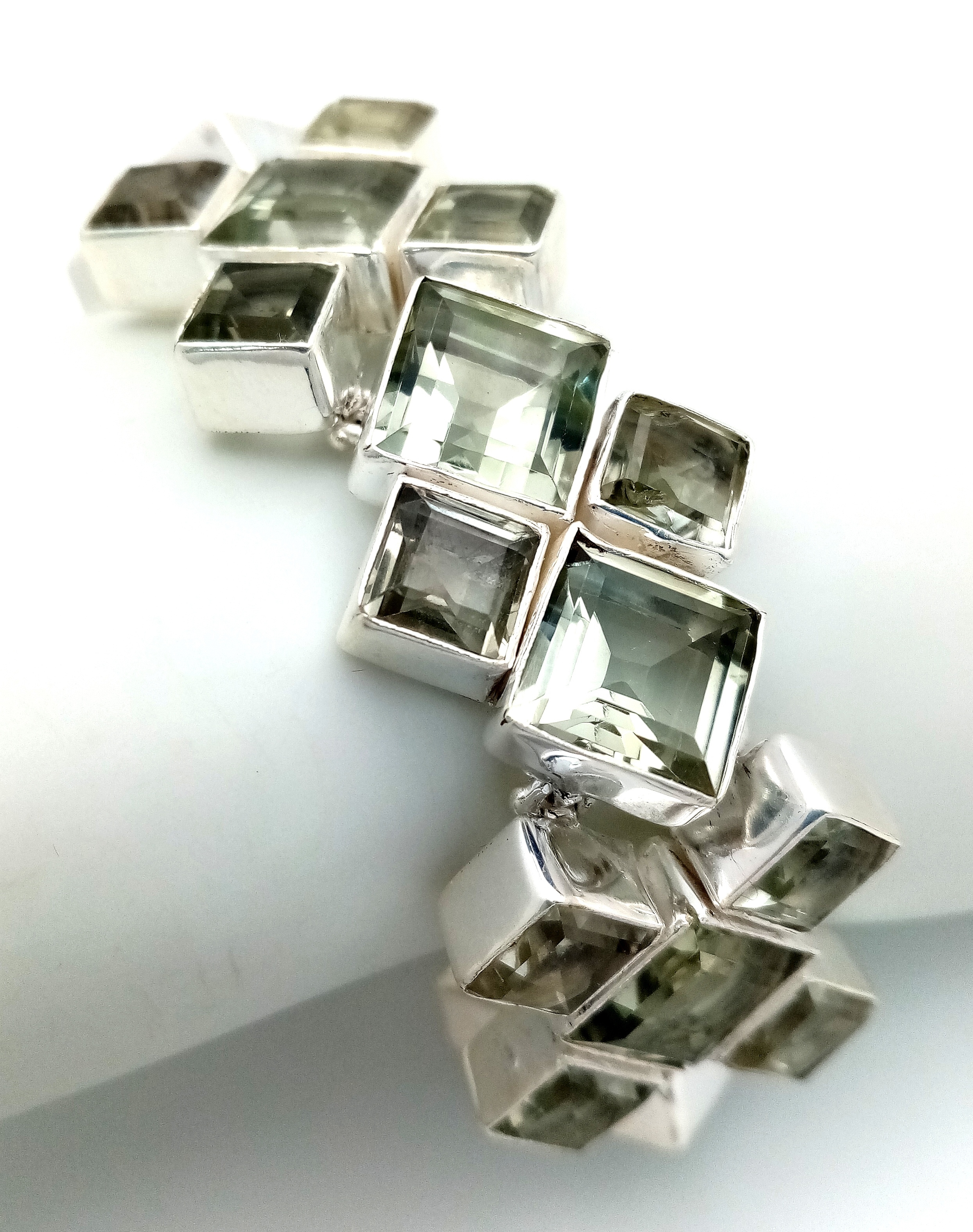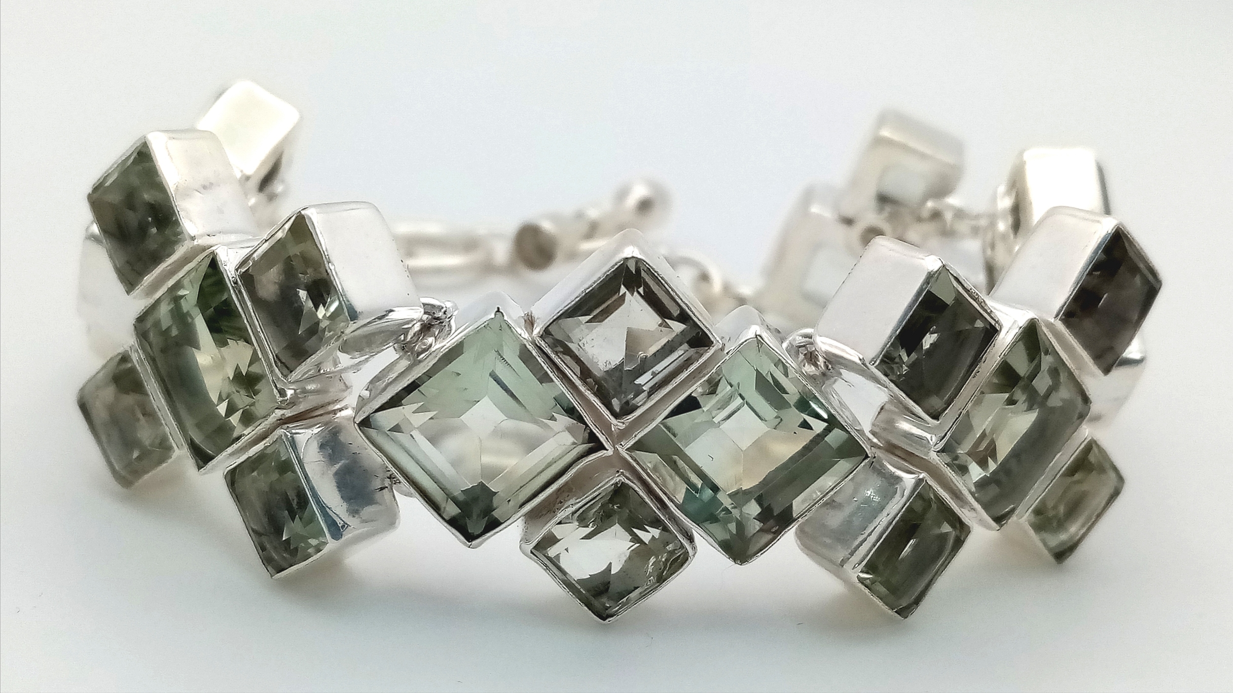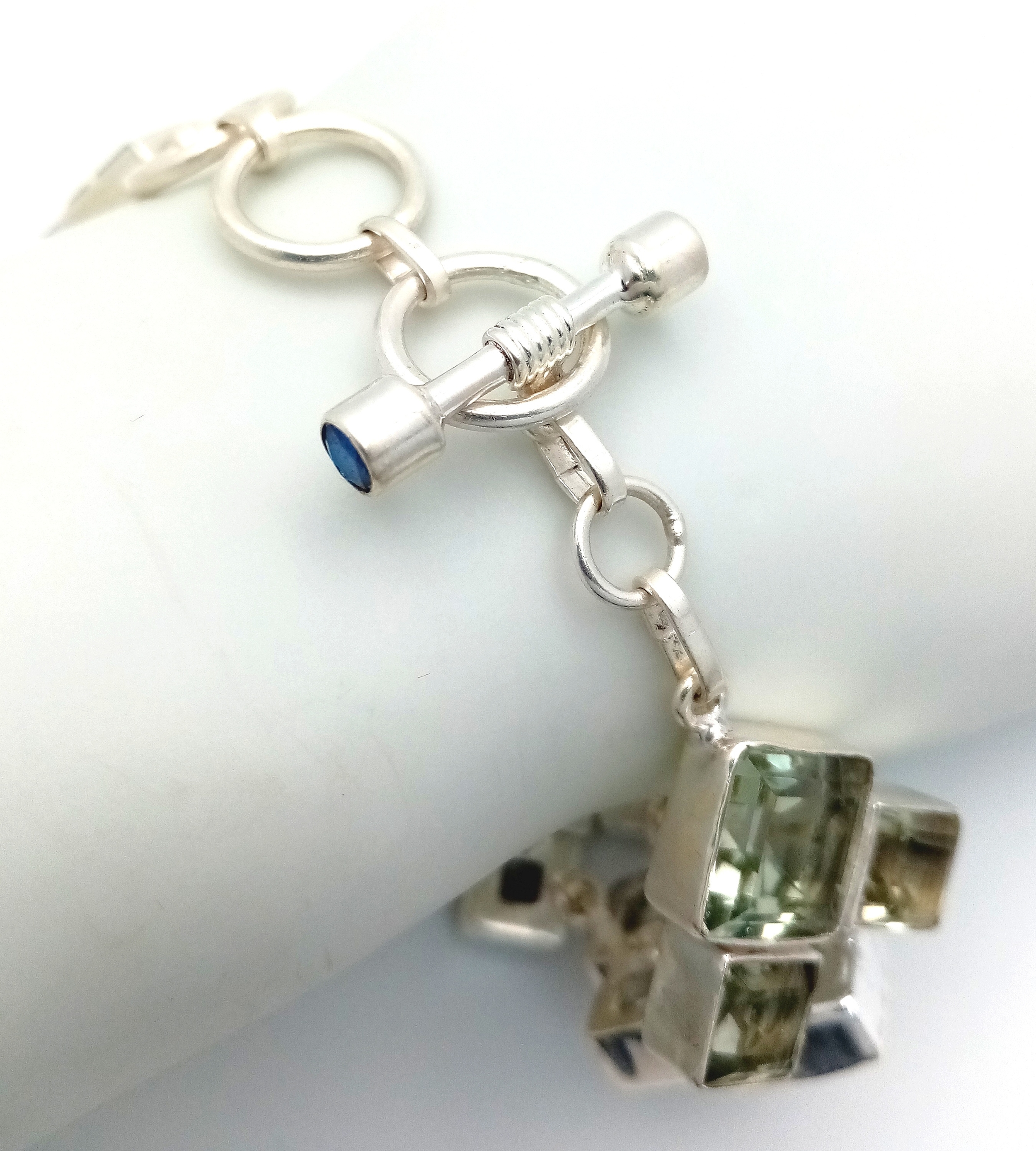 A Green Amethyst Gemstone Link Bracelet. Set in 925 Silver.