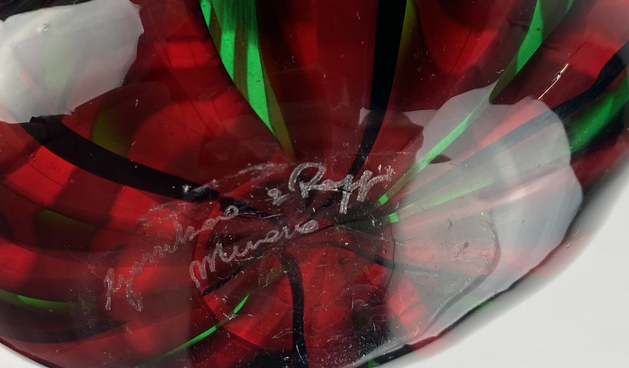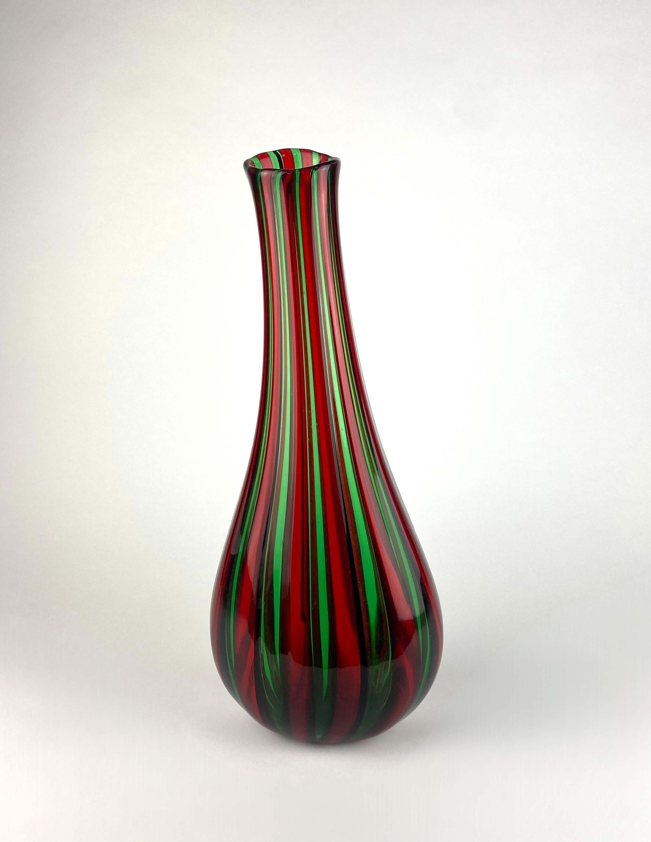 A Gambaro and Poggi Murano glass vase of slender baluster form with red, green and back stripes, engraved mark to base, 41cm high