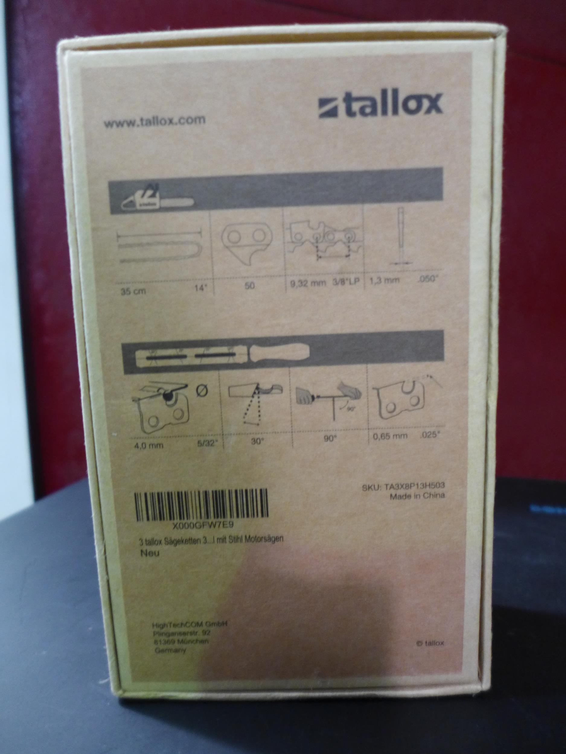 Three Tallox chainsaw chains (SKU:TA3X8P13H503)