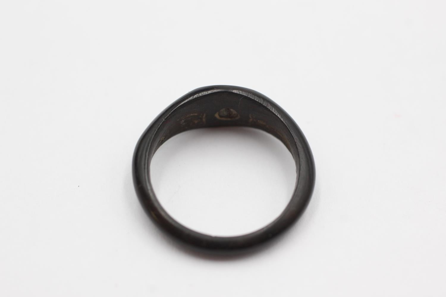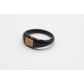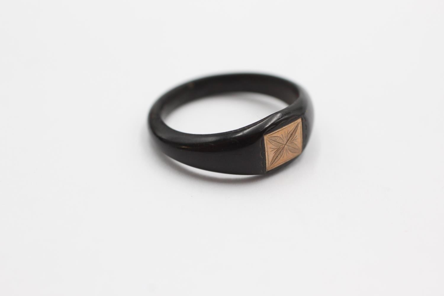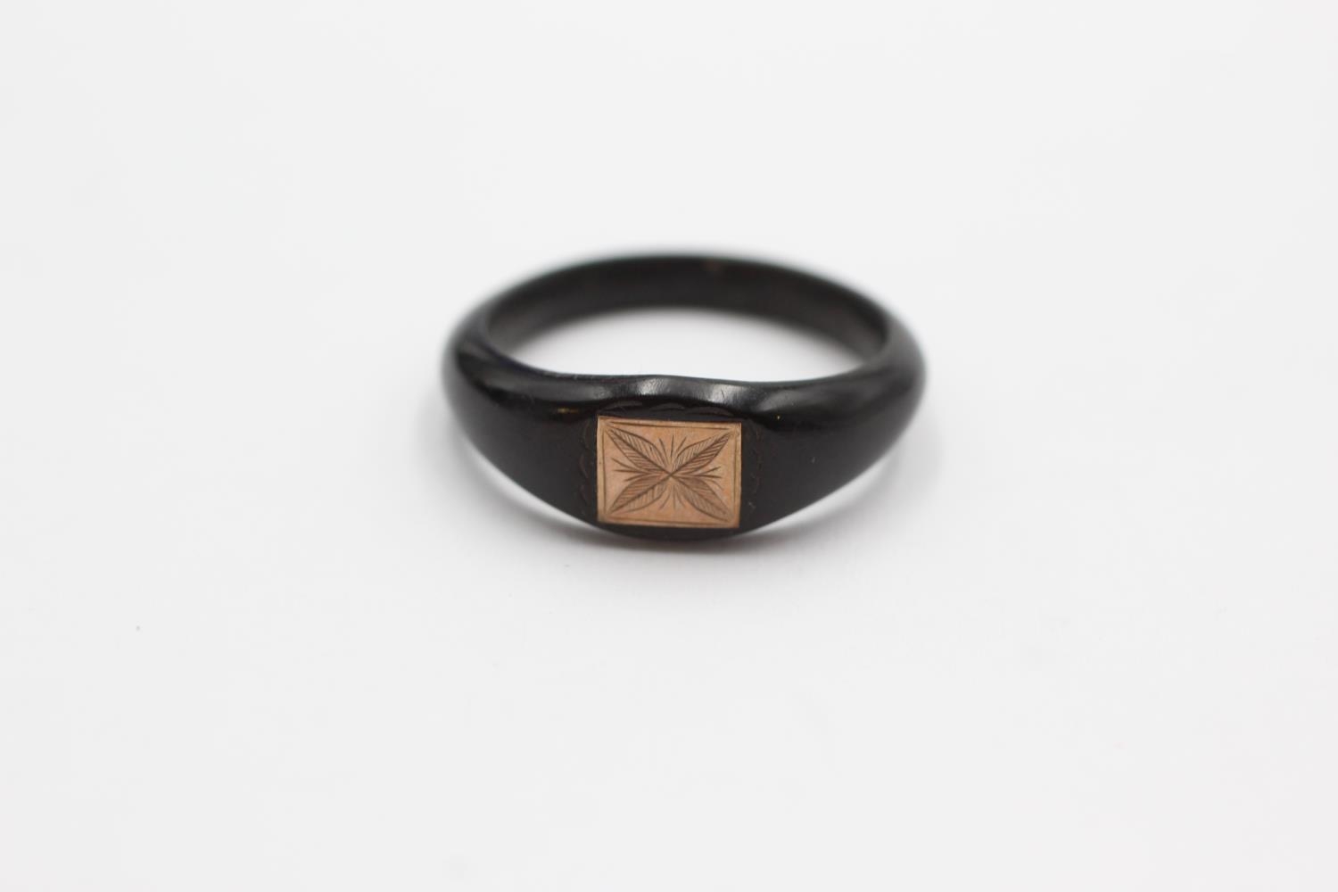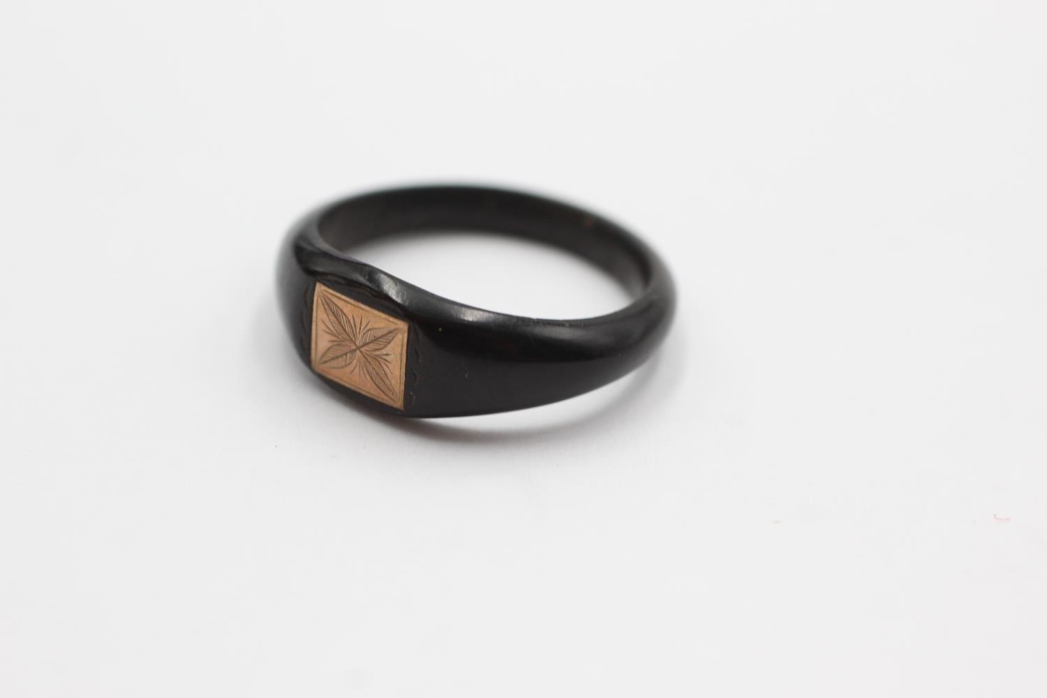 9ct gold ebony wood foliate etched signet ring (0.7g) Size P