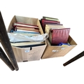Two boxes of stamps, albums and FDC's.