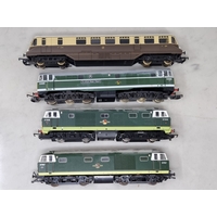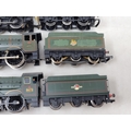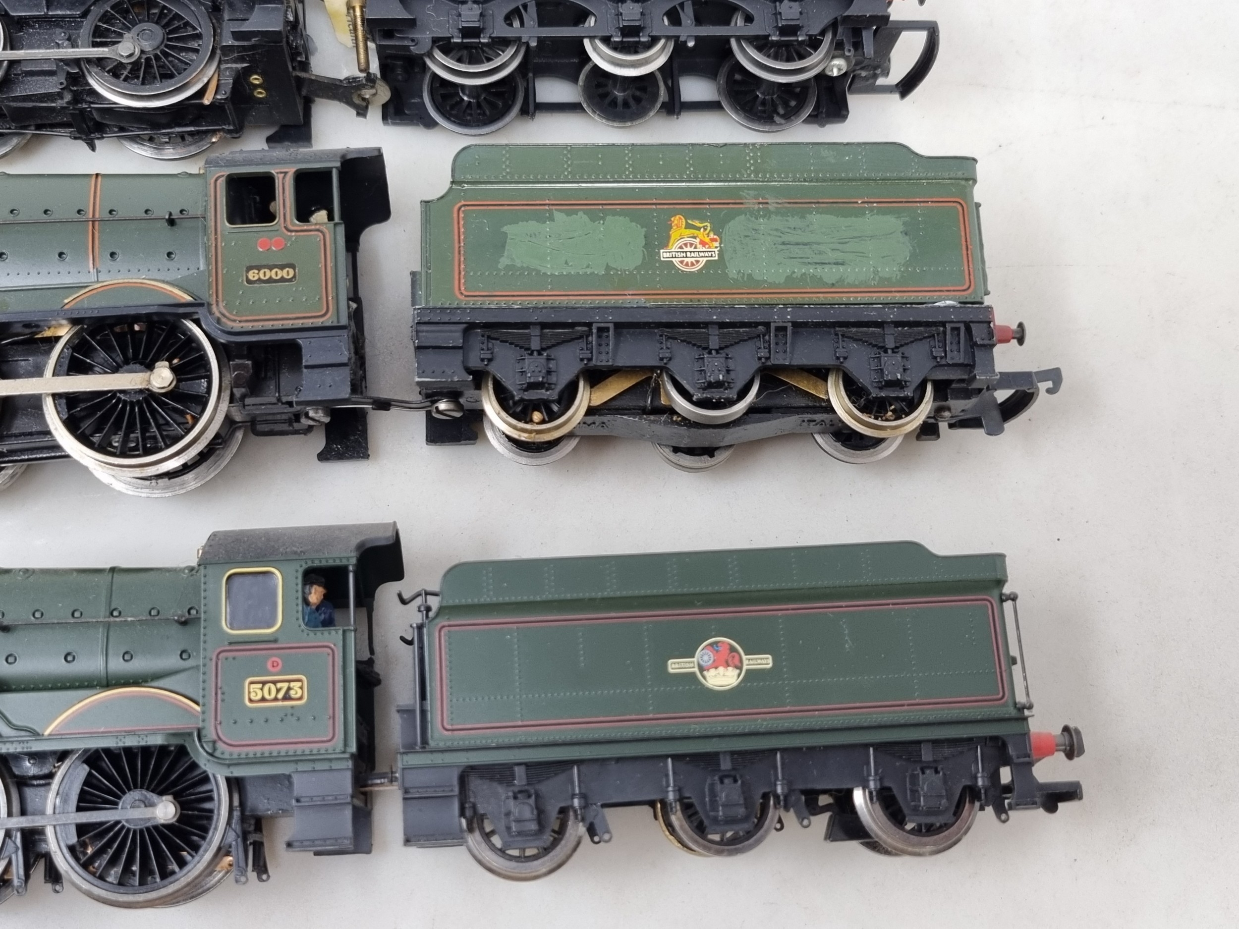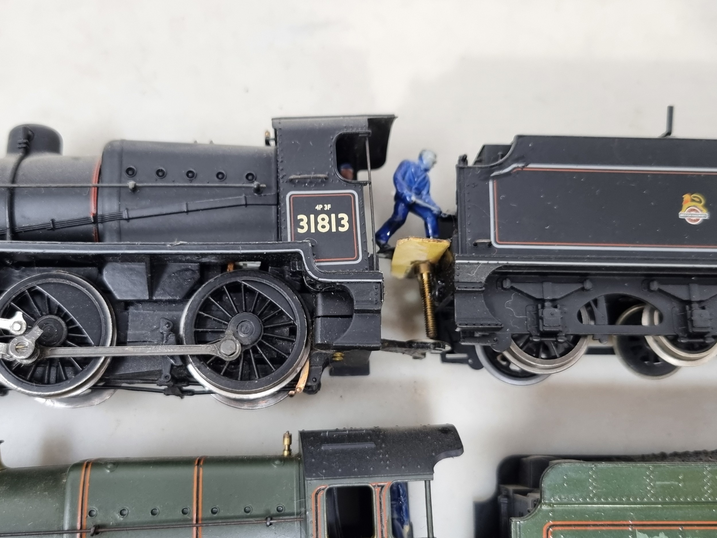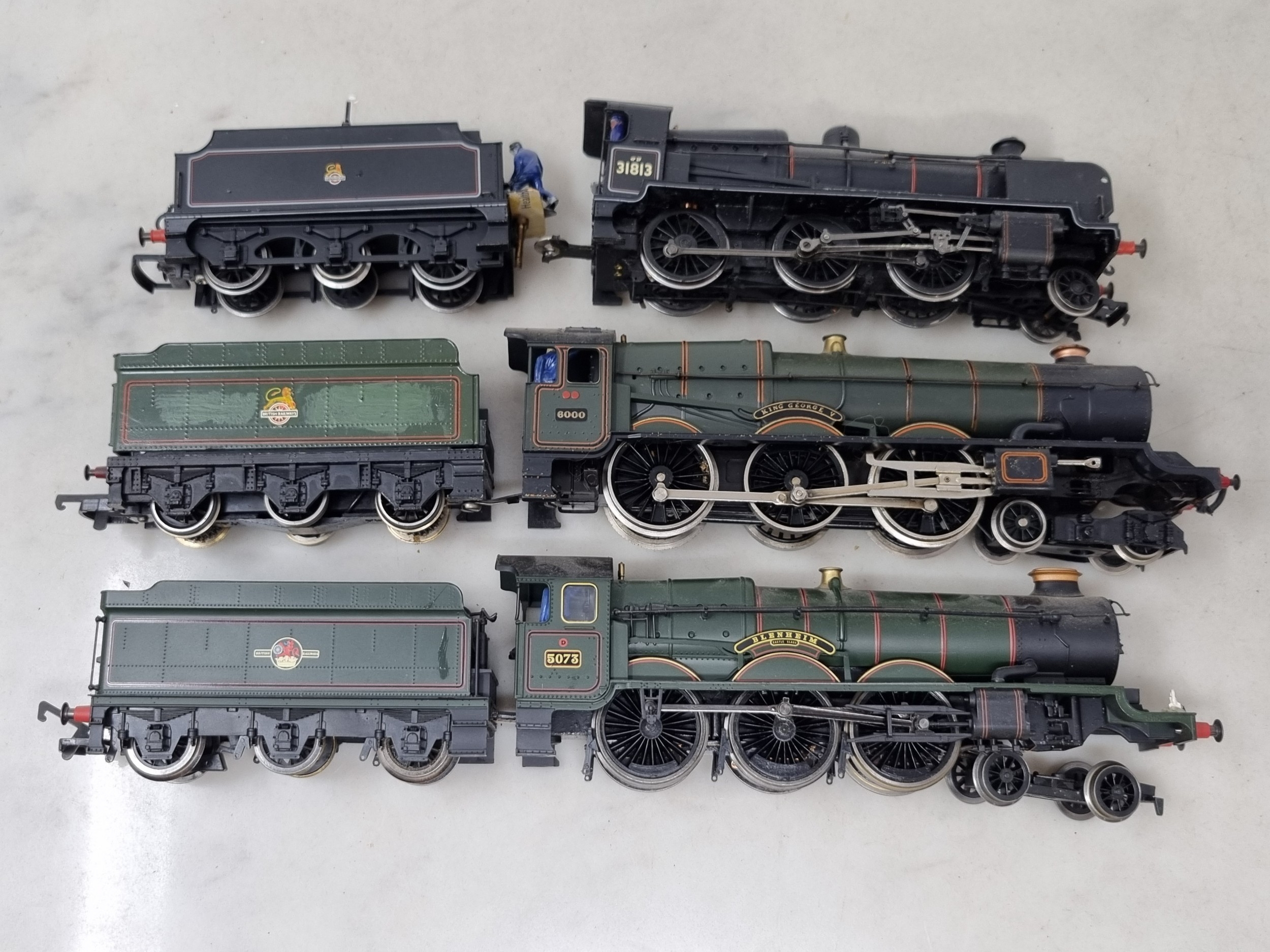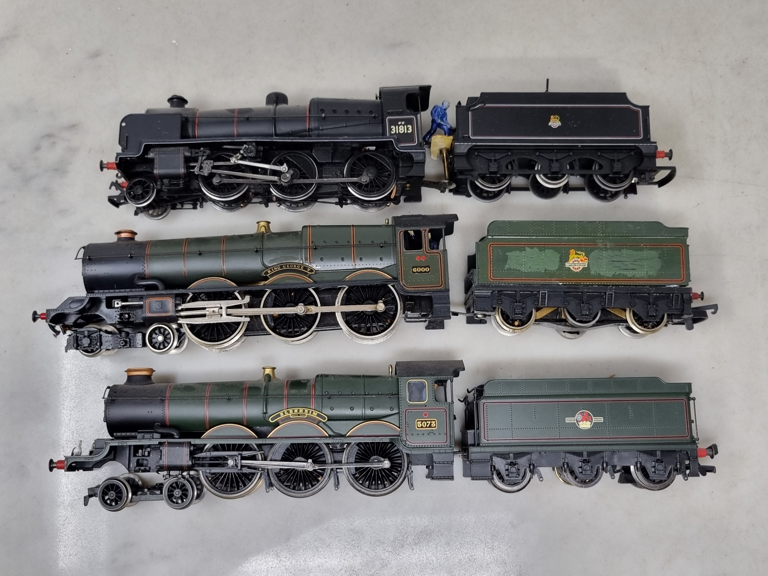 Three unboxed 00 gauge Locomotives in BR livery comprising Hornby Castle Class 'Blenheim', Lima King Class 'King George V' (paintwork touched up on tender)and Bachmann N Class 2-6-0 No.31813, G-Ex