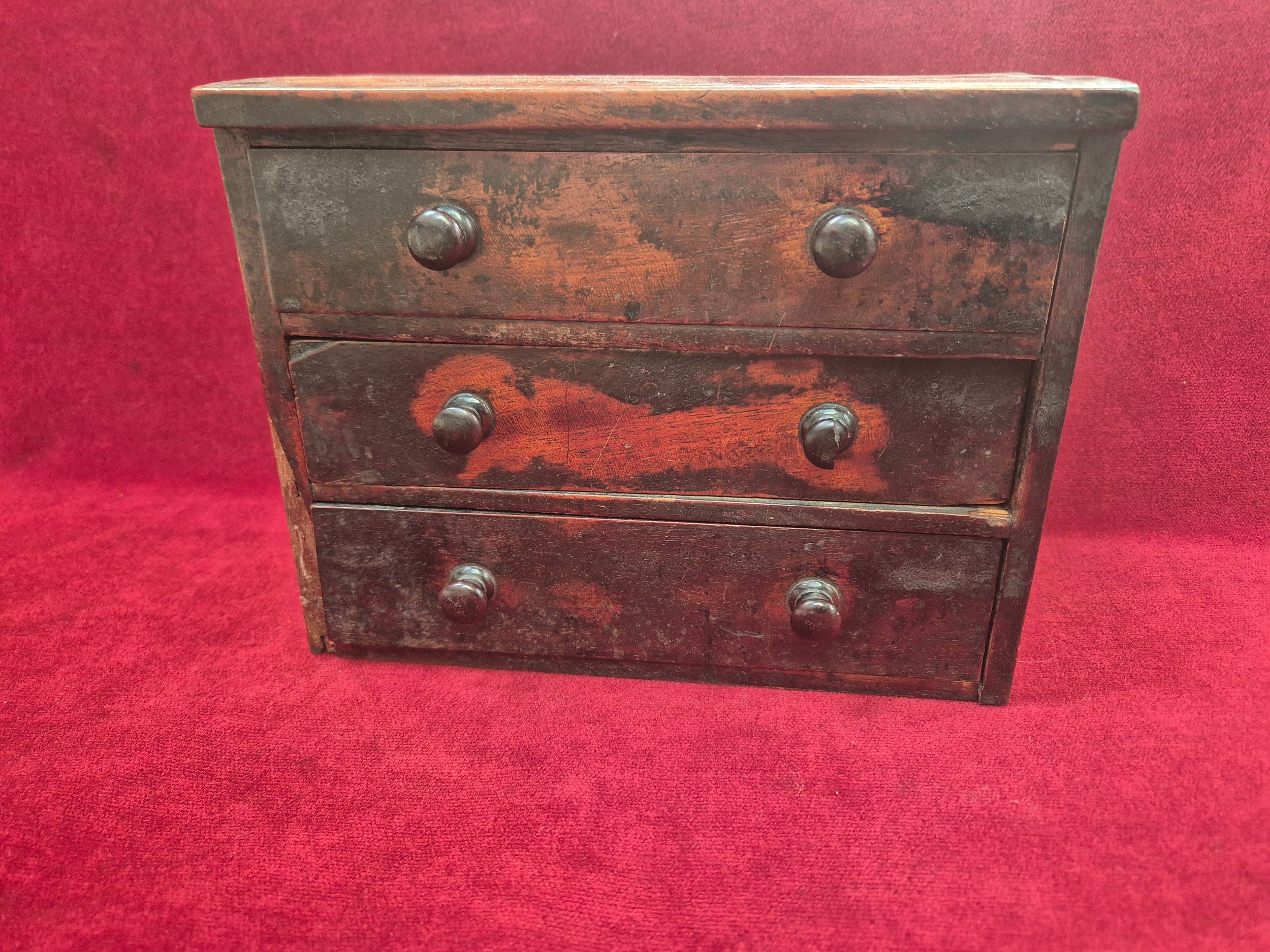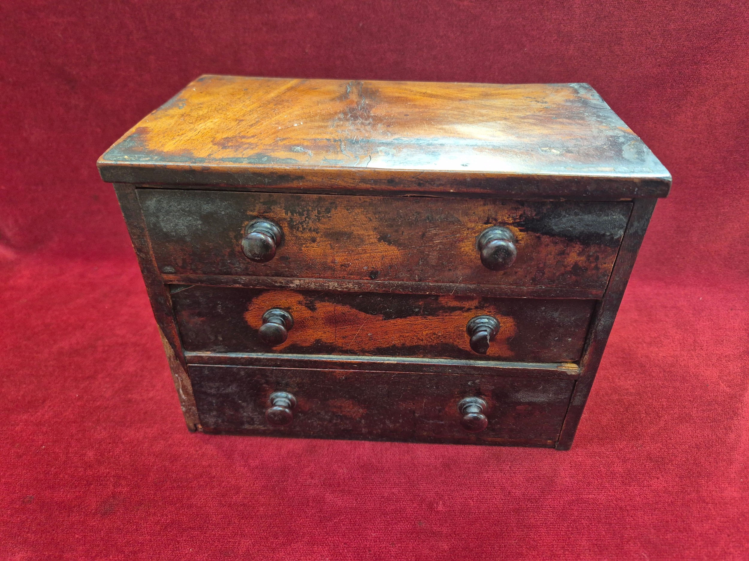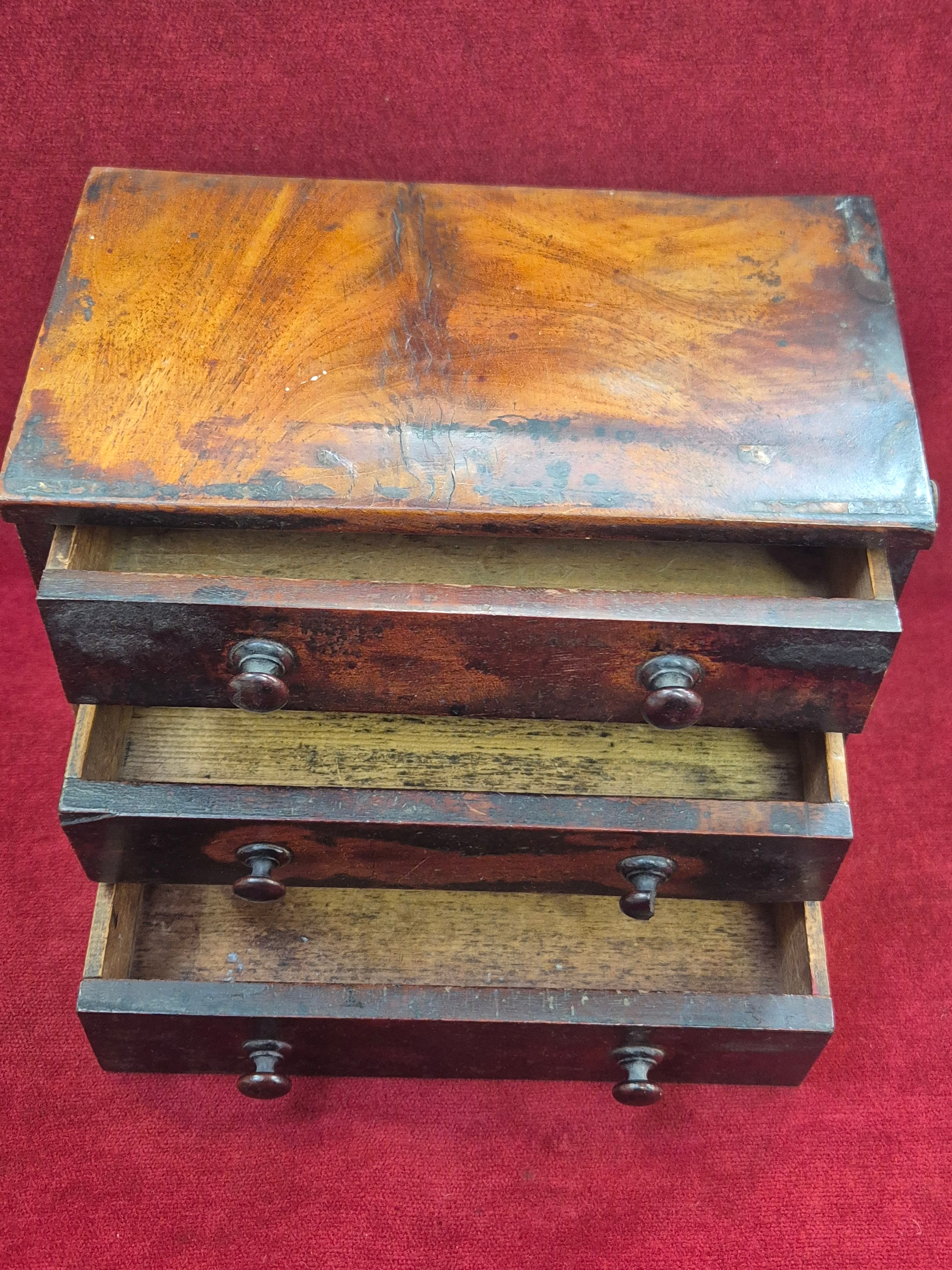 A 19th Century Mahogany Miniature Chest of Drawers - wonderful old patina. 23cm x 13cm x 18cm