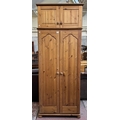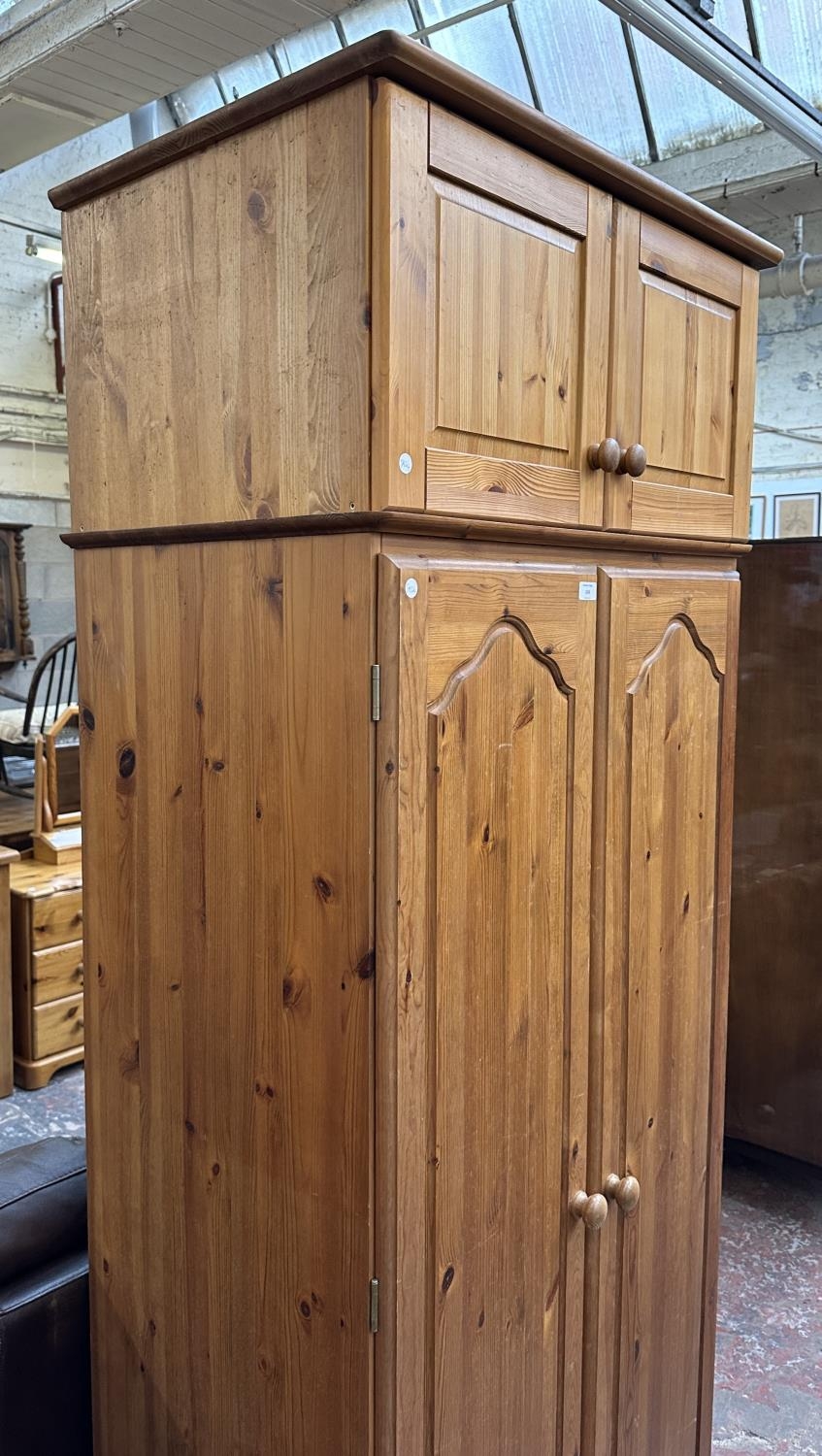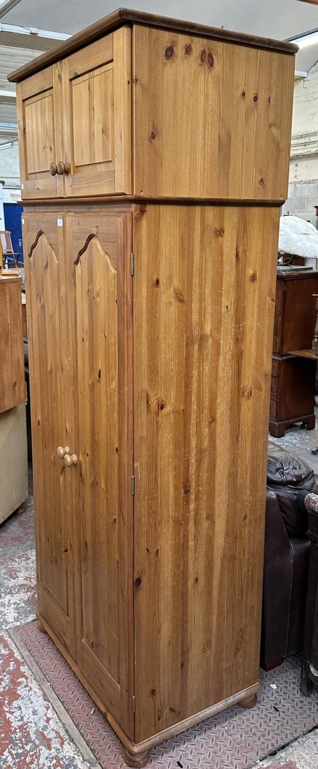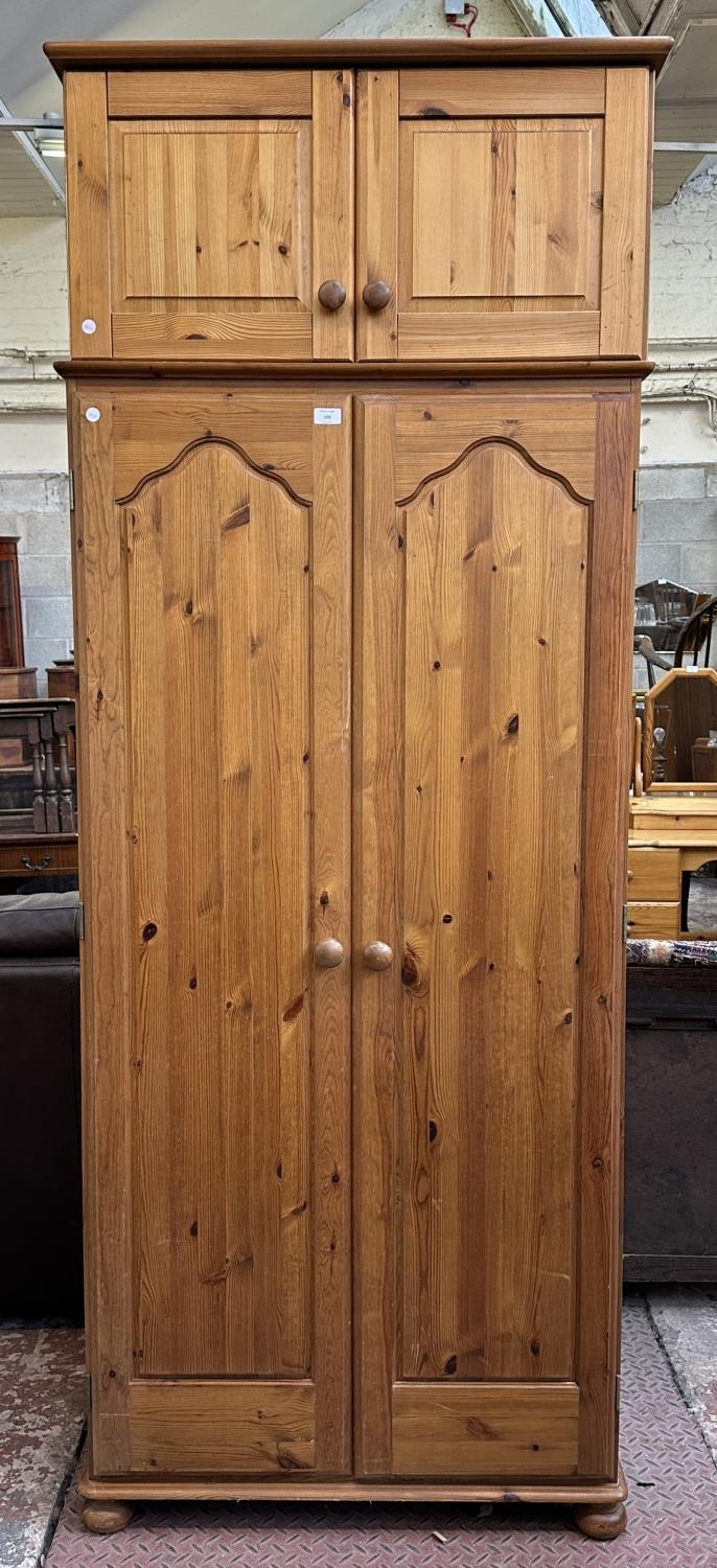 A pine double wardrobe with later added top - approx. 220cm high x 85cm wide x 55cm deep